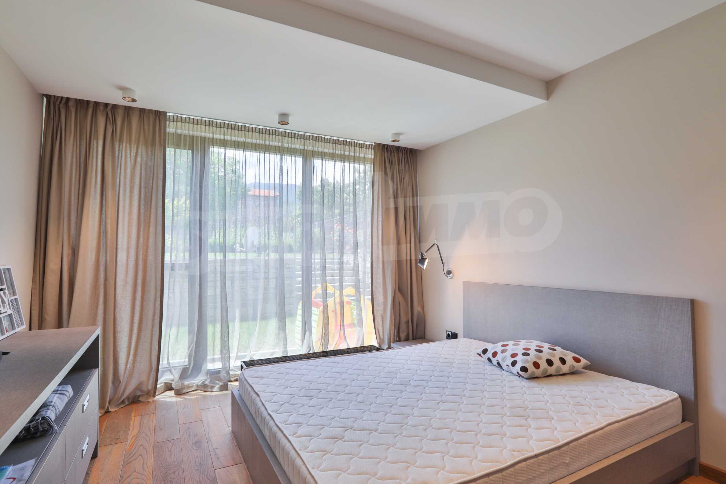 Disposition: The house is designed on two semi-levels comprising of entrance hall, spacious living - a living area and kitchenette with a height of four meters, guest bedroom, bathroom, master bedroom with bathroom. On the first floor - two bedrooms, bathroom and toilet. The house is fully furnished designed by one of the most prestigious design studios in the country with high quality bespoke furniture.