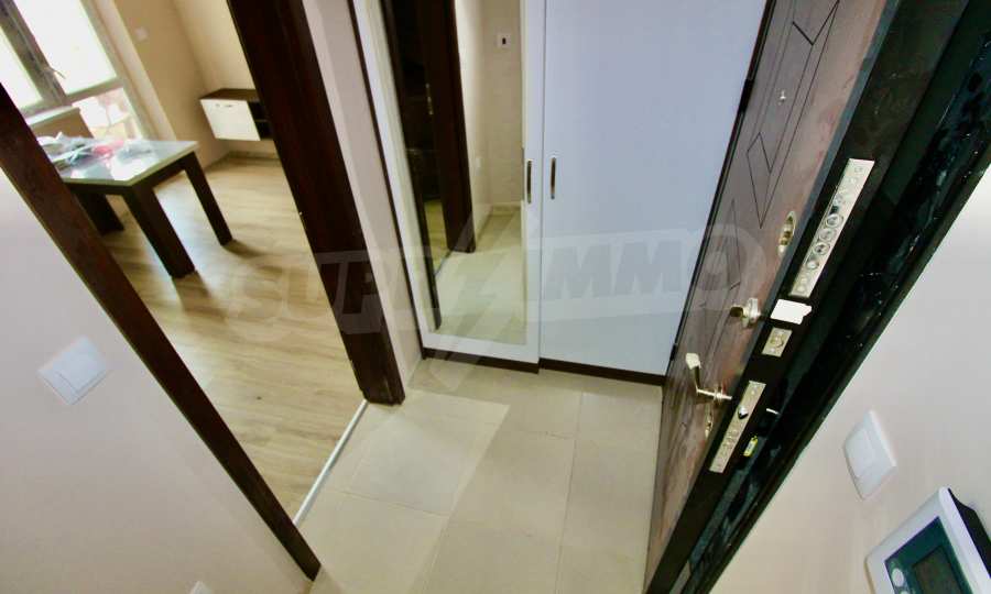 The apartment will have a degree of completion - windows with German profile, 70 mm, triple glazing - 4 mm four seasons, 4 mm white, and 4 mm low-emission (K) glass. The front door is armored with mineral wool filling. The interior doors are by the German company GRADDE, the flooring is plastered, the walls are plastered, and the external insulation provides efficient heating in the winter months and pleasant coolness in the summer.