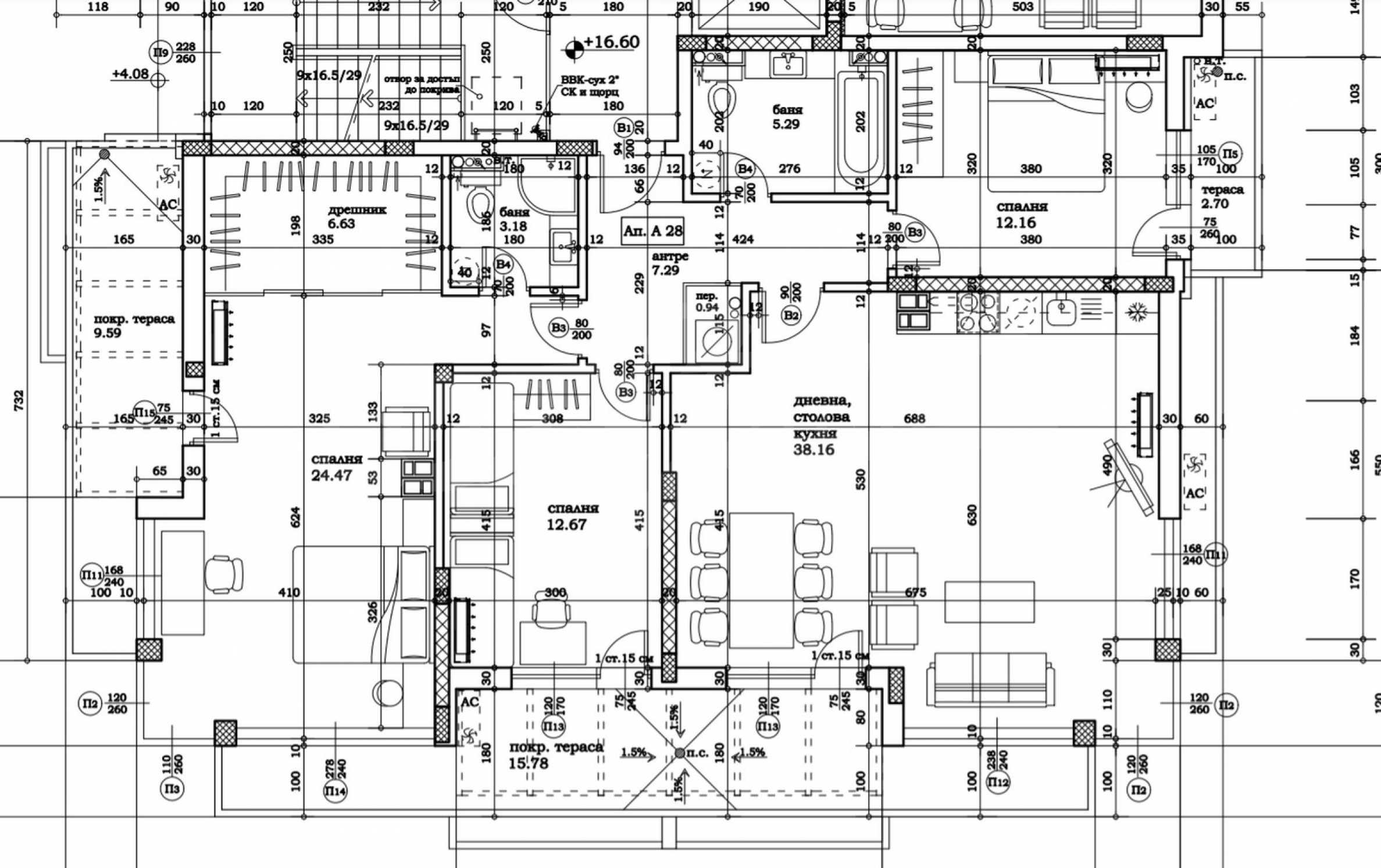 High quality construction in accordance with all standards of modern architecture. The construction of the buildings will be in the traditional monolithic way - with reinforced concrete columns, slabs and beams.