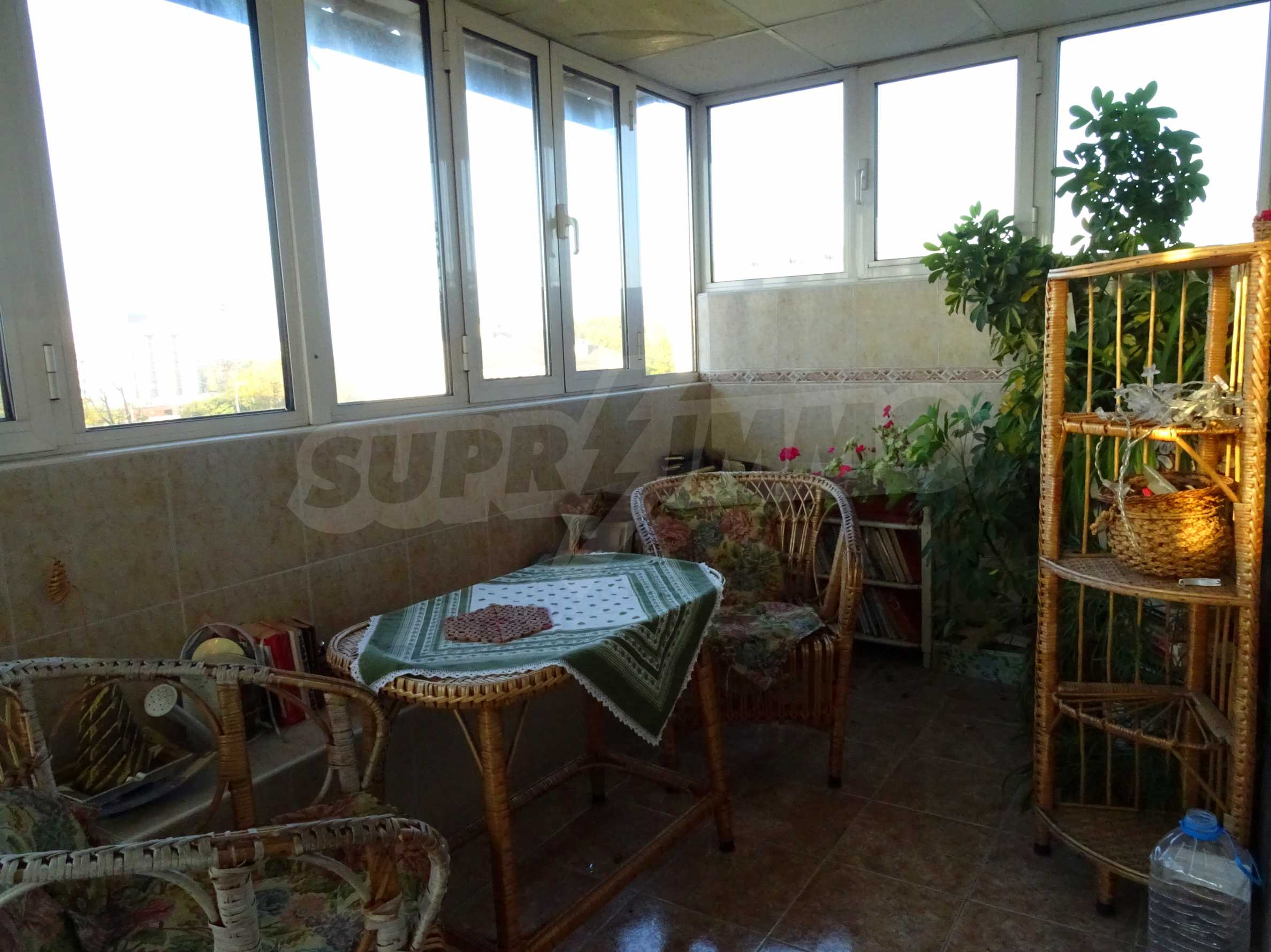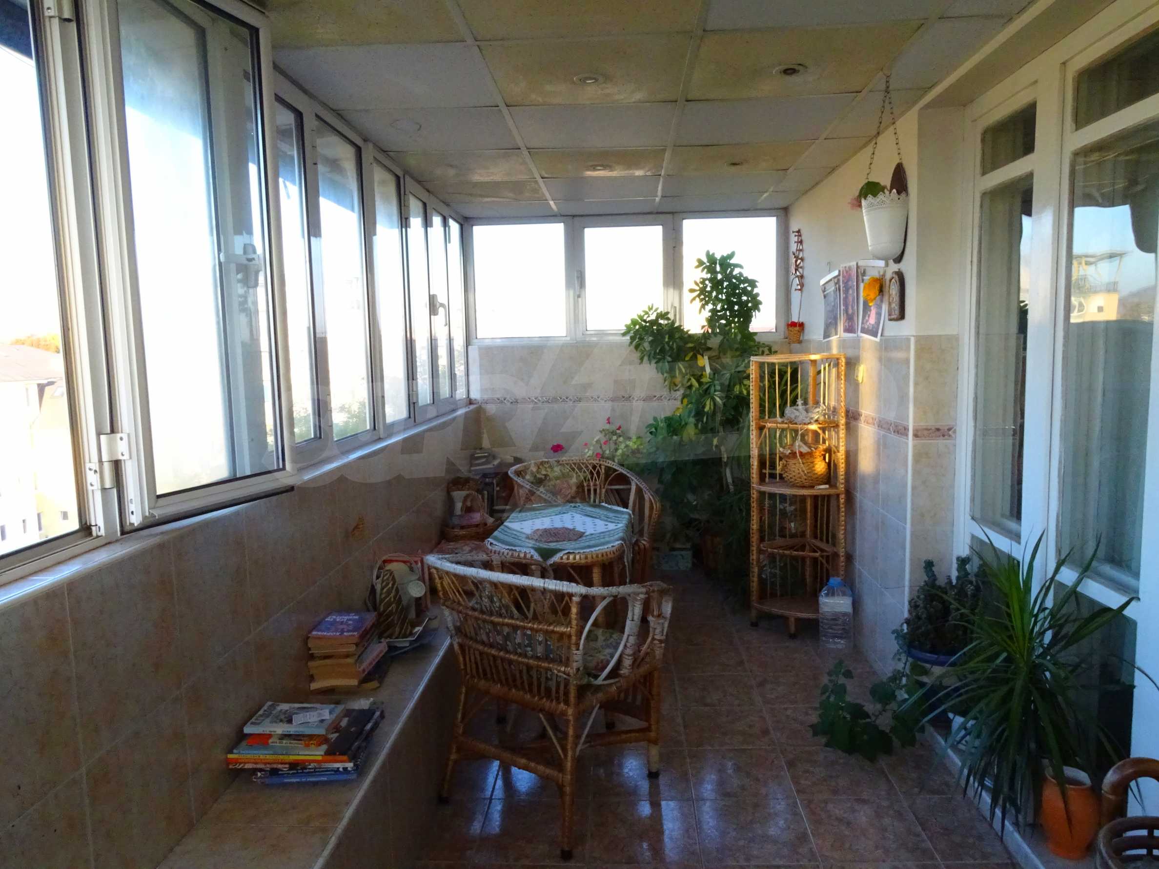 We present for sale a small two bedroom apartment with amazing panoramic terrace. The apartment is located on the last 5th floor and has an area of 92 m2., including: living room, kitchen, bedroom, children's room, bathroom with toilet and glazed, all south terrace of 20 m2. The building where the property is located is solid, built in 1999.