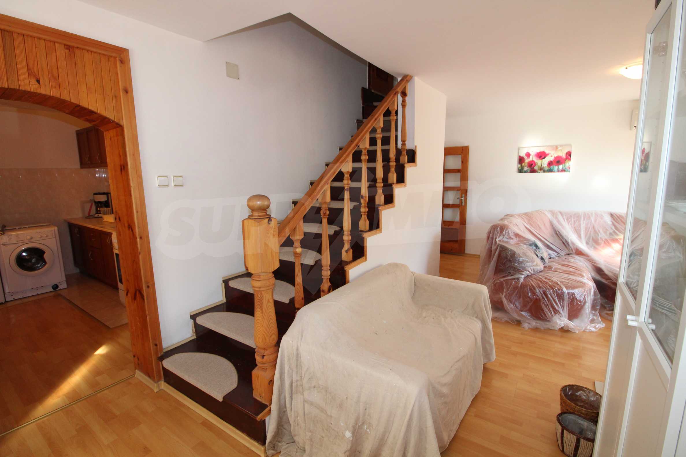 outbuildings 35 m2 .. It is located at the end of the village next to the river and has a nice panoramic view. It consists of the second floor of three bedrooms, bathroom with toilet, terrace. Internal wooden stairs connect the levels. Below is a kitchen, living room, dining room, glazed terrace, porch. There are air conditioners installed. Only high quality materials, doors and windows of wood are used during the construction of the property. Floors with tiles, wood and laminate.