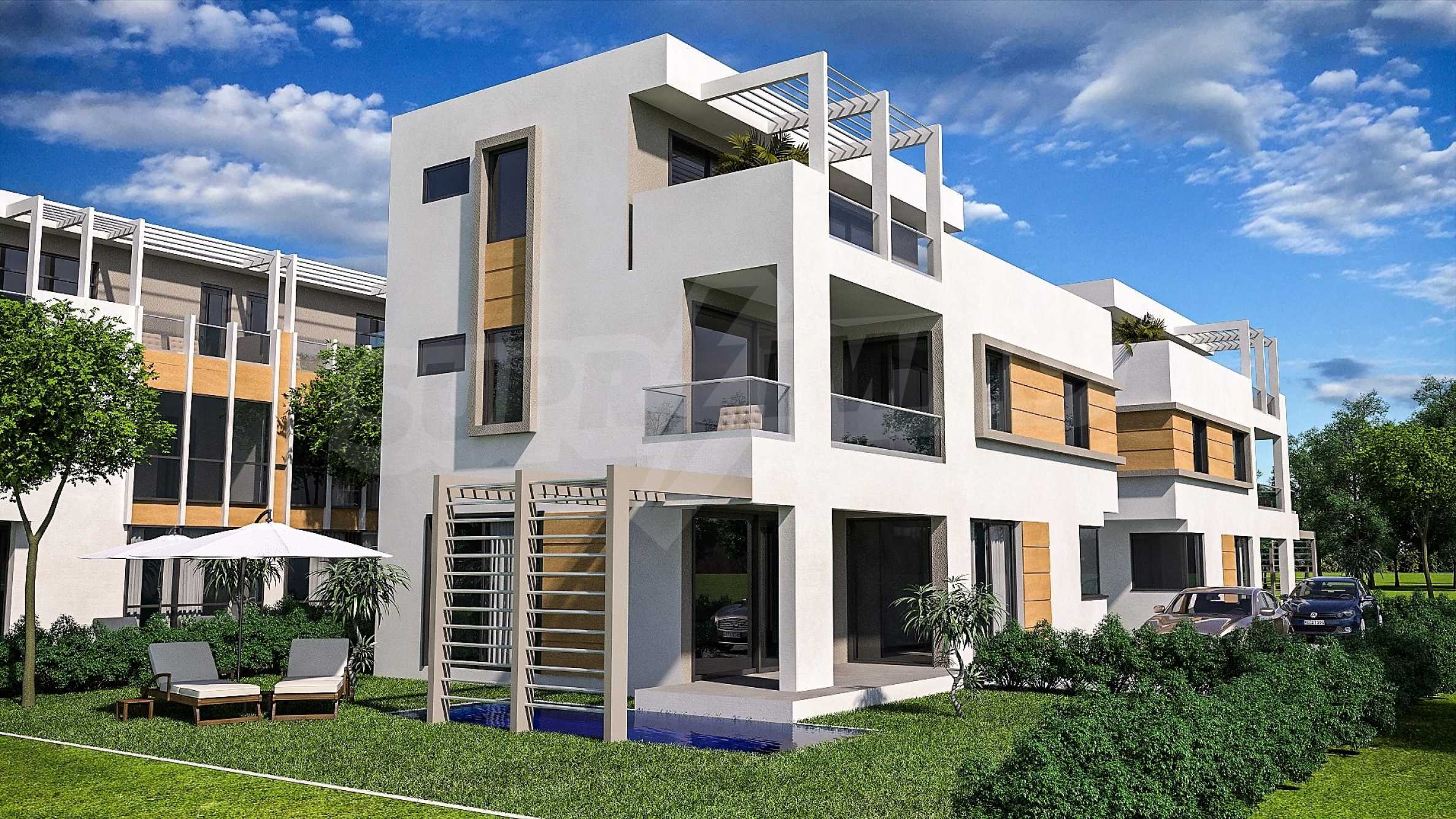 We present to you a three-storey house of 211 m2, part of a new construction project of modern houses, with beautiful gardens and parking spaces, located in the elite district of Sarafovo in Burgas.