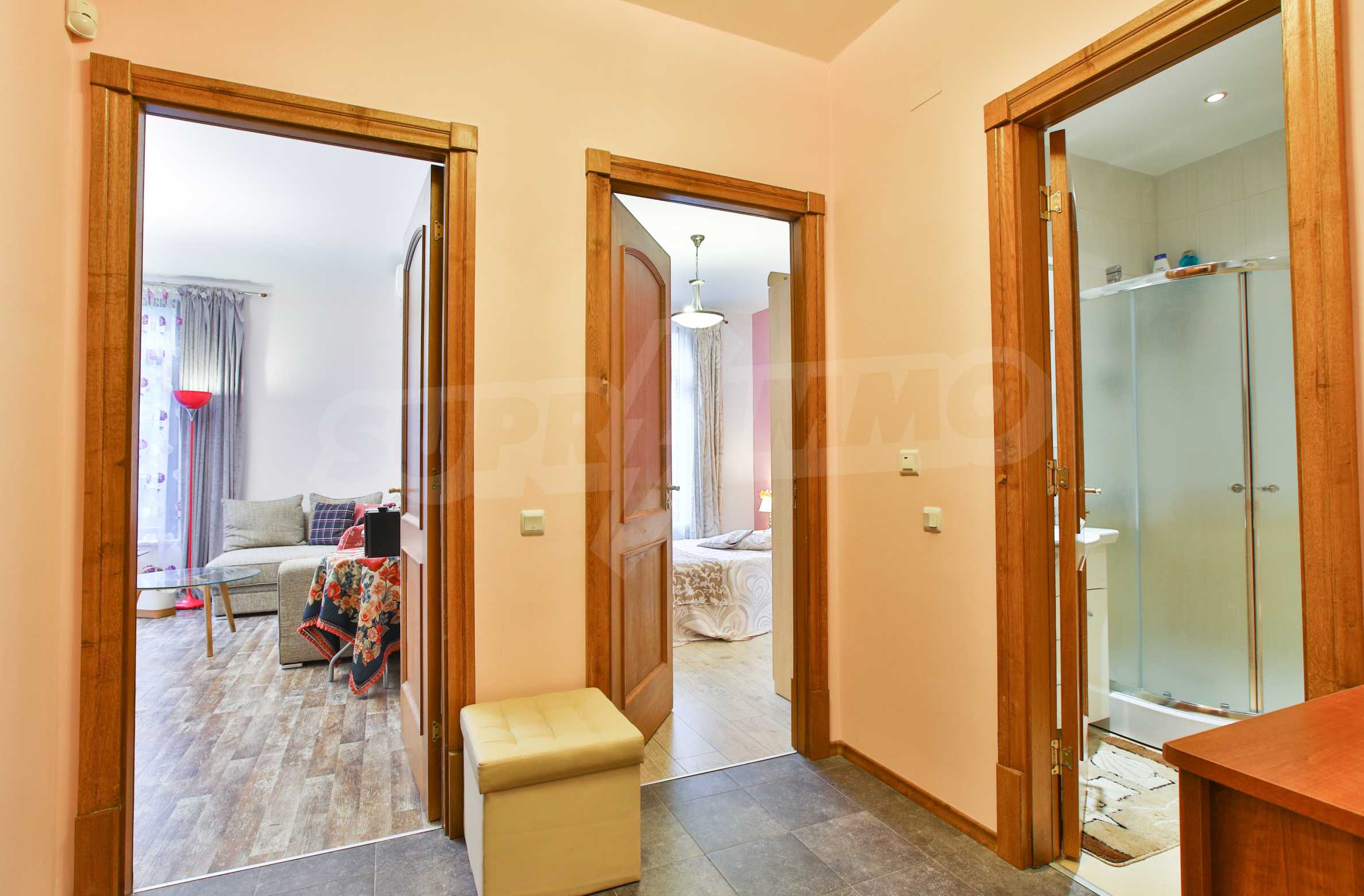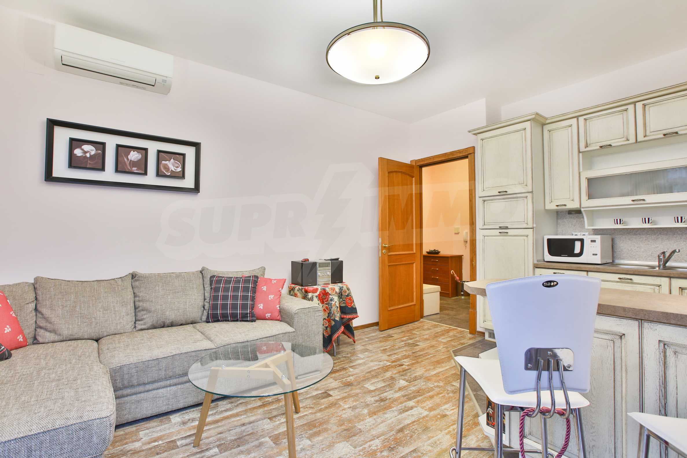 We offer for rent a newly furnished one-bedroom apartment located in a gated boutique complex, on the first floor / second residential /, in Breeze, meters from the Sea Garden, Parkmart Shopping Center.