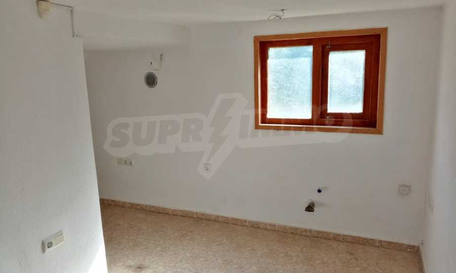 It was soon repaired and repainted. There are wooden floors in each of the bedrooms, the kitchen is tiled. The bathroom is finished. The windows are wooden with double glazing.