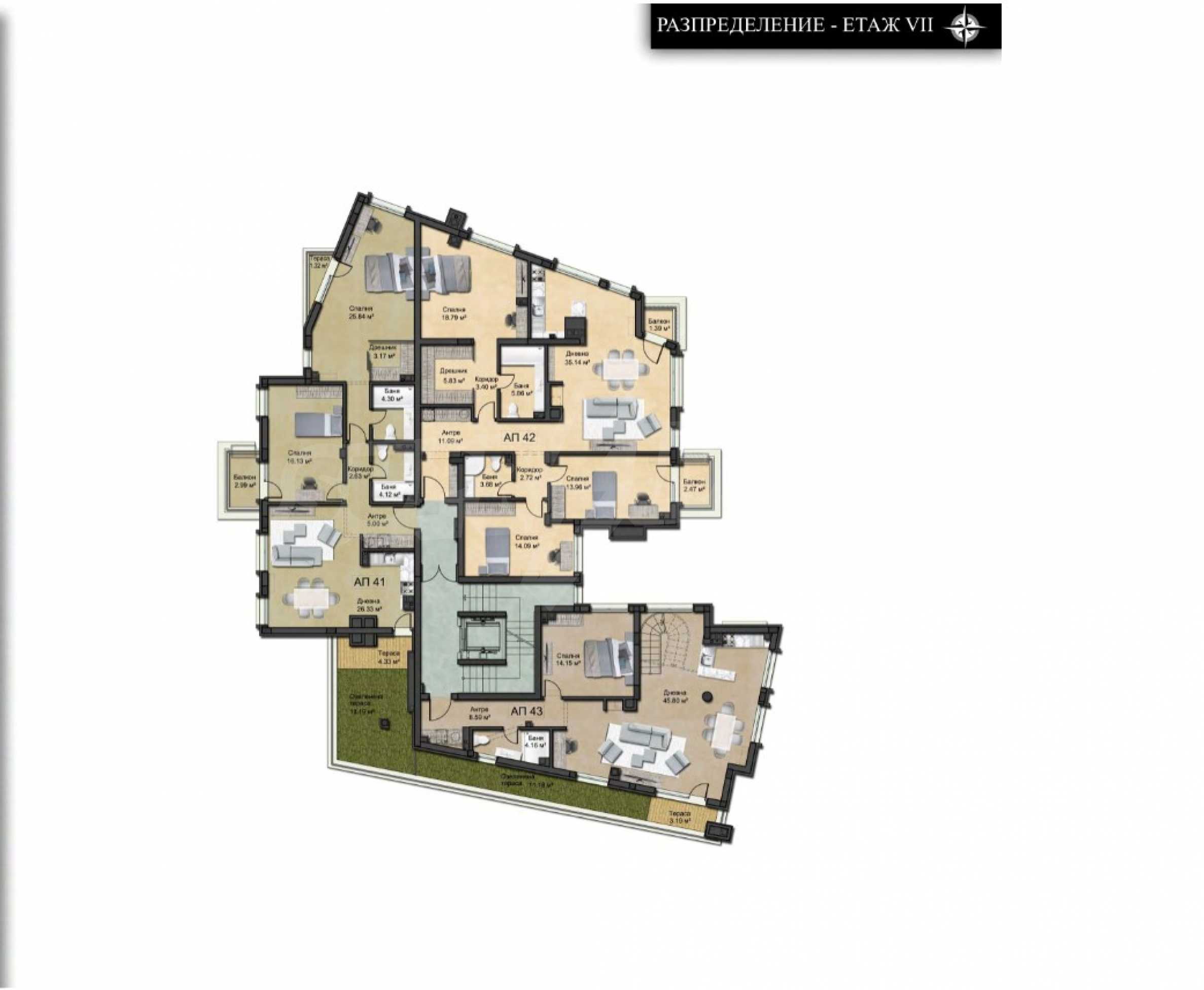 The total living area of the building is 20 510 m2 and the plot - 4 432 m2.