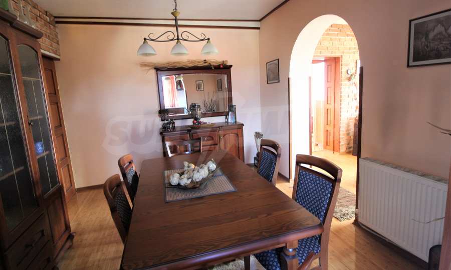 We present a two-storey residential building with an area of 120 m2. The property is located in a quiet and peaceful area of the village of Banya. The house is renovated with aluminum window frames. Heating: solid fuel heating.