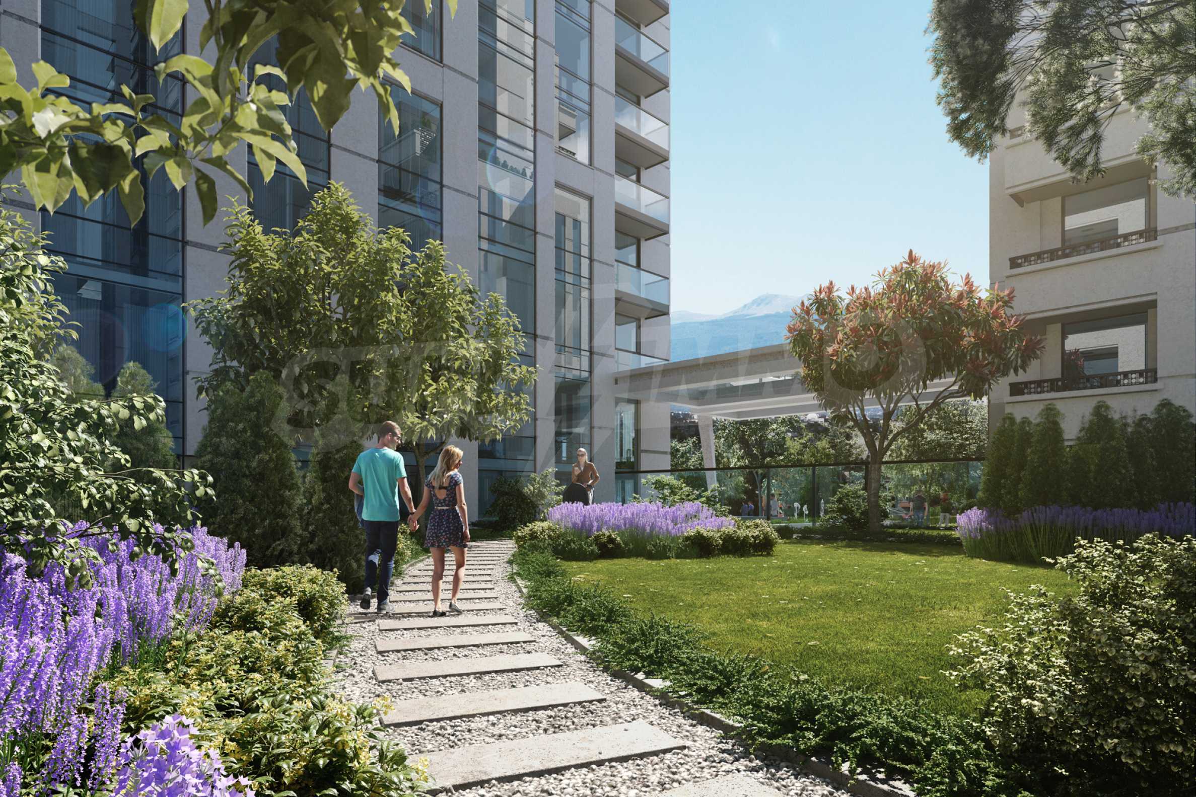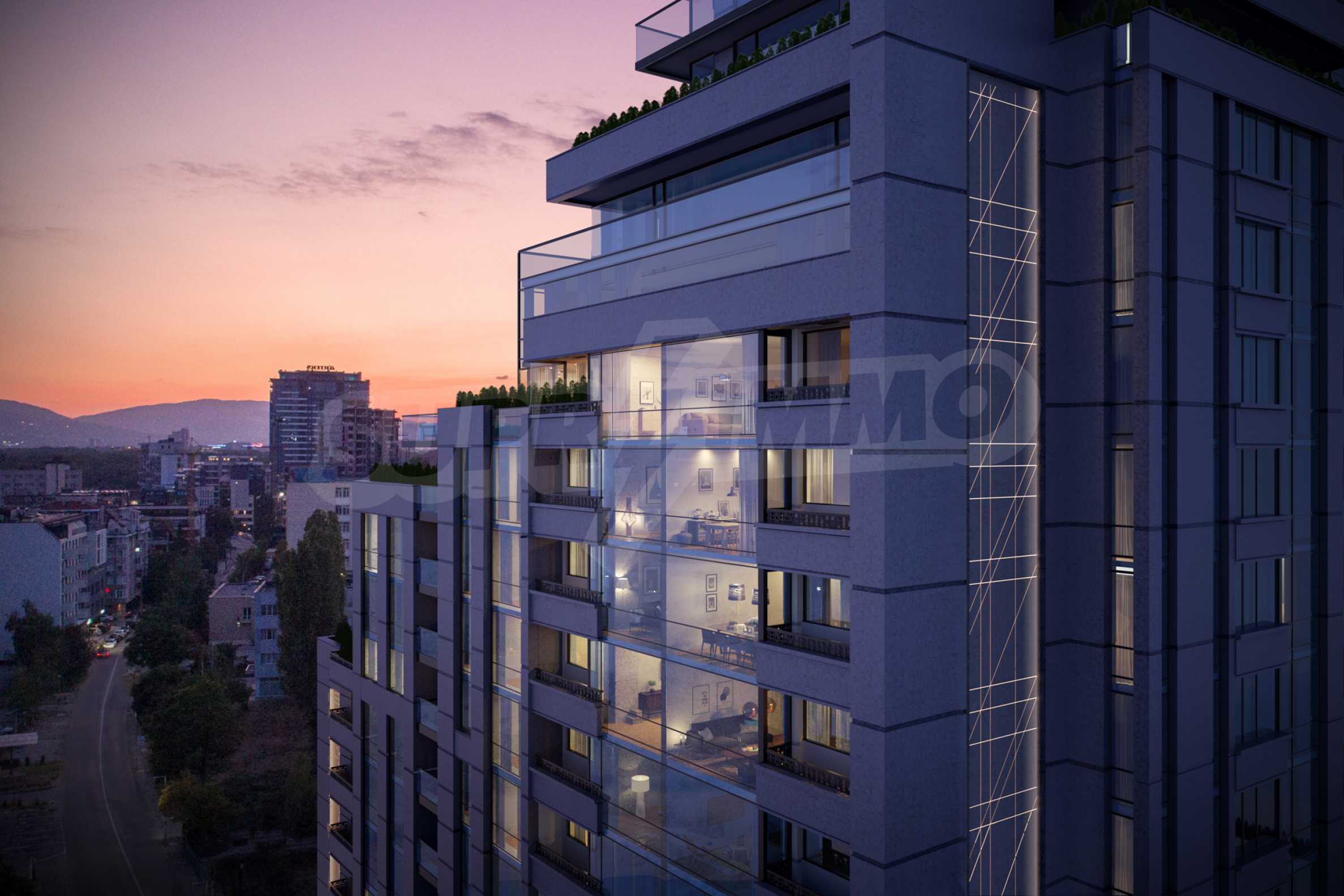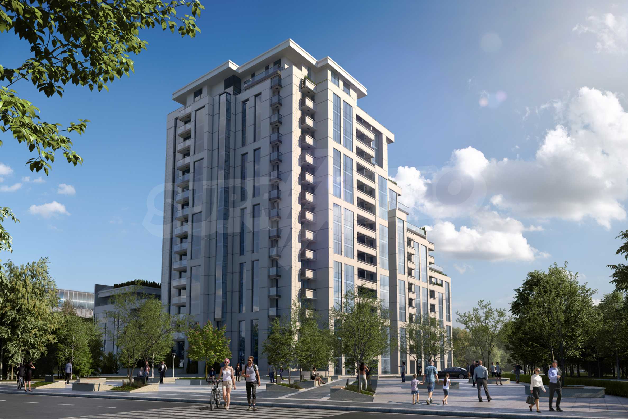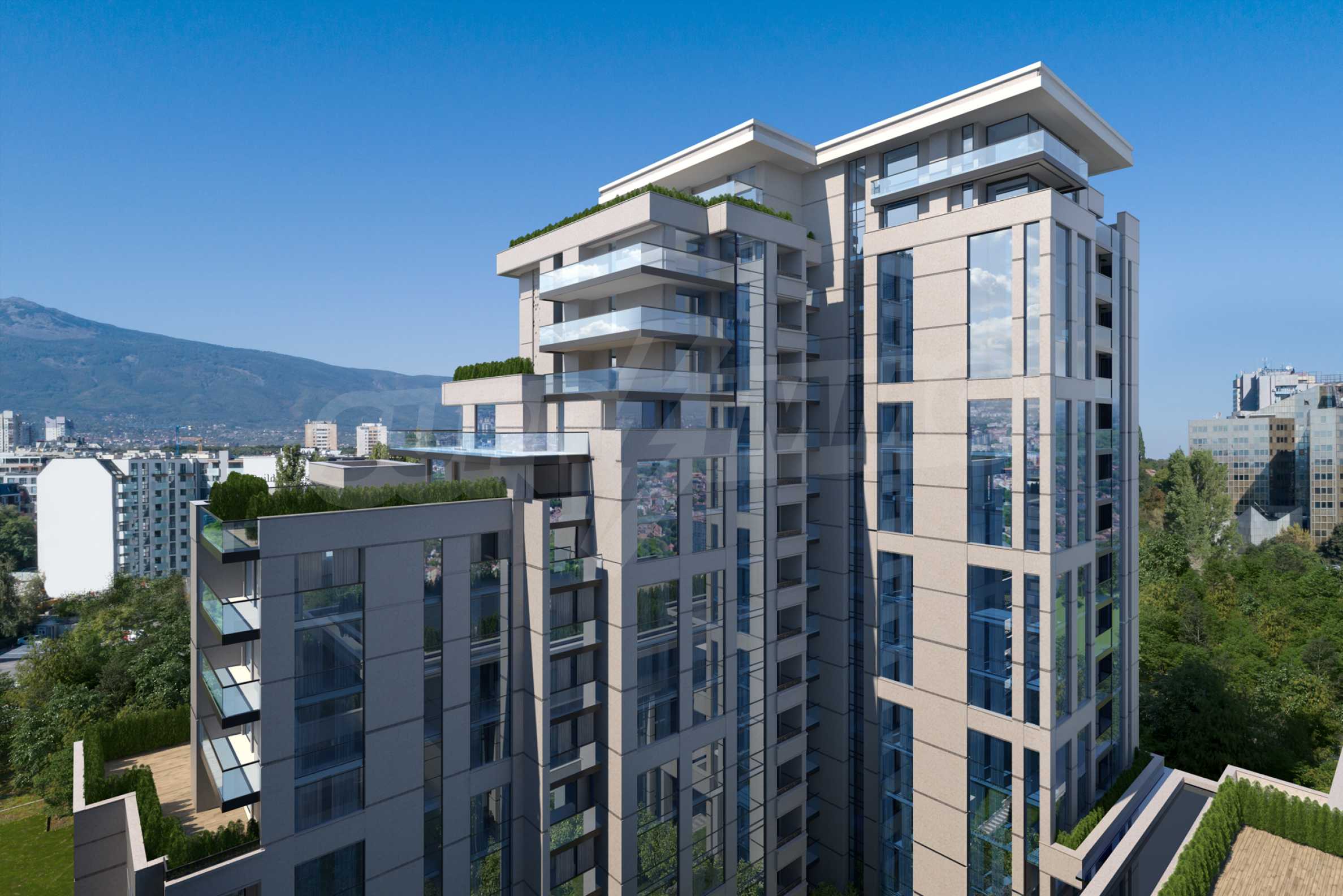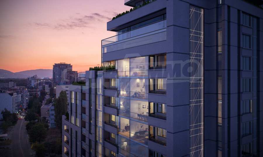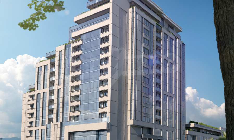 The complex, where the apartment is located, consists of several buildings, which include two low office buildings and two 17-storey residential buildings, offering beautiful views of the city, the mountains, the Hunting Park and Borisova Garden.