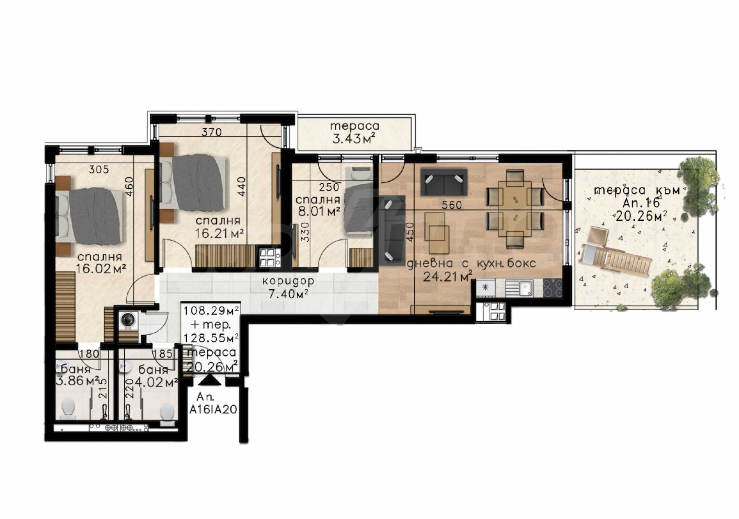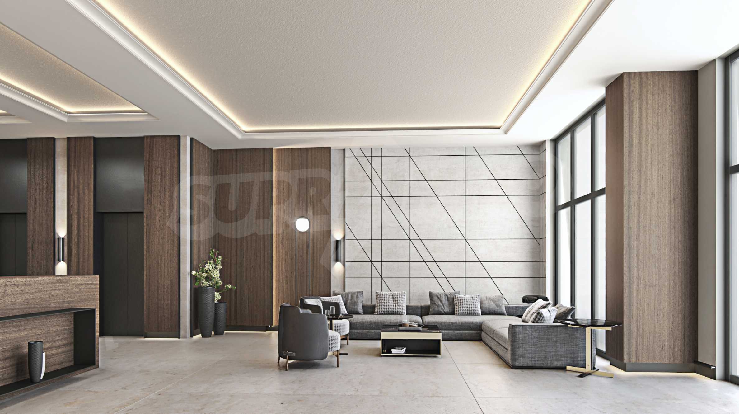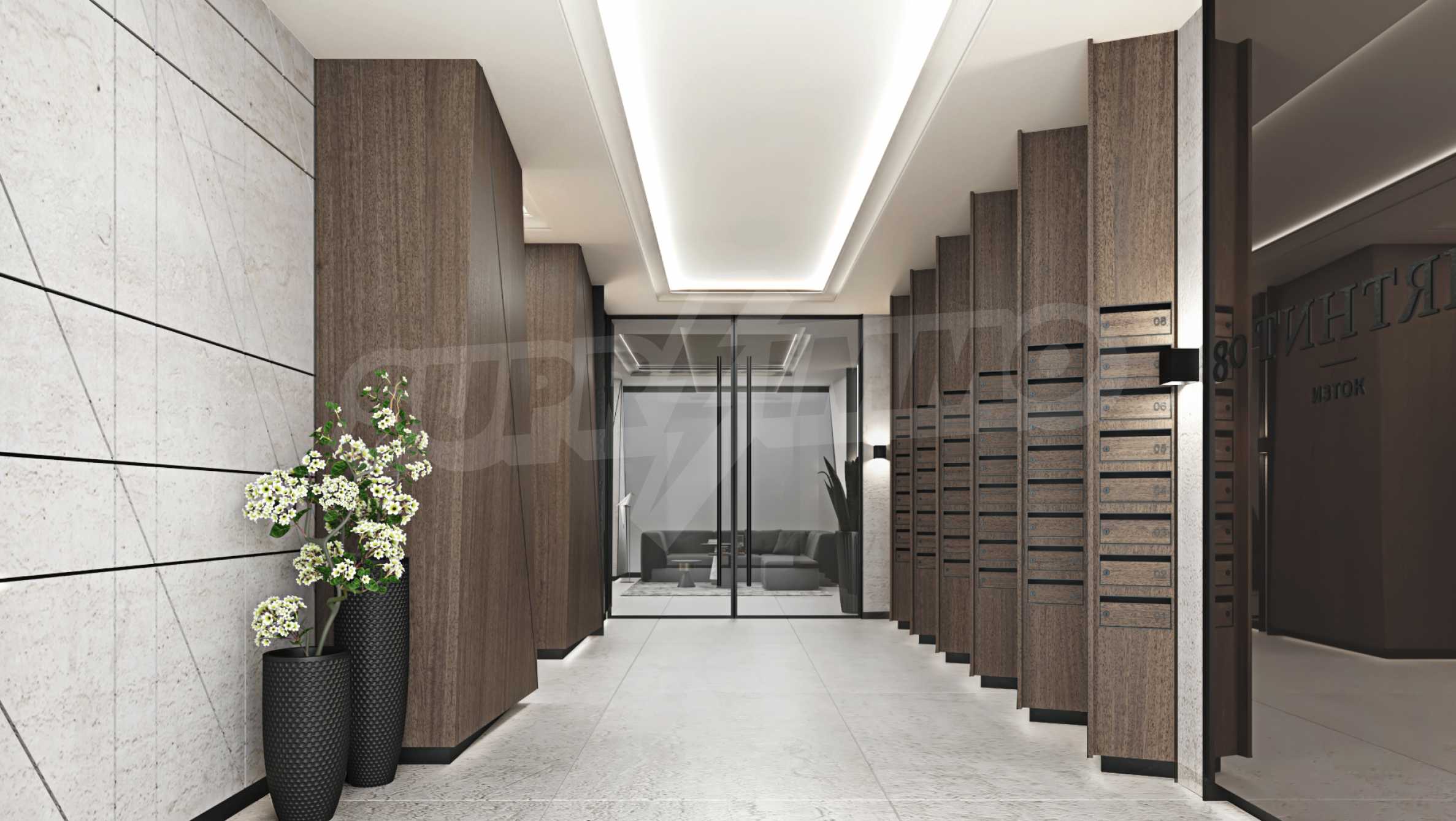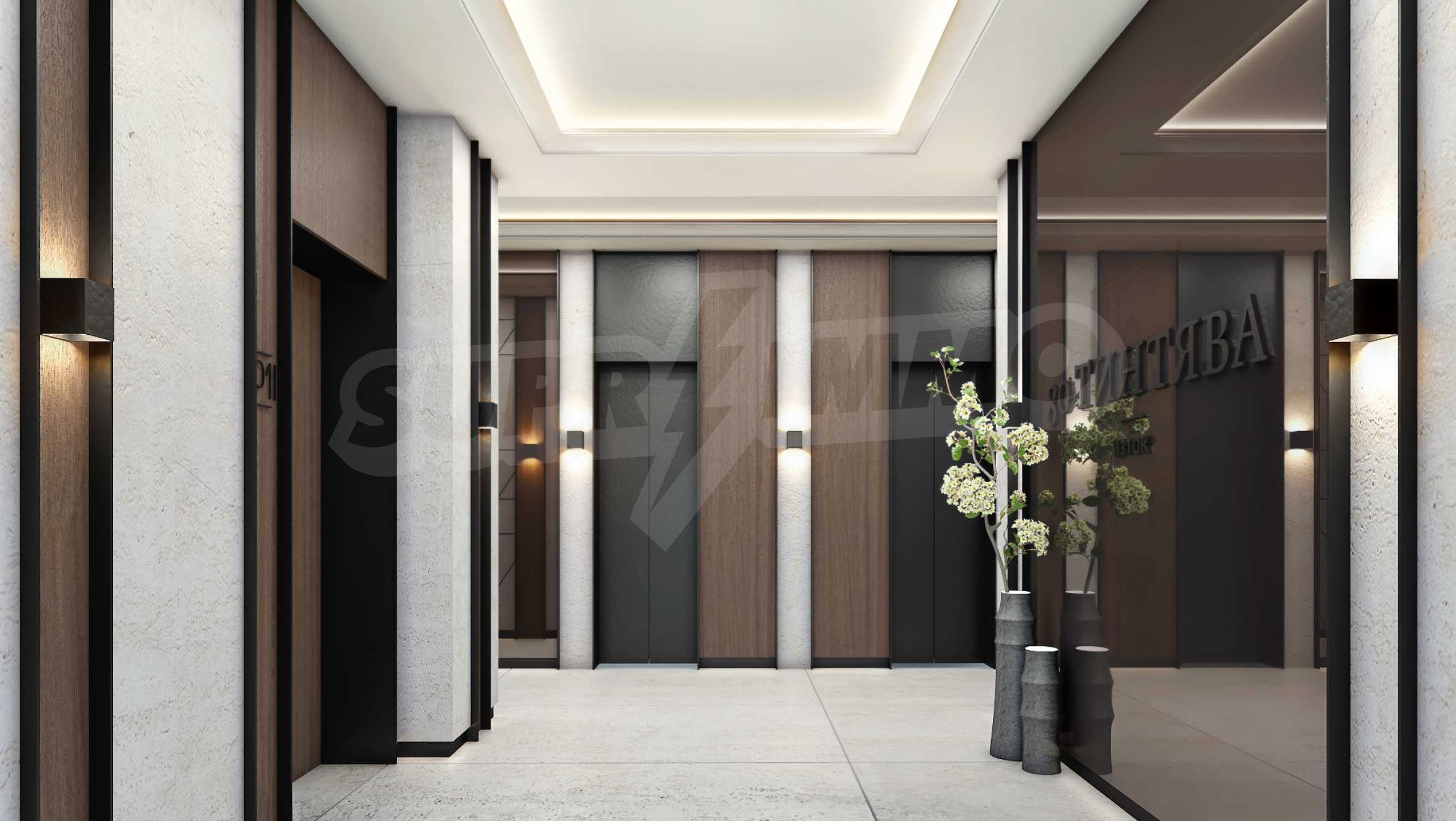The complex, where the apartment is located, consists of several buildings, which include two low office buildings and two 17-storey residential buildings, offering beautiful views of the city, the mountains, the Hunting Park and Borisova Garden.
