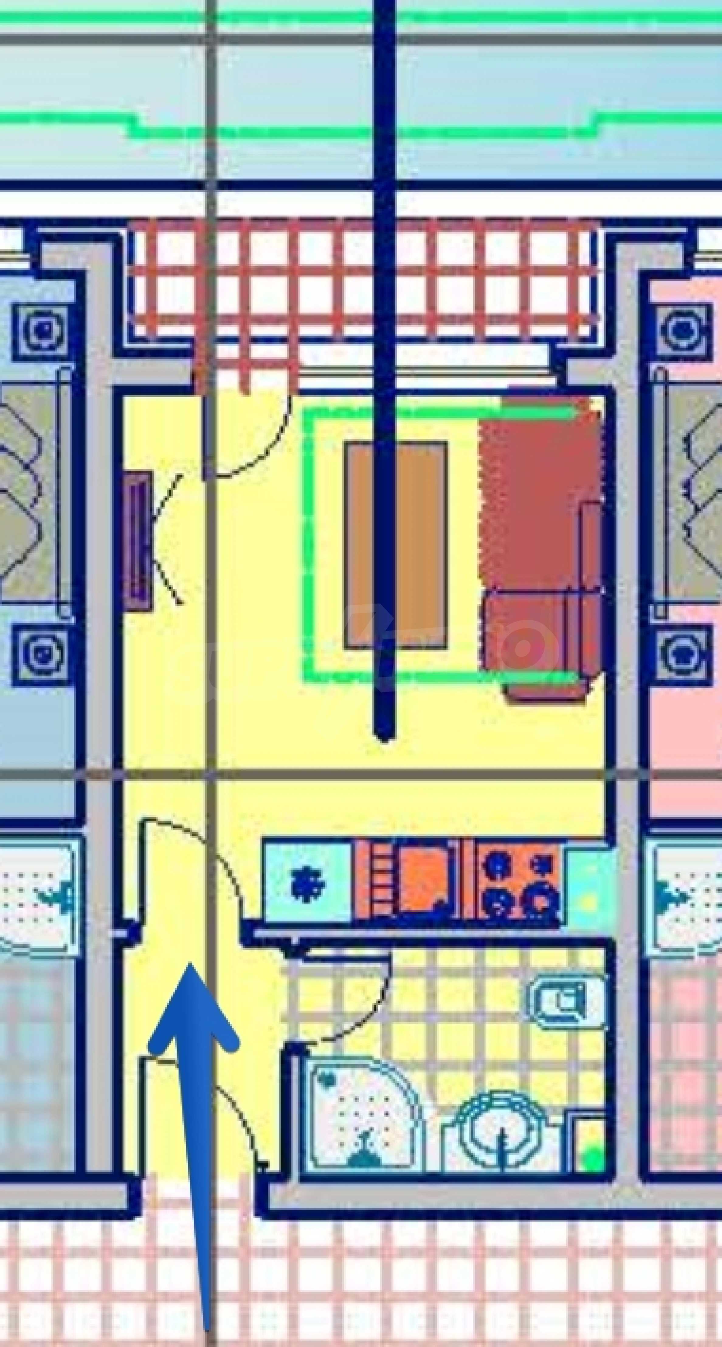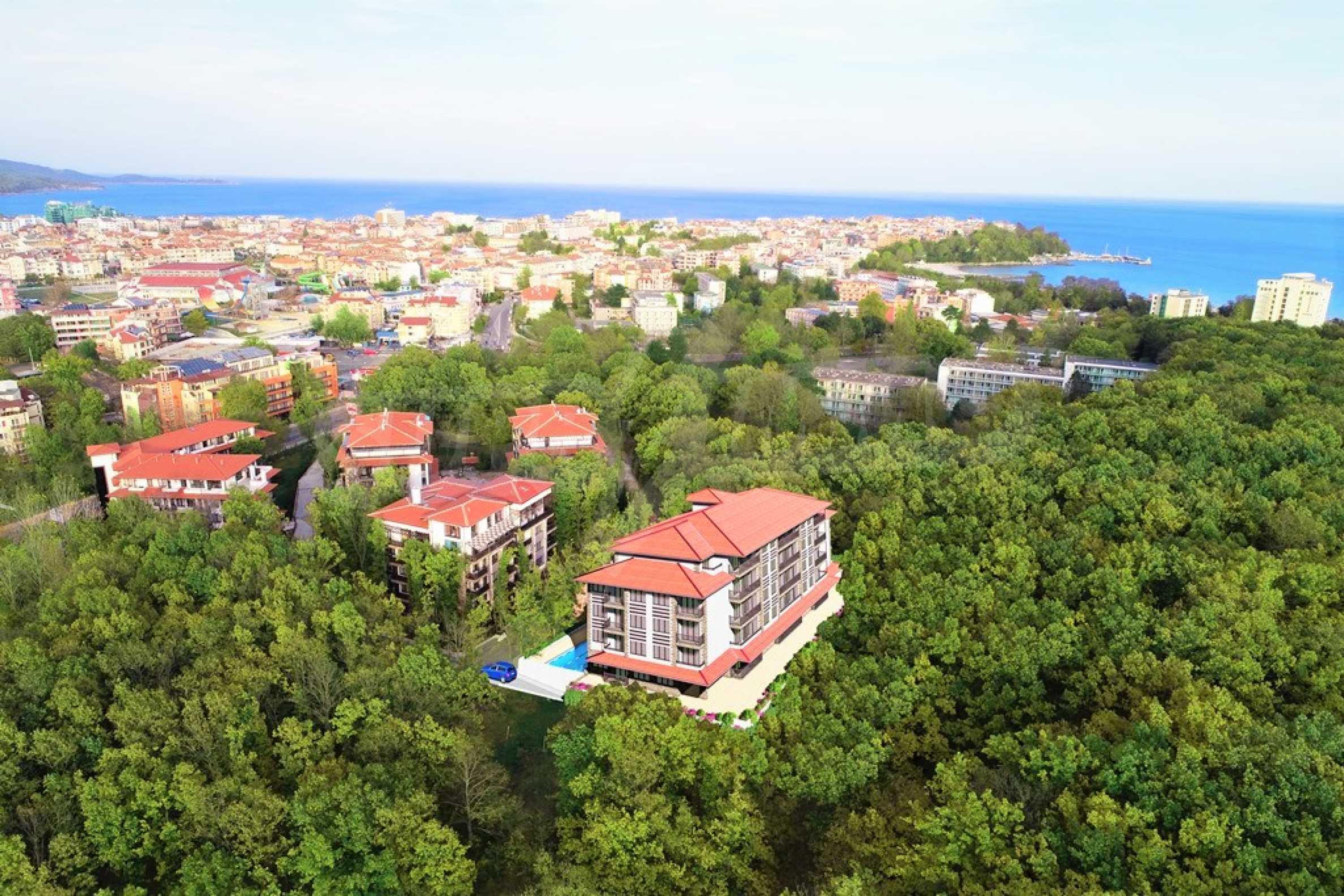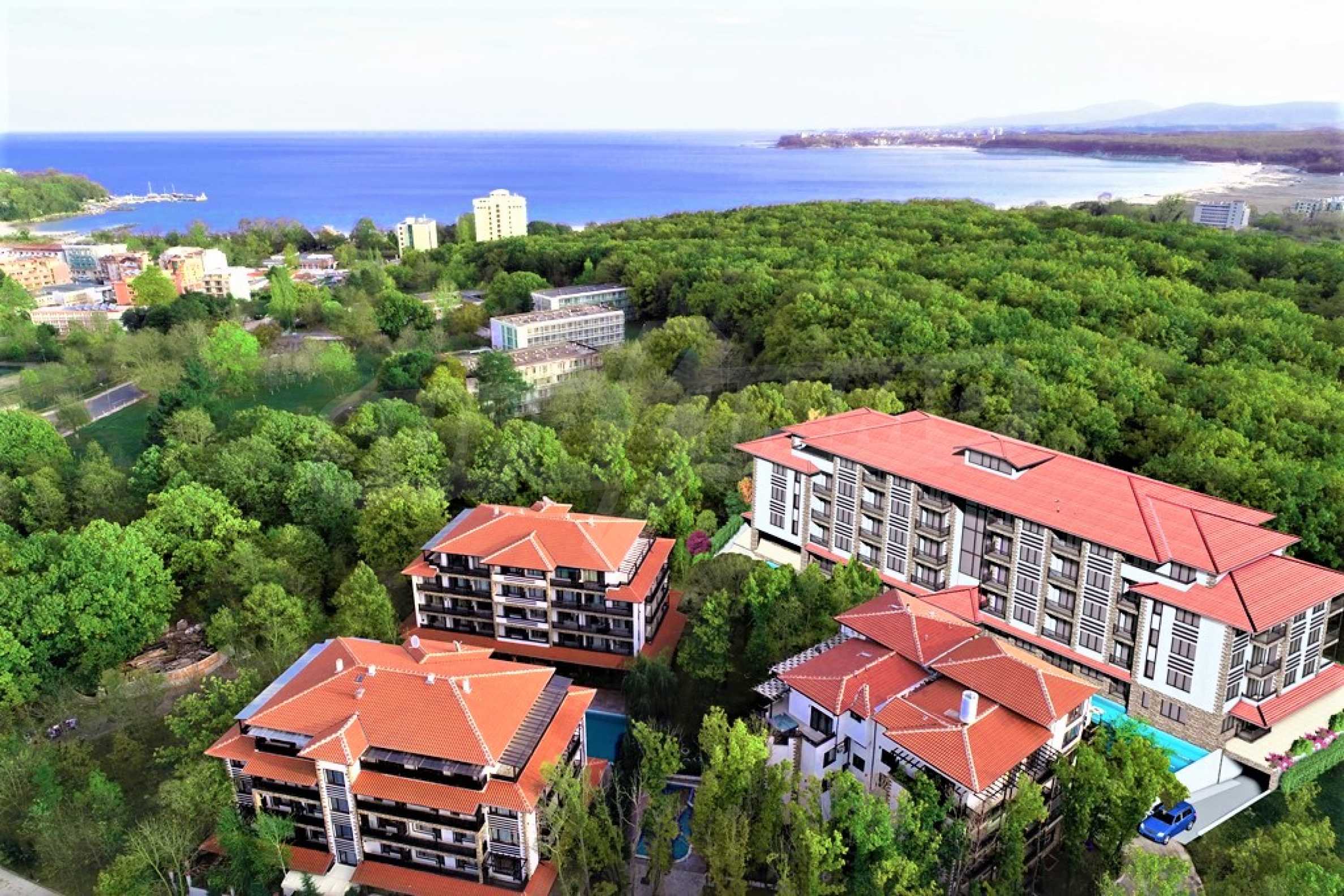 We present to you the studio in the fifth phase of the construction of the year-round gated complex, located in the oak forest, among tall trees, dense greenery, silence and forest air, with easy access to the infrastructure and beaches of Primorsko. The Green Complex offers excellent living and relaxation facilities, with a rich landscape of flowers, shrubs and trees, as well as beautiful decorations, swimming pools and recreation areas.