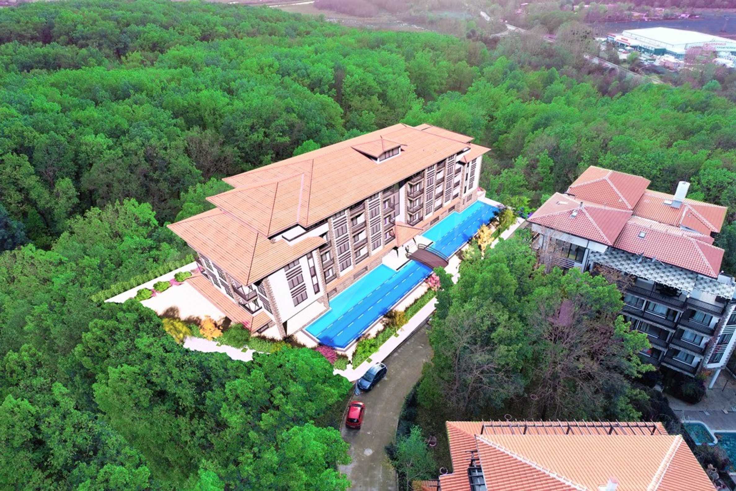 The property is part of the fifth phase of the construction of the year-round gated complex, located in the oak forest, among tall trees, dense greenery, silence and forest air, with easy access to the infrastructure and beaches of Primorsko. The "green" complex offers excellent living and leisure facilities, with a rich landscape of flowers, shrubs and trees, as well as beautiful decorations, pools and relaxation areas.
