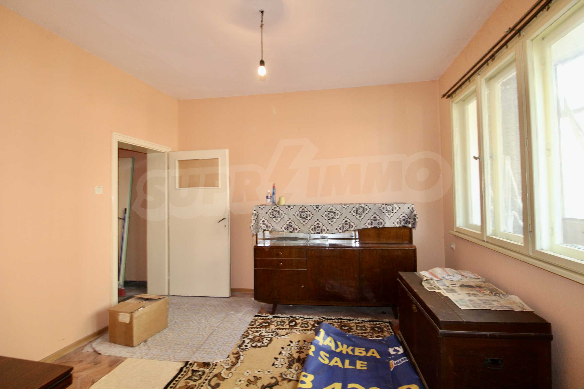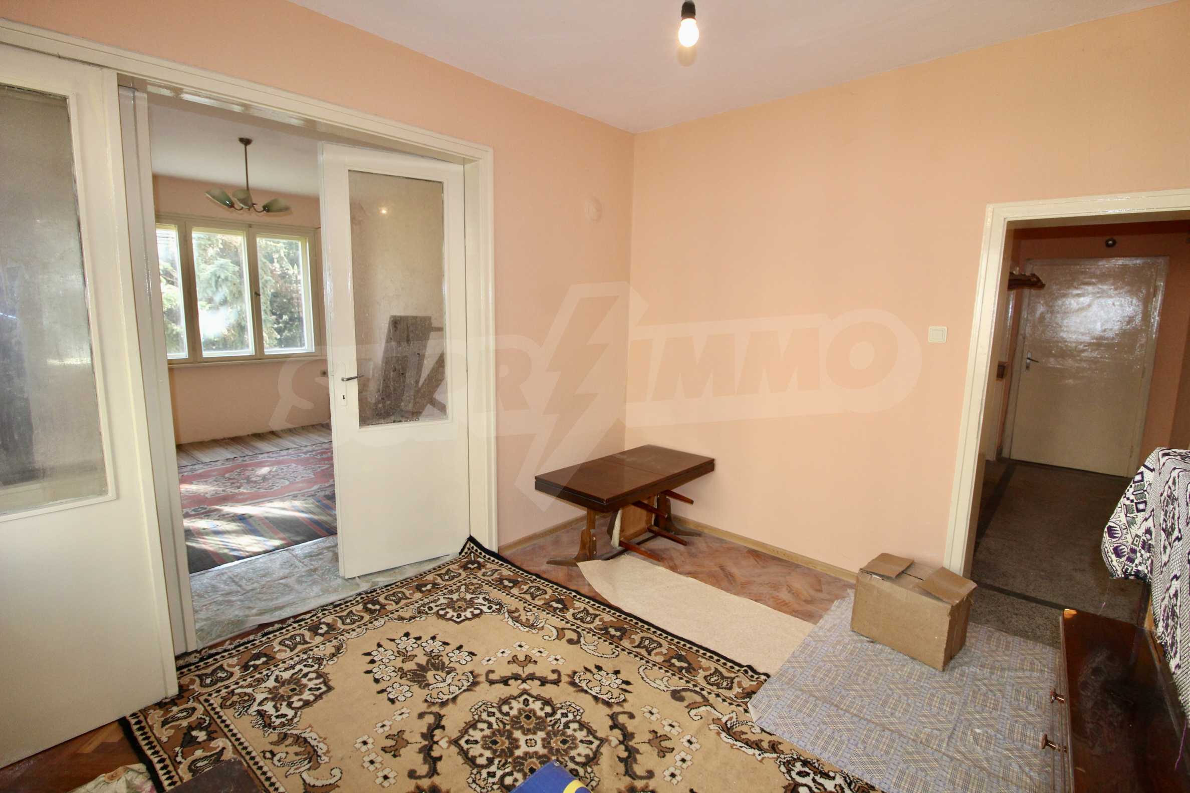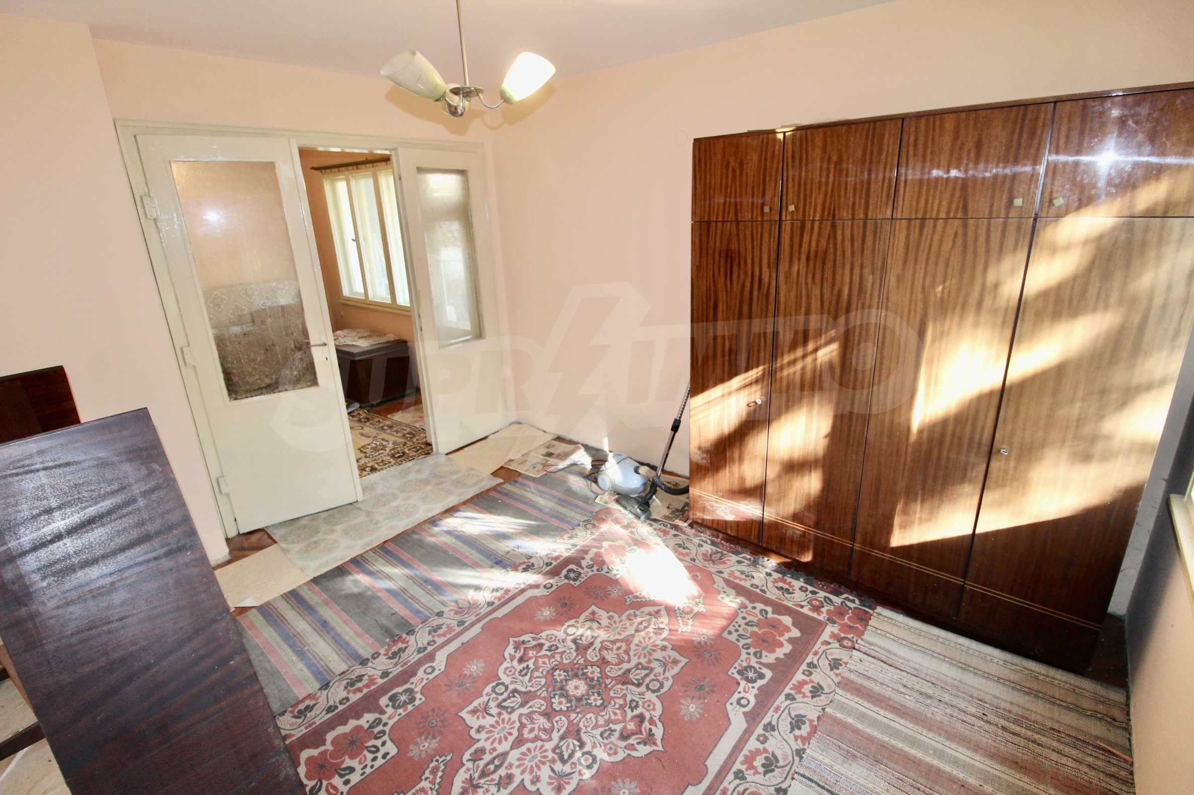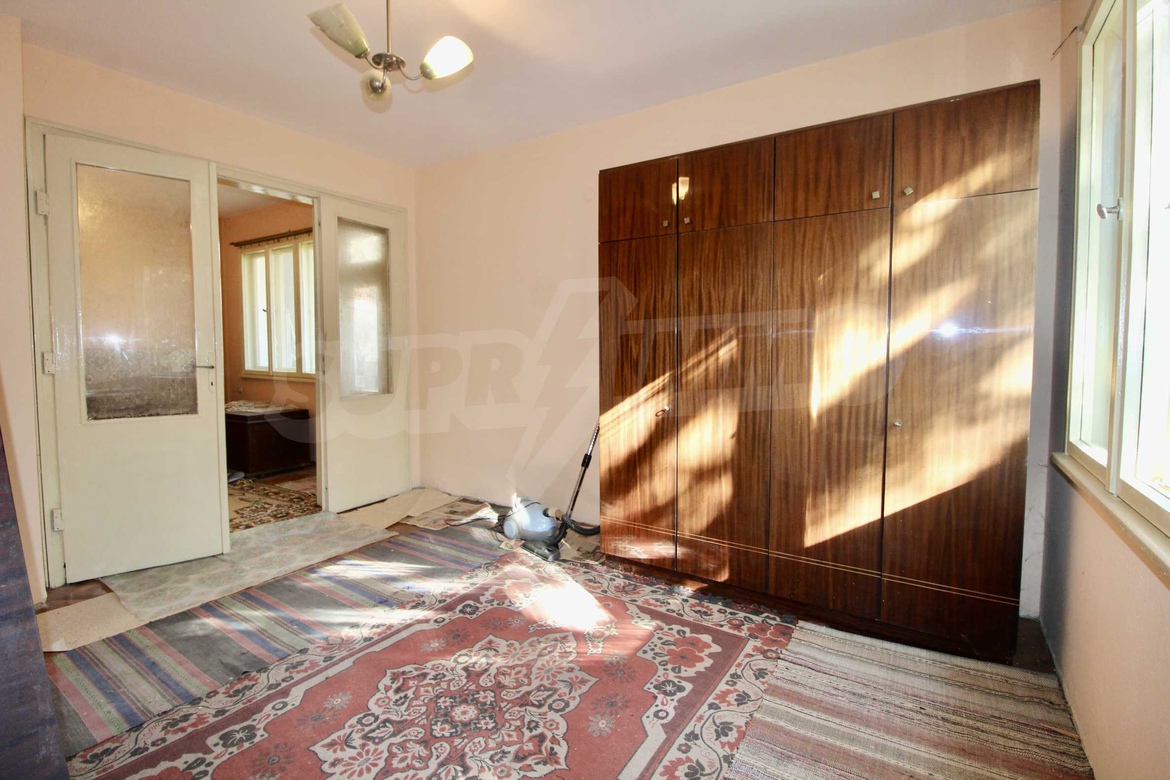 The property has been renovated. The bathroom is completely renovated. In two of the rooms the floors are with solid wooden parquet, which is varnished and ready for use. The kitchen has a new laminate. The windows are wooden. There is a possibility for gasification. The apartment is for sale unfurnished.
