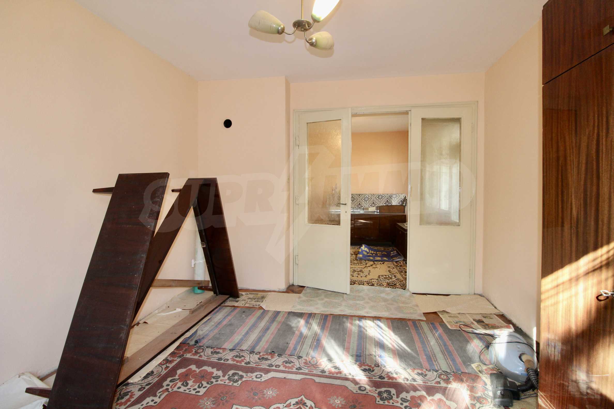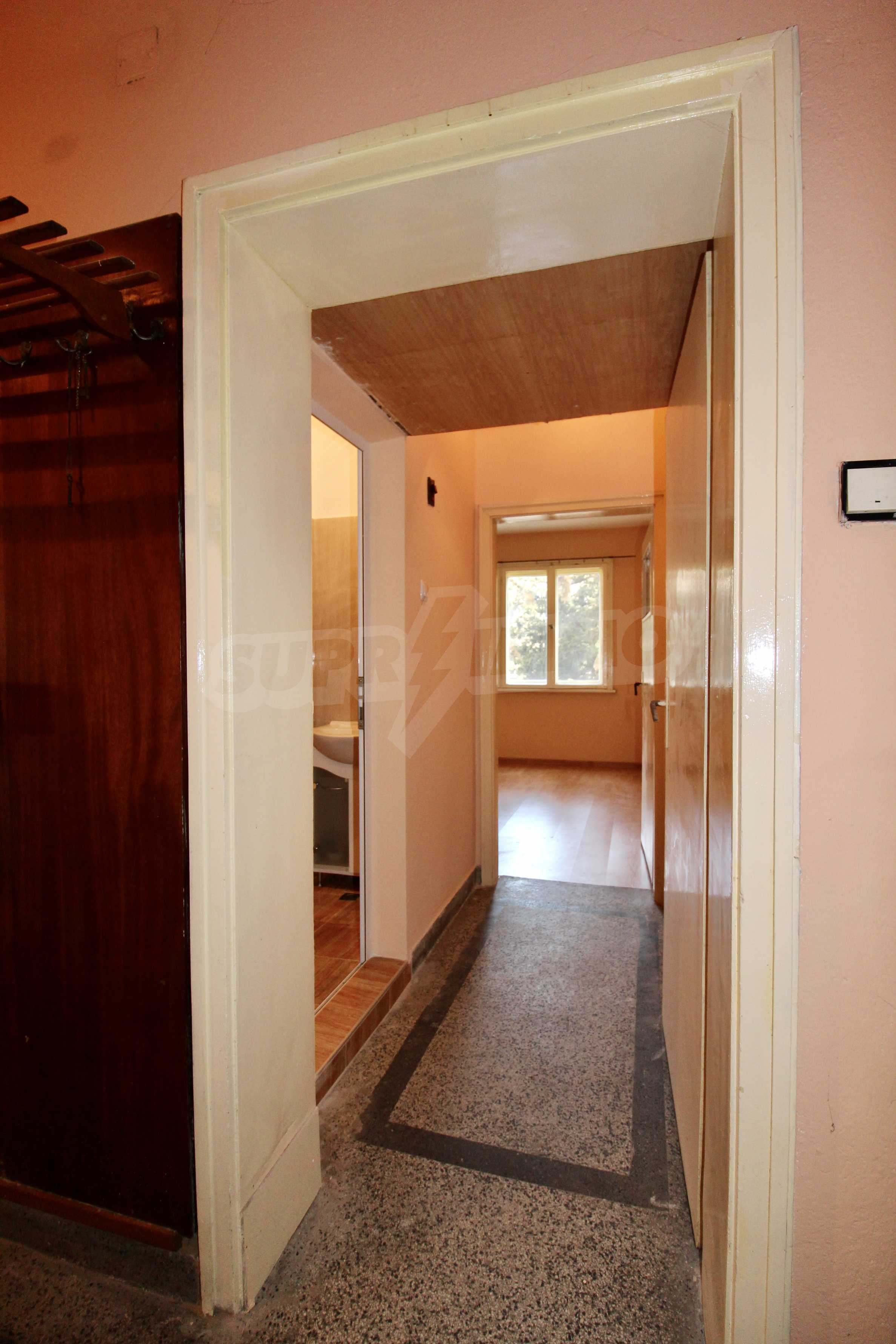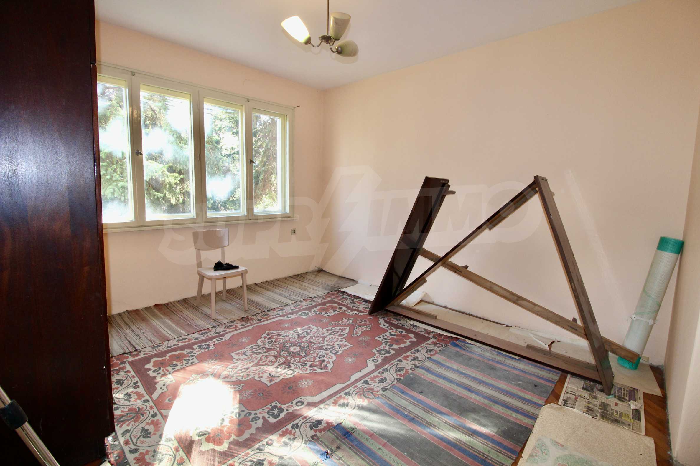 The property has been renovated. The bathroom is completely renovated. In two of the rooms the floors are with solid wooden parquet, which is varnished and ready for use. The kitchen has a new laminate. The windows are wooden. There is a possibility for gasification. The apartment is for sale unfurnished.