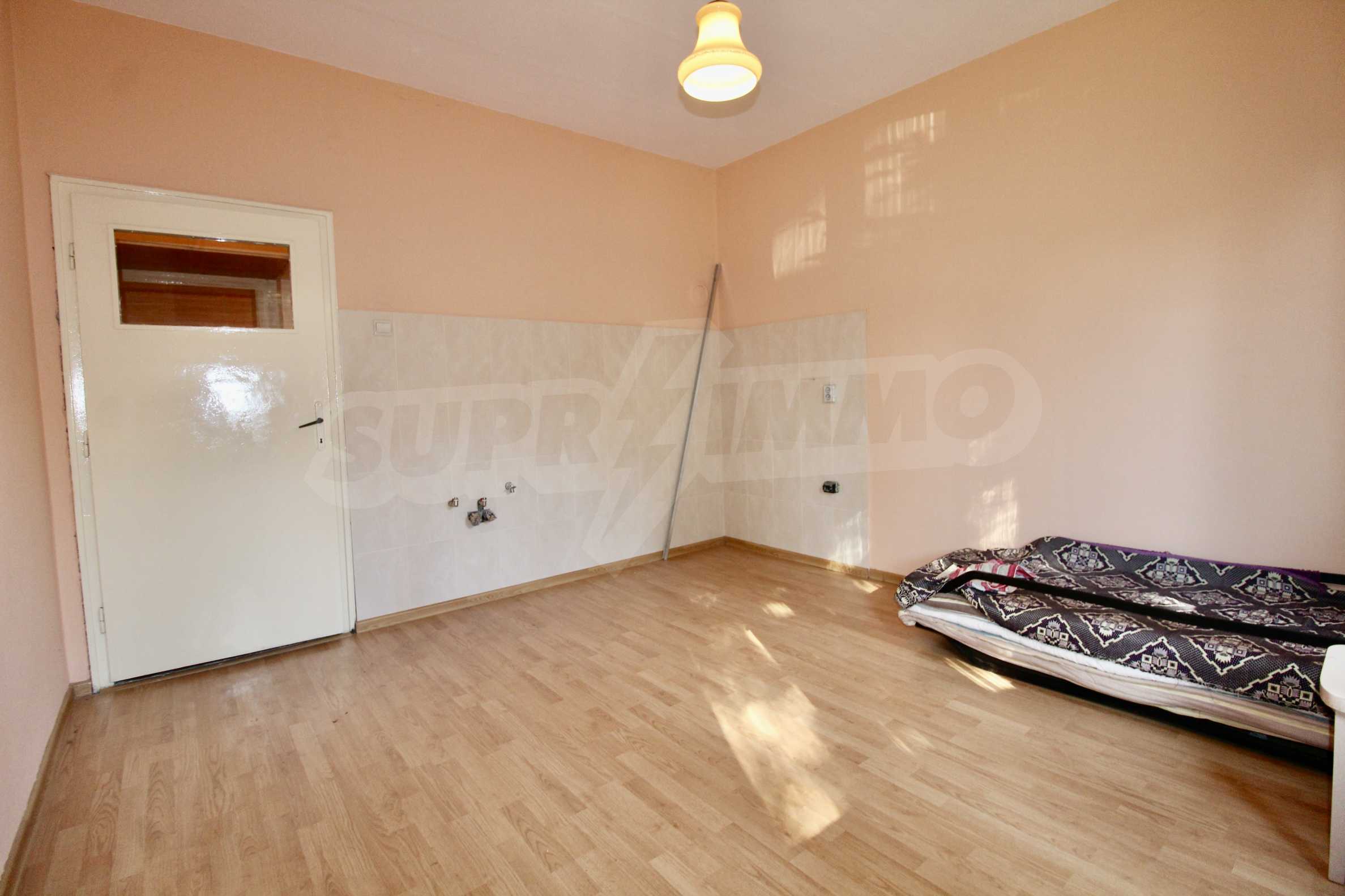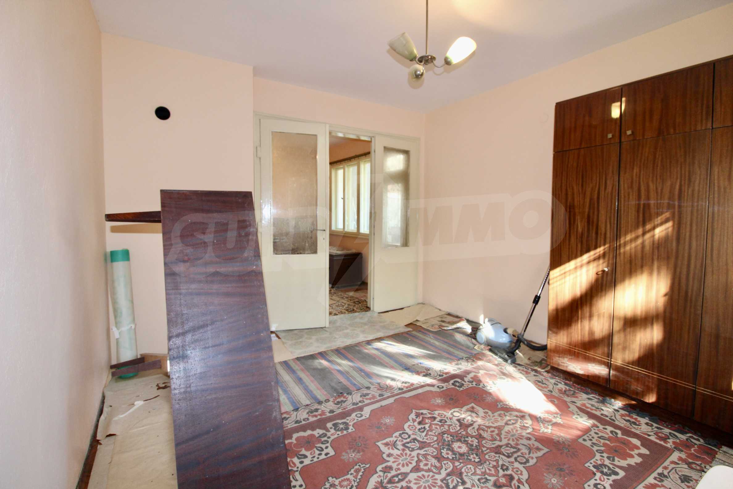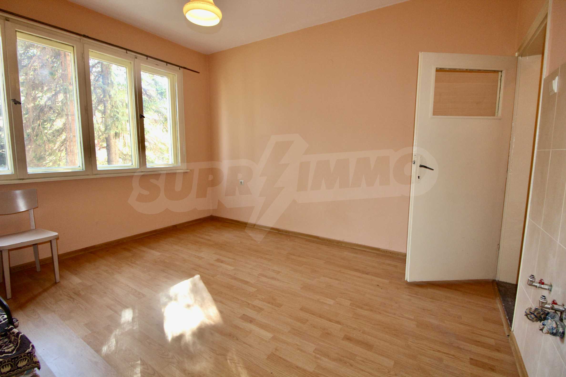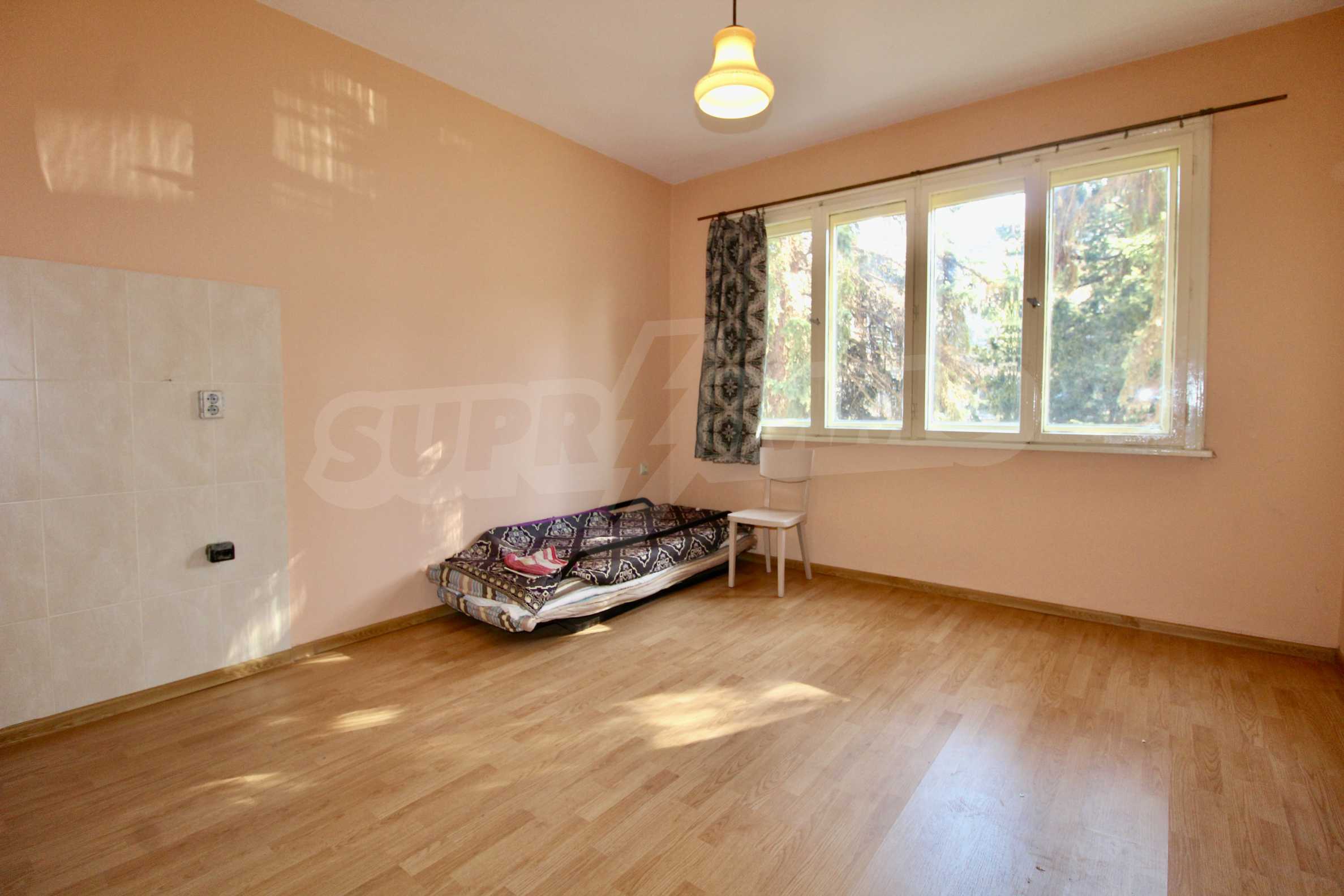 The property has been renovated. The bathroom is completely renovated. In two of the rooms the floors are with solid wooden parquet, which is varnished and ready for use. The kitchen has a new laminate. The windows are wooden. There is a possibility for gasification. The apartment is for sale unfurnished.
