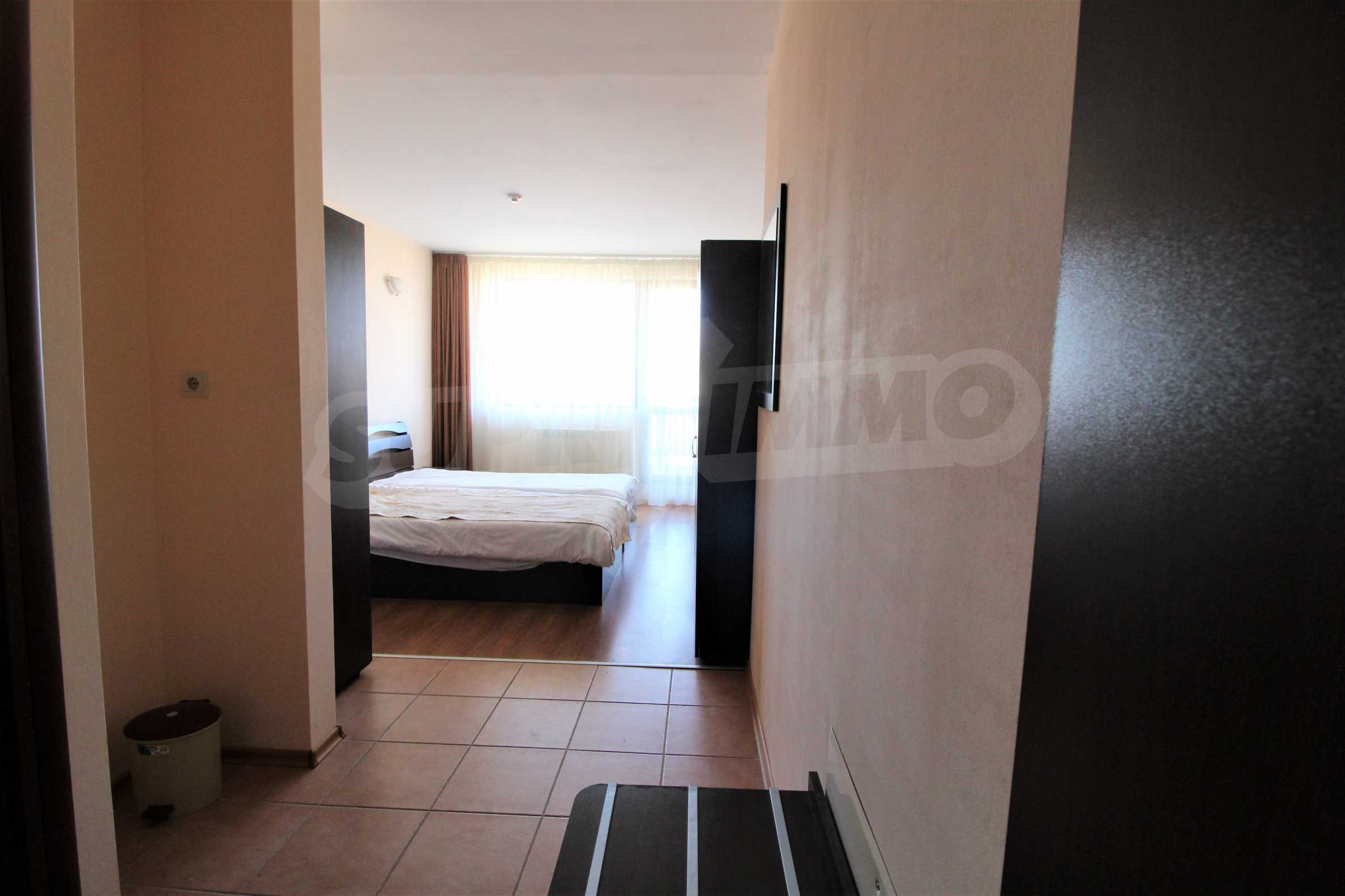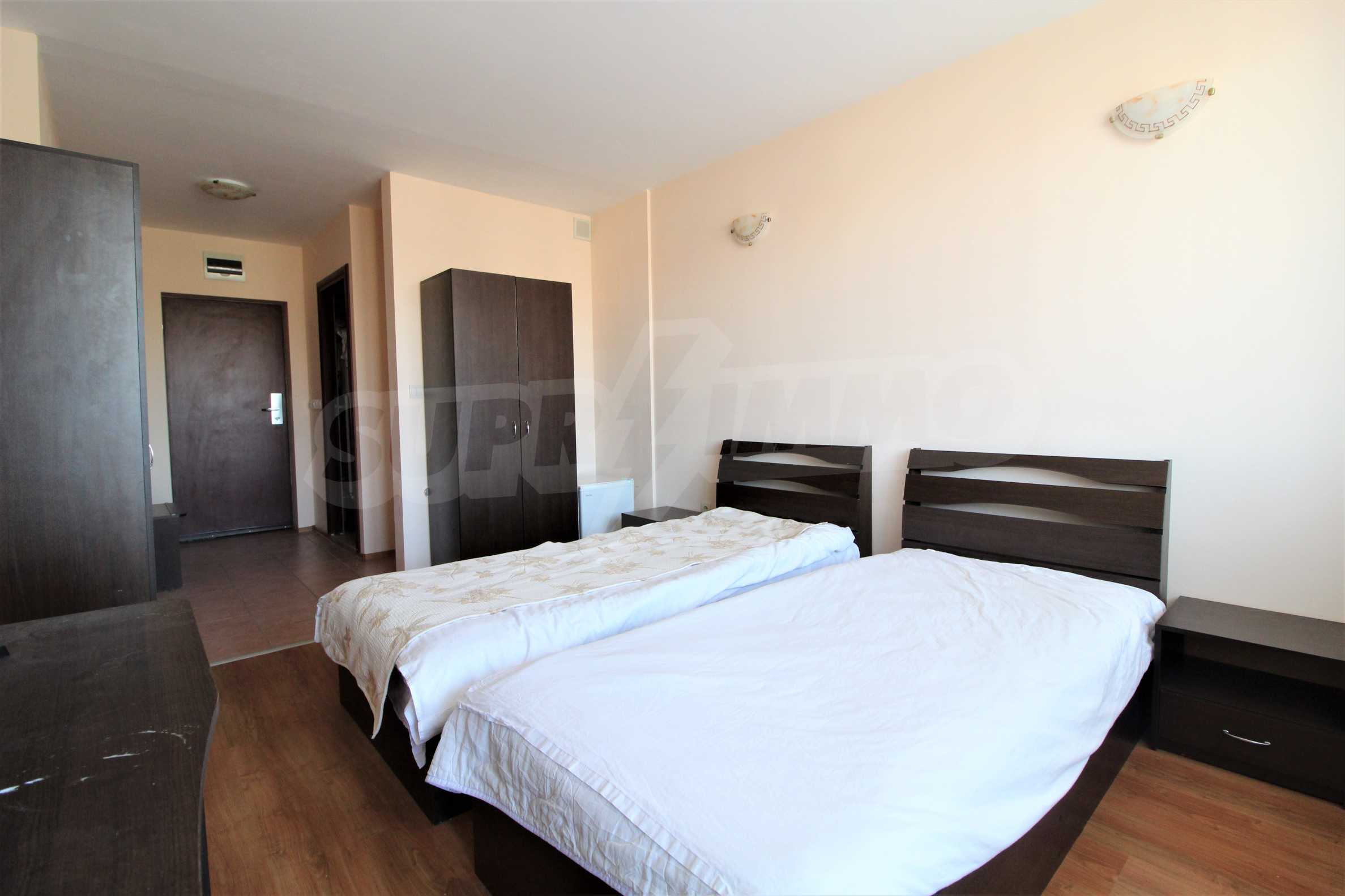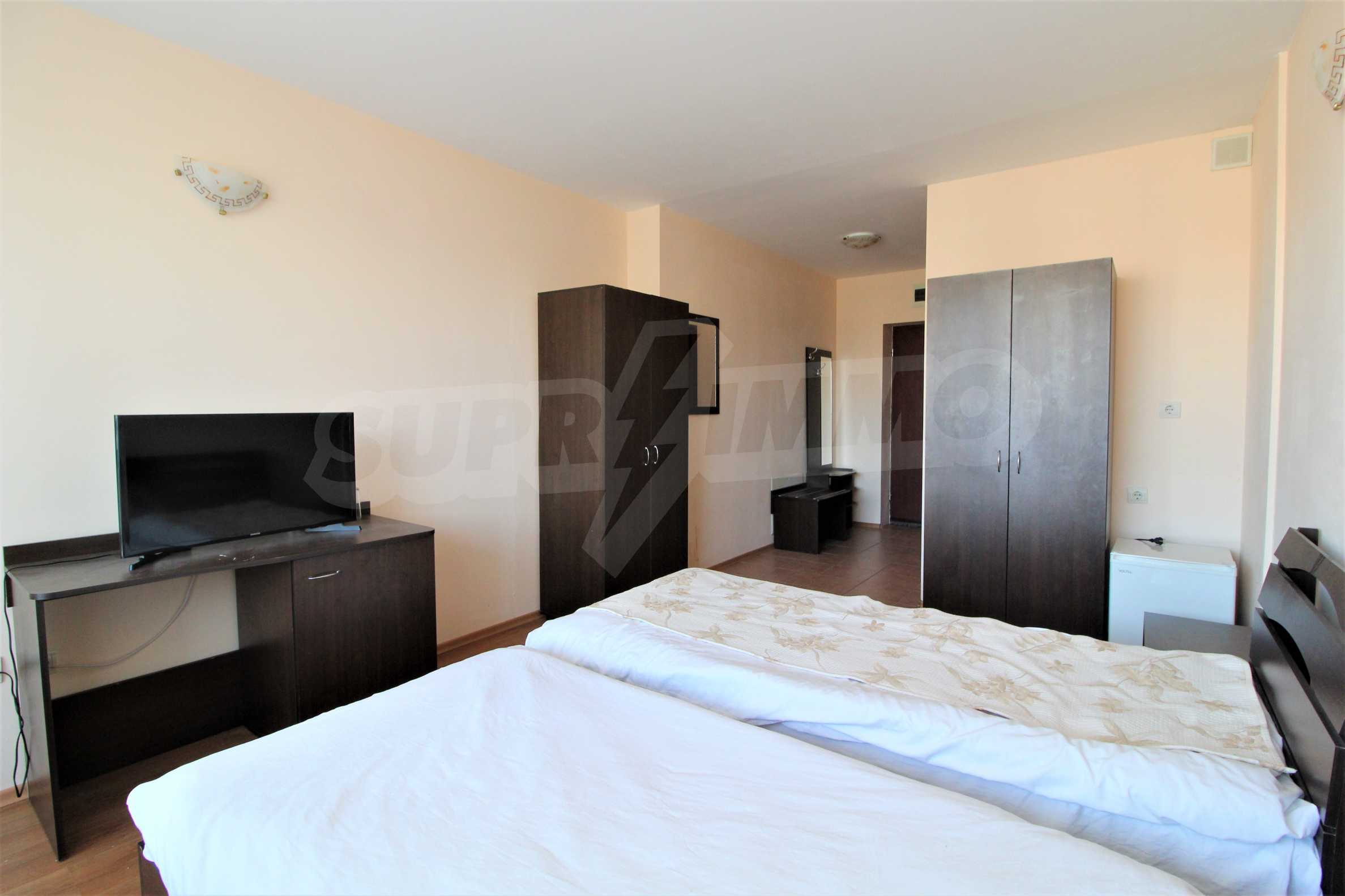 We present you a compact studio located in a cozy aparthotel in an attractive area of Bansko ski resort. The apartment is located 1 km from the Old Town of Bansko and only 10 minutes walking distance from the Gondola station. The apartment is offered fully furnished and equipped, ready to move in. For future owners are available all the amenities of the aparthotel: