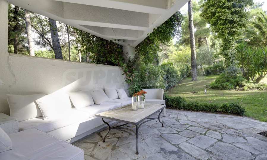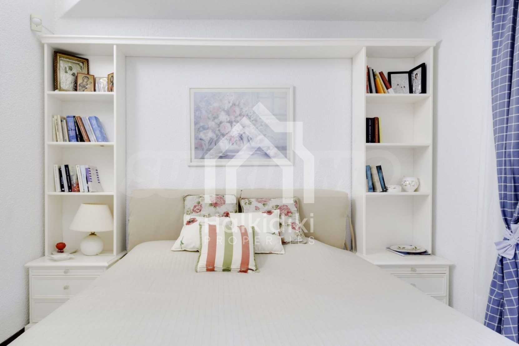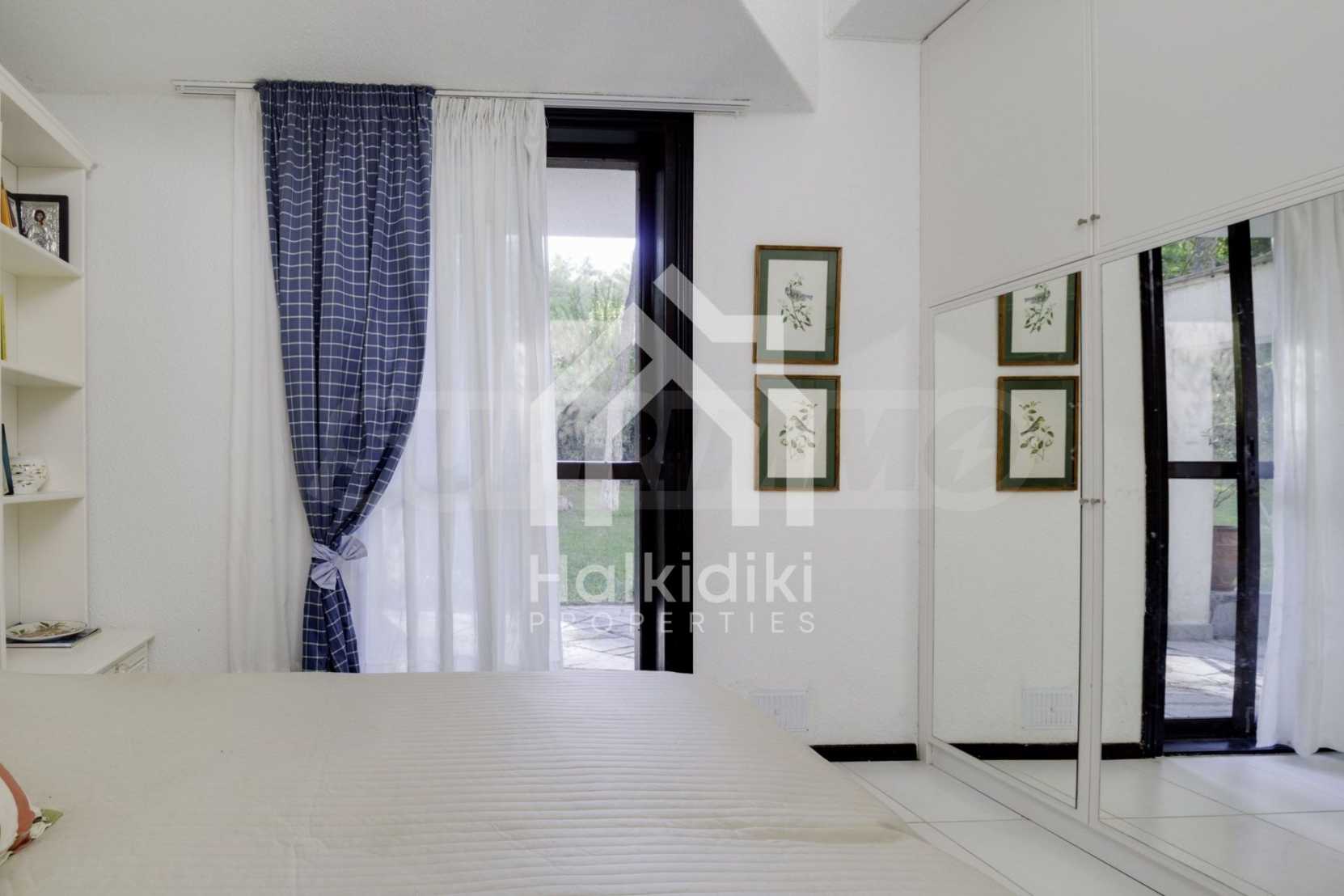 Lovely maisonette in Kassandra, Halkidiki, 80 sqm, surrounded by a scenery of great beauty that smoothly combines with the simple decoration and high aesthetics. The house is close to the beach and the central market of the village. It is surrounded by 780 sqm of garden and has an outdoor swimming pool, barbecue and a parking lot. The interior is fully furnished and equipped, offering many amenities.