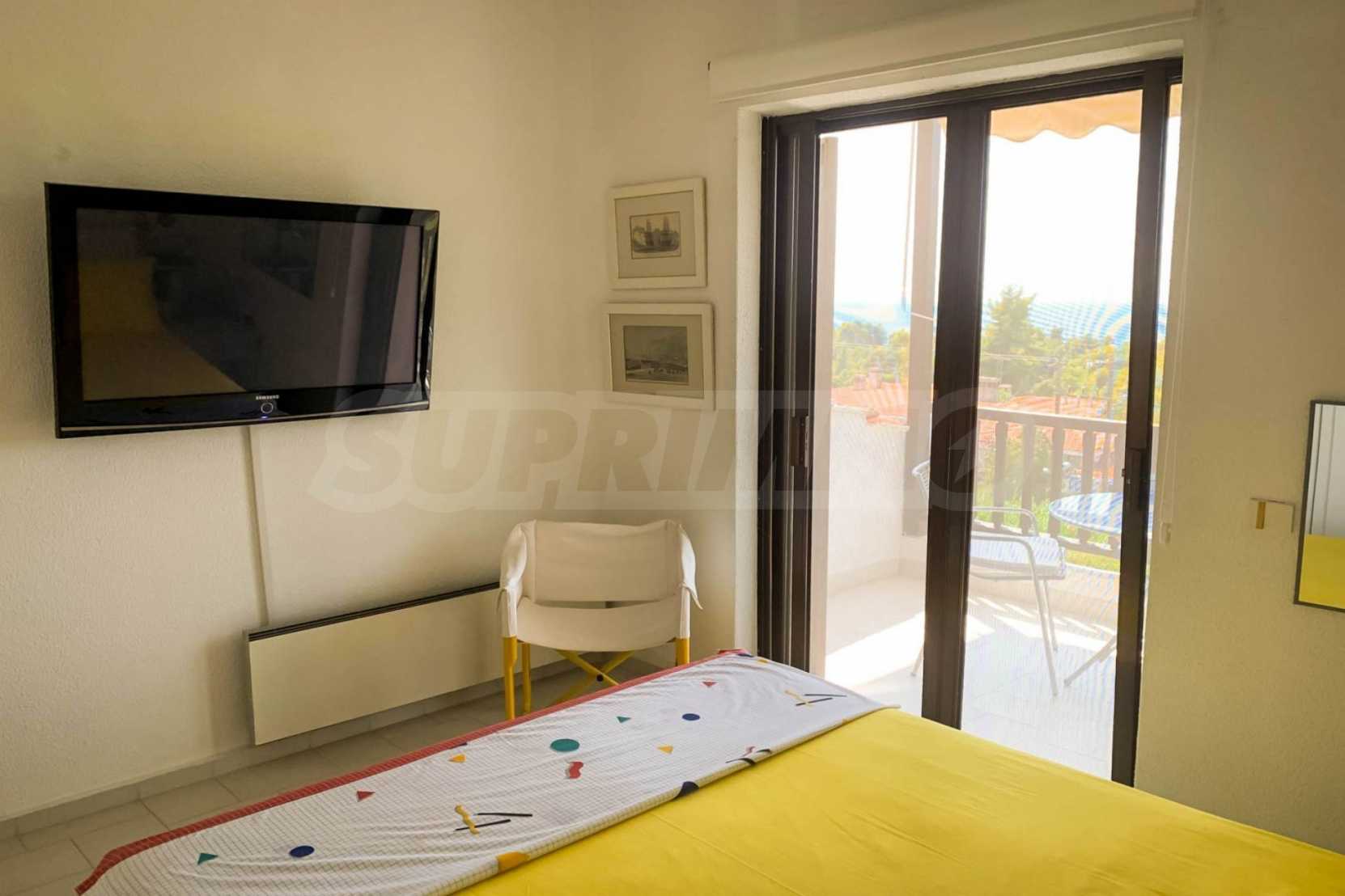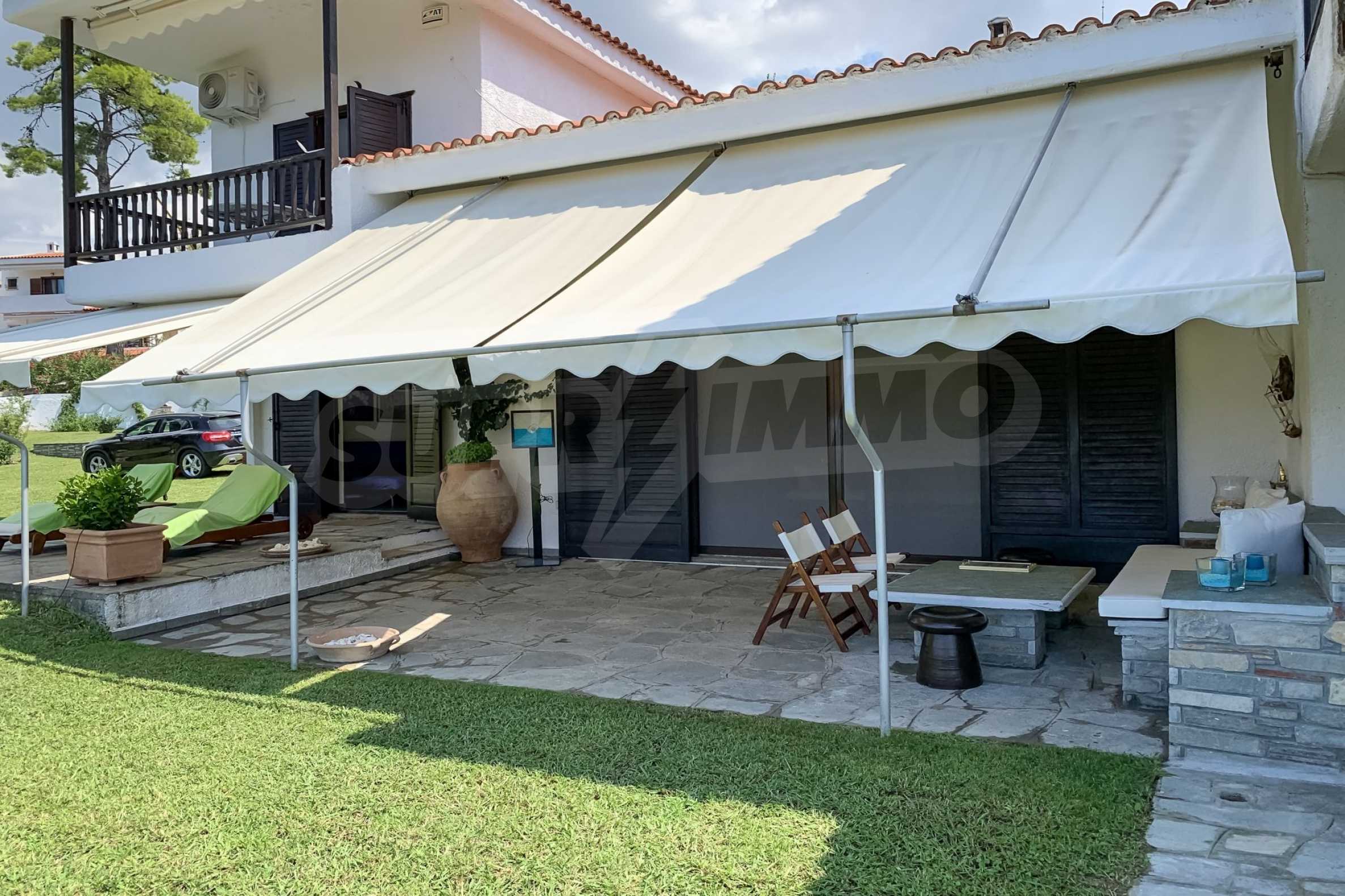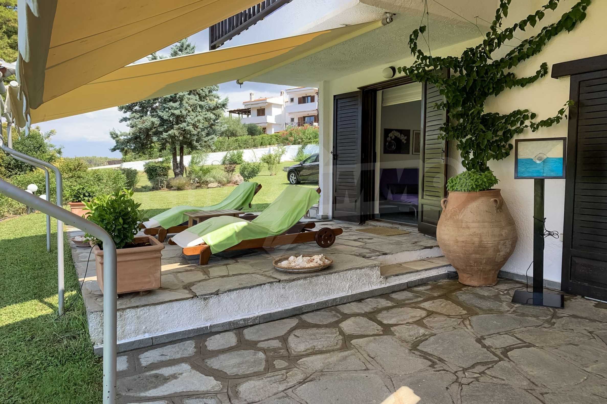 Furnished detached house,250 m²,in Kassandra,Halkidiki with unobstructed permanent sea view and with a western orientation.The property is 700 m. away from the beach and 2 km. away from the center of the village.The house is split in three levels,consisted of a living room connected with the kitchen,three bedrooms,two bathrooms,a wc and a storage room.The property,also,has spacious garden,solar heater and kiosk.