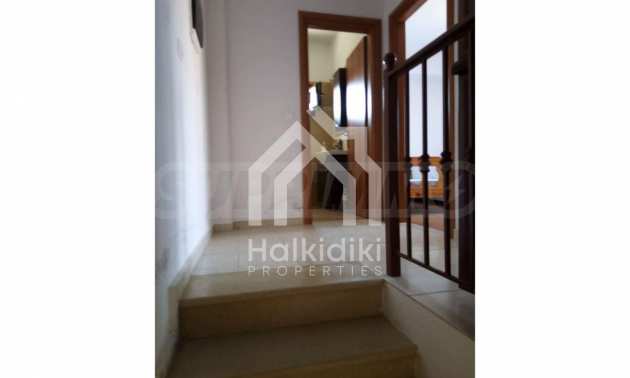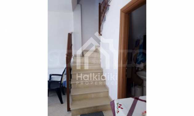 Two storey maisonette,78 m²,in Kassandra,Halkidiki with a southwestern orientation and with unobstructed permanent view.The property is 150 m. away from the beach and 100 m. away from the center of the village.The maisonette is split in two levels,consisted of a living room connected with the kitchen,two bedrooms,one bathroom and a wc.The property,also,has big balconies,aluminum joinery,security door and tile floors.The maisonette was built in 2013.