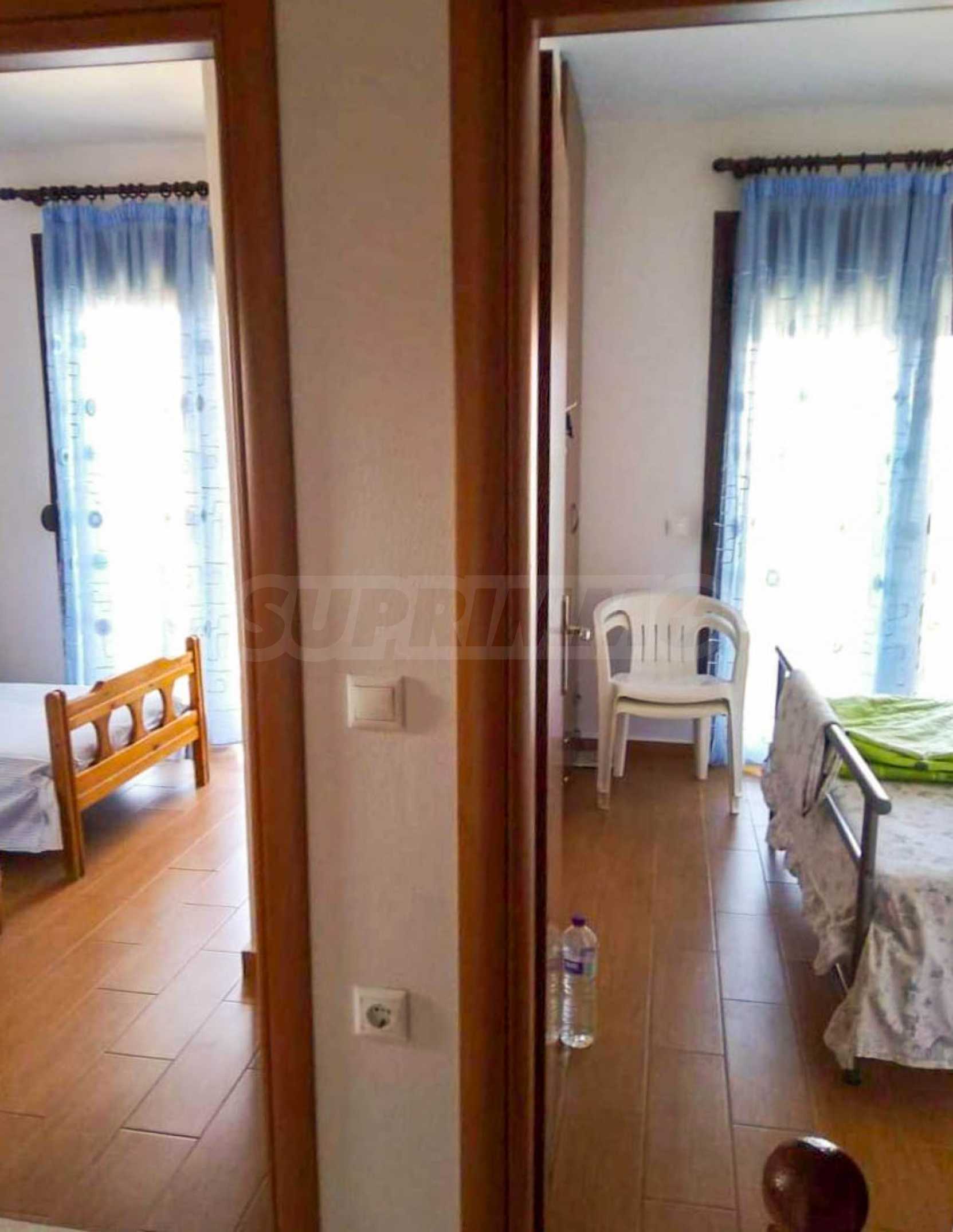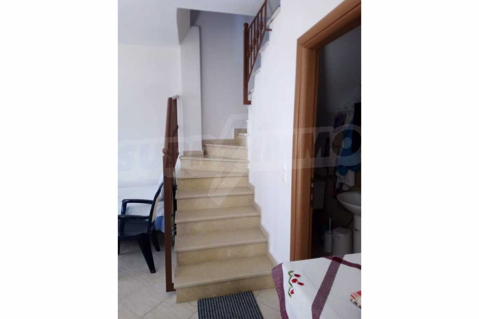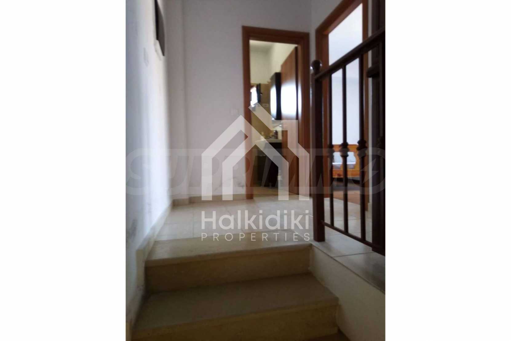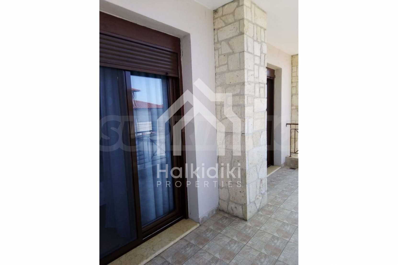 Two storey maisonette,78 m²,in Kassandra,Halkidiki with a southwestern orientation and with unobstructed permanent view.The property is 150 m. away from the beach and 100 m. away from the center of the village.The maisonette is split in two levels,consisted of a living room connected with the kitchen,two bedrooms,one bathroom and a wc.The property,also,has big balconies,aluminum joinery,security door and tile floors.The maisonette was built in 2013.