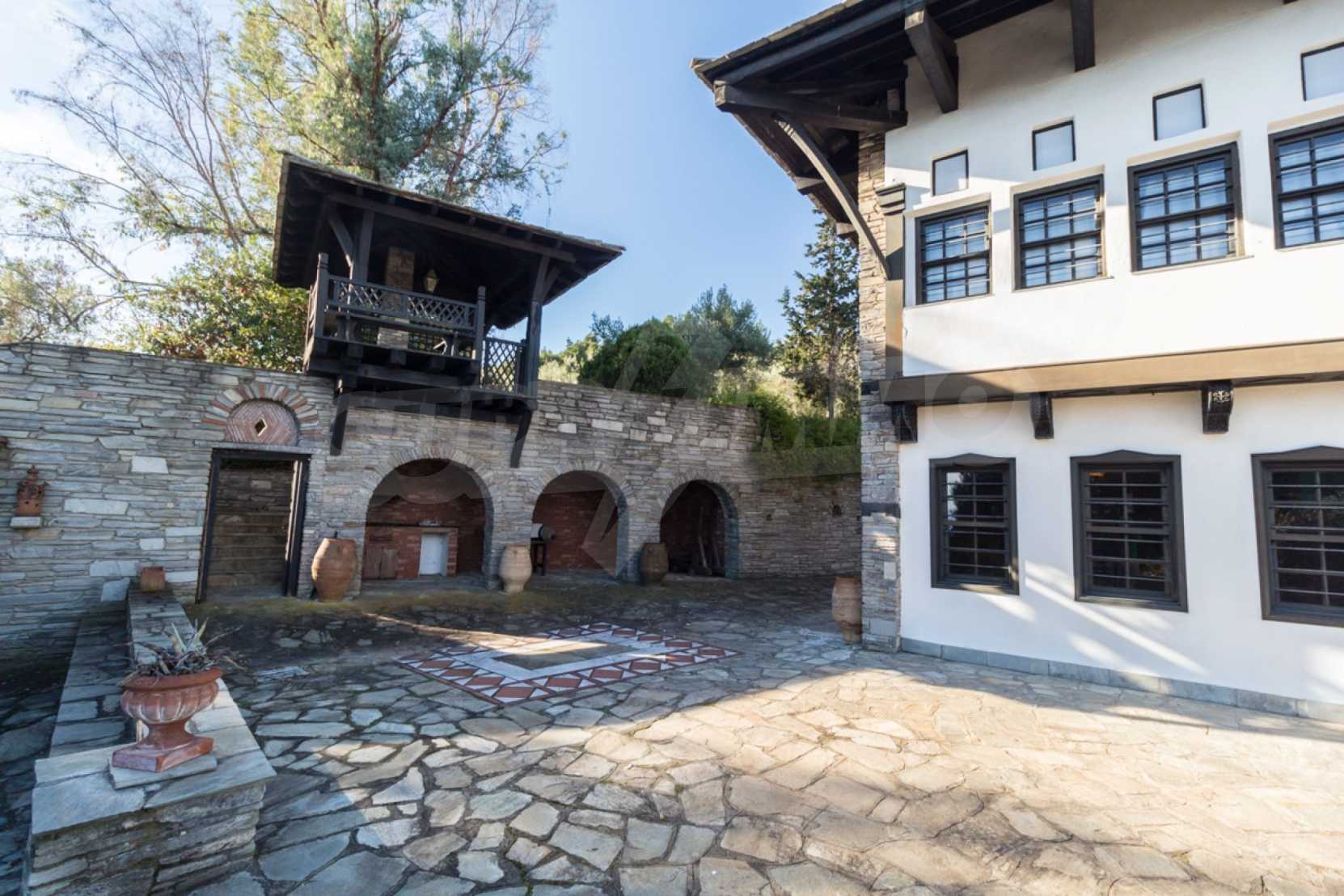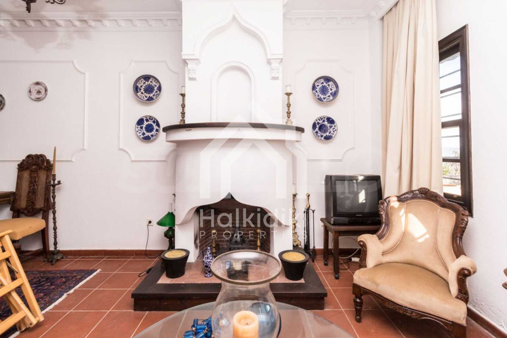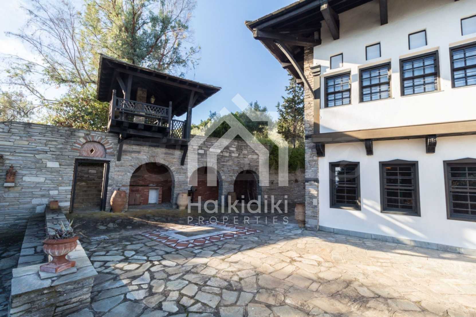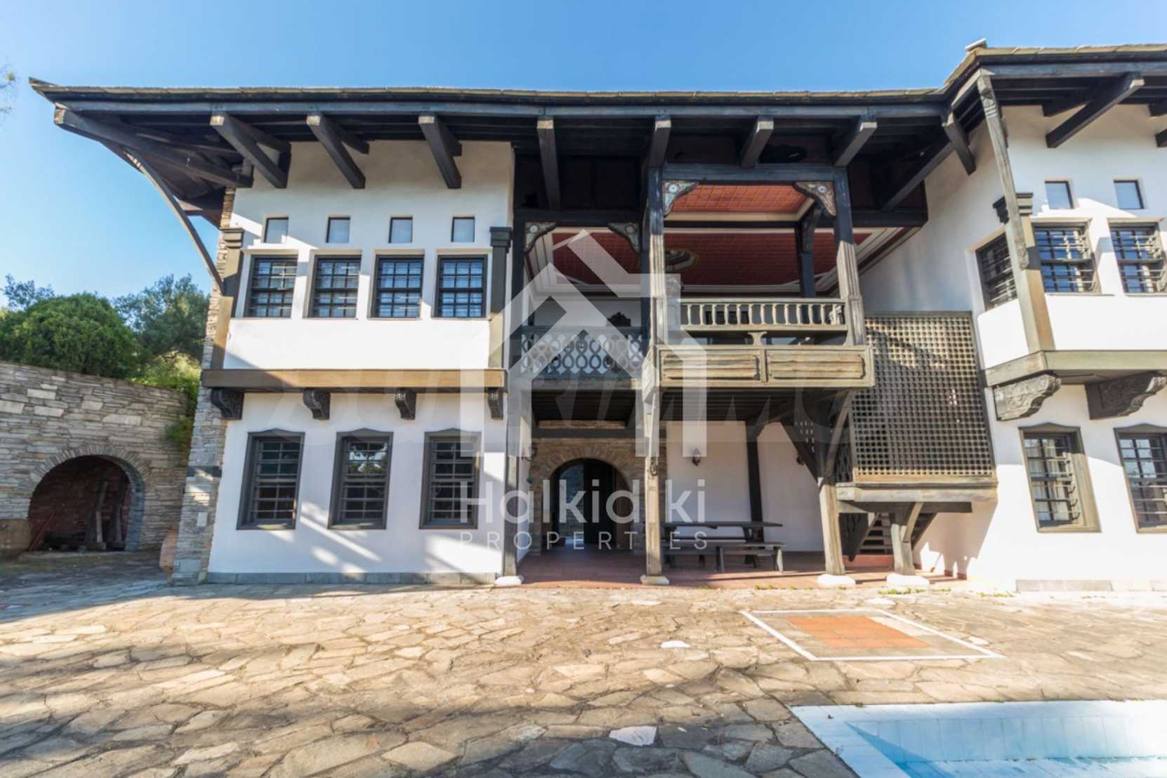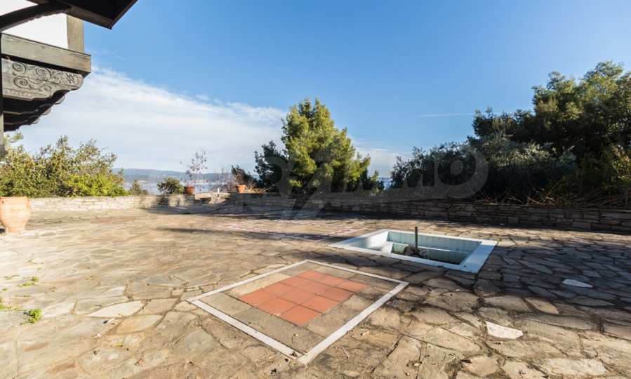Unique,stone-built villa,400 m²,in Sithonia,Halkidiki with an eastern orientation and with unobstructed permanent view of Mount Athos bay .The property is built on a hill and it is surrounded by 4.350m² pine-covered area.The villa is split in three levels,consisted of three living rooms,a spacious kitchen,four bedrooms,four bathrooms,three wc and two storage rooms.The property,also,has big balconies,wooden joinery,drilling, olive grove,barbecue and a kiosk.