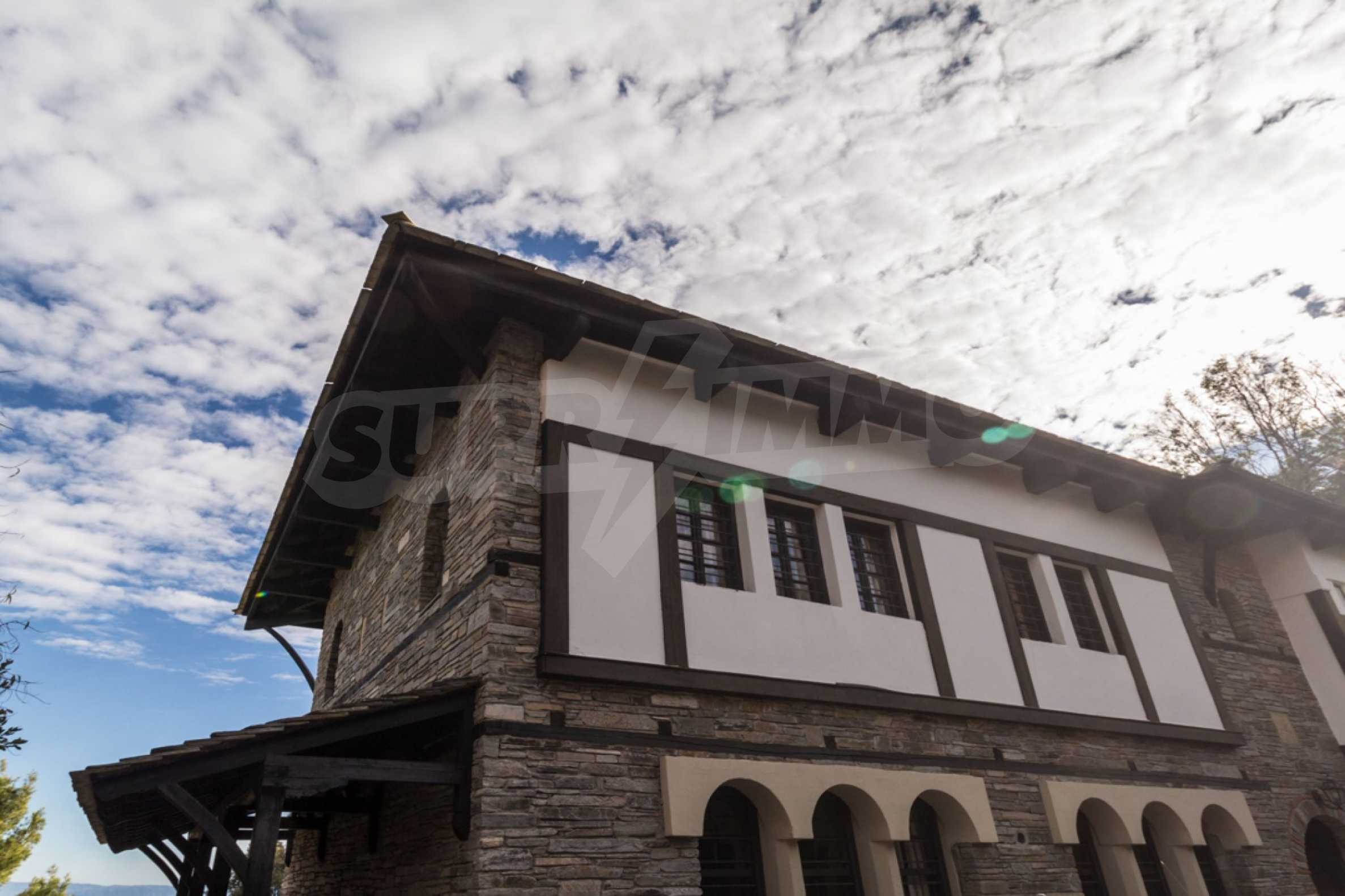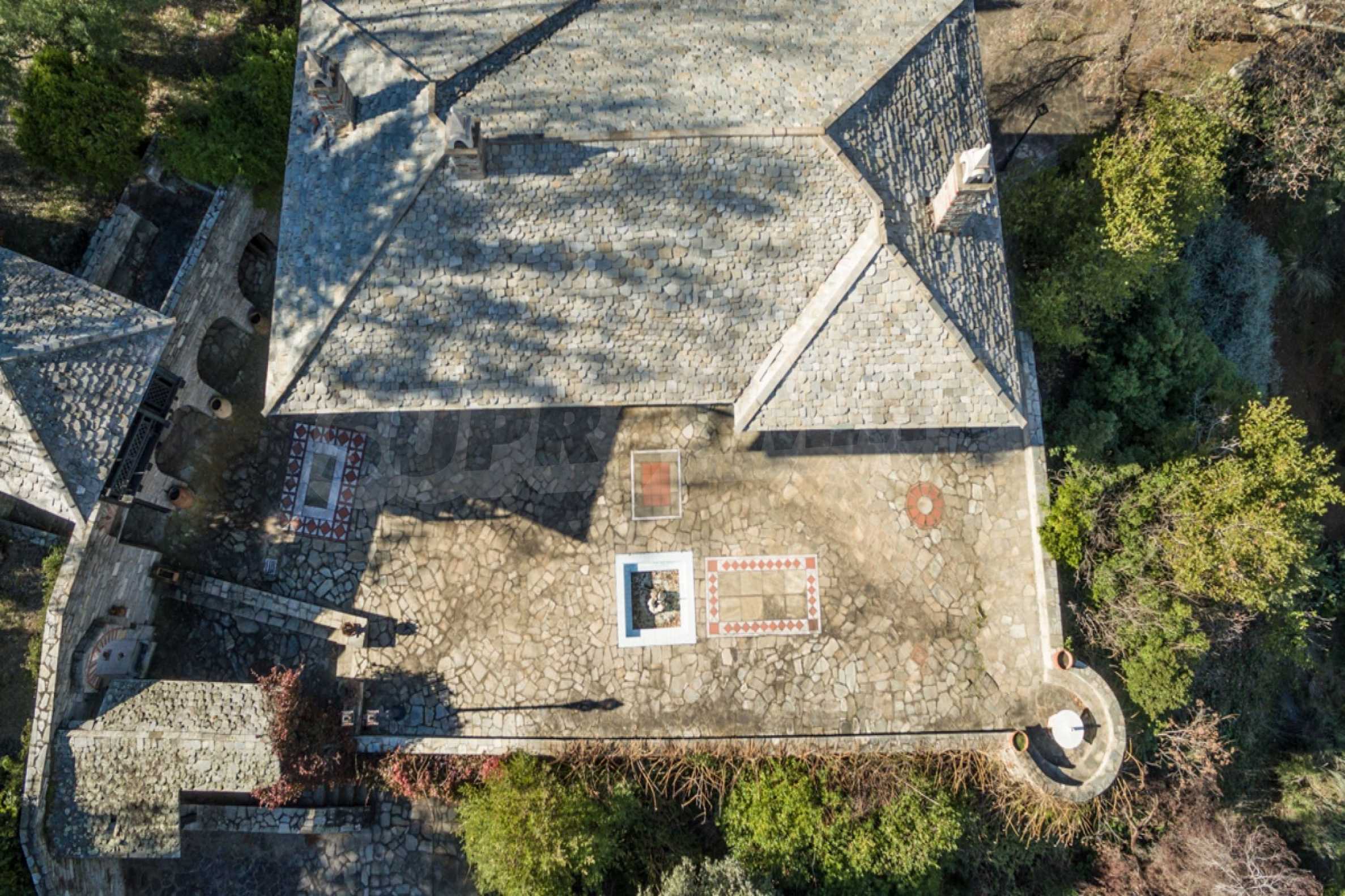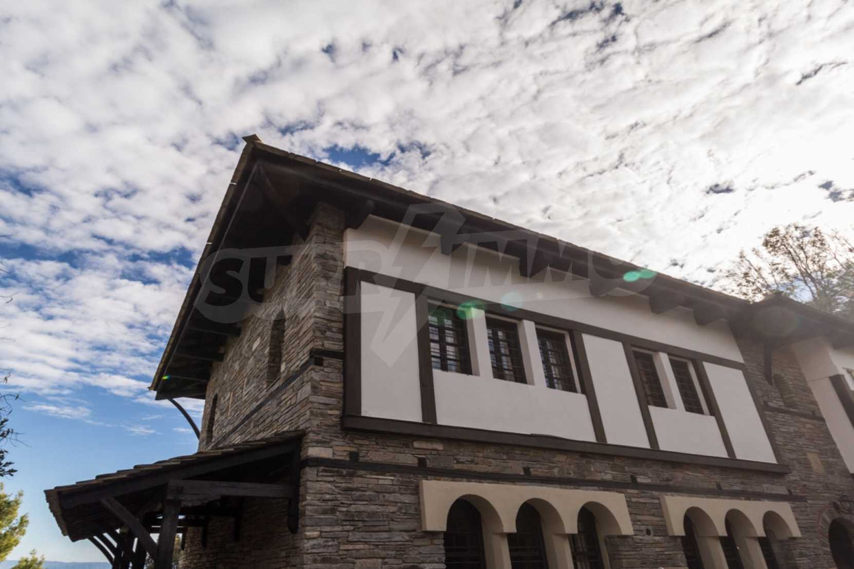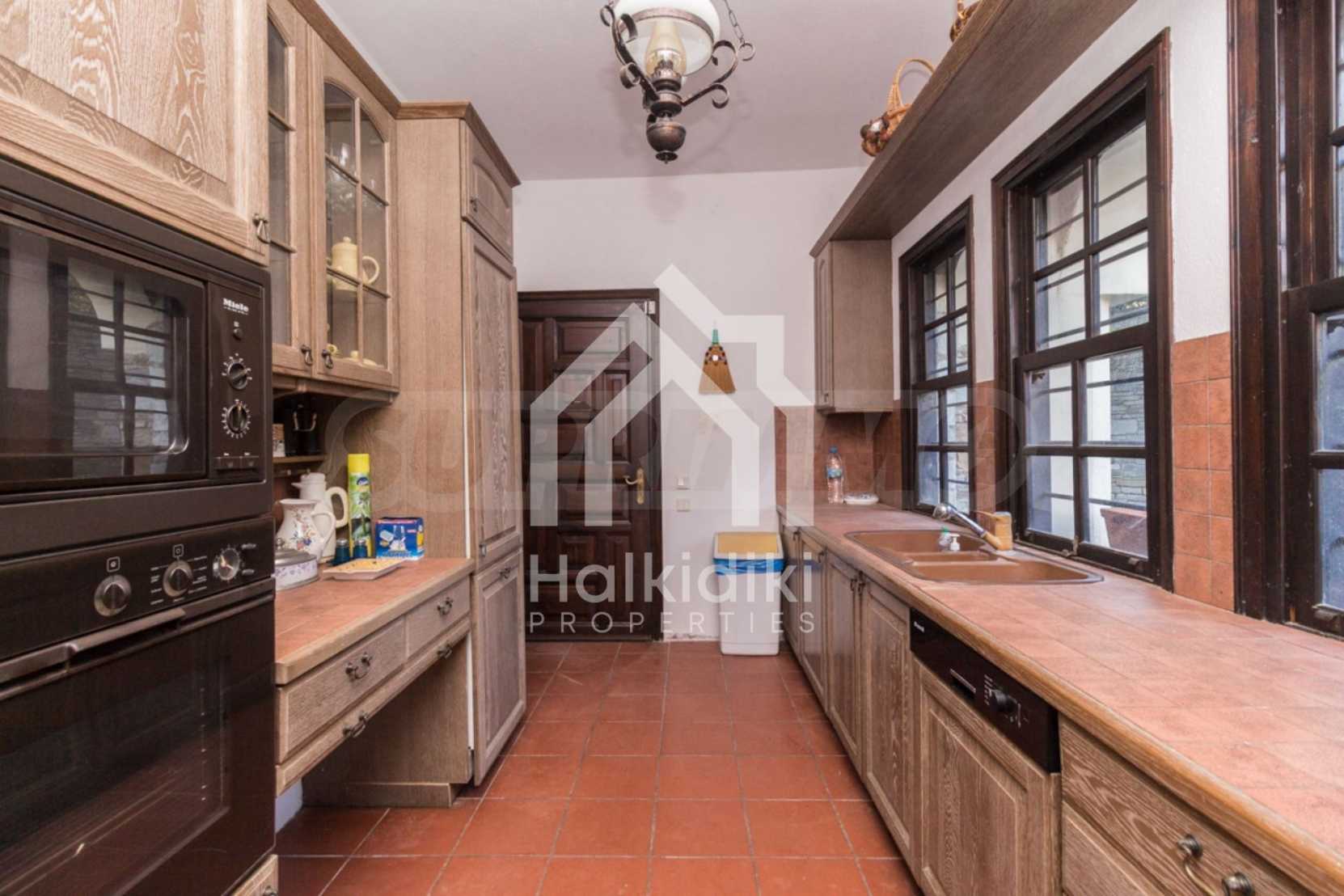 Unique,stone-built villa,400 m²,in Sithonia,Halkidiki with an eastern orientation and with unobstructed permanent view of Mount Athos bay .The property is built on a hill and it is surrounded by 4.350m² pine-covered area.The villa is split in three levels,consisted of three living rooms,a spacious kitchen,four bedrooms,four bathrooms,three wc and two storage rooms.The property,also,has big balconies,wooden joinery,drilling, olive grove,barbecue and a kiosk.