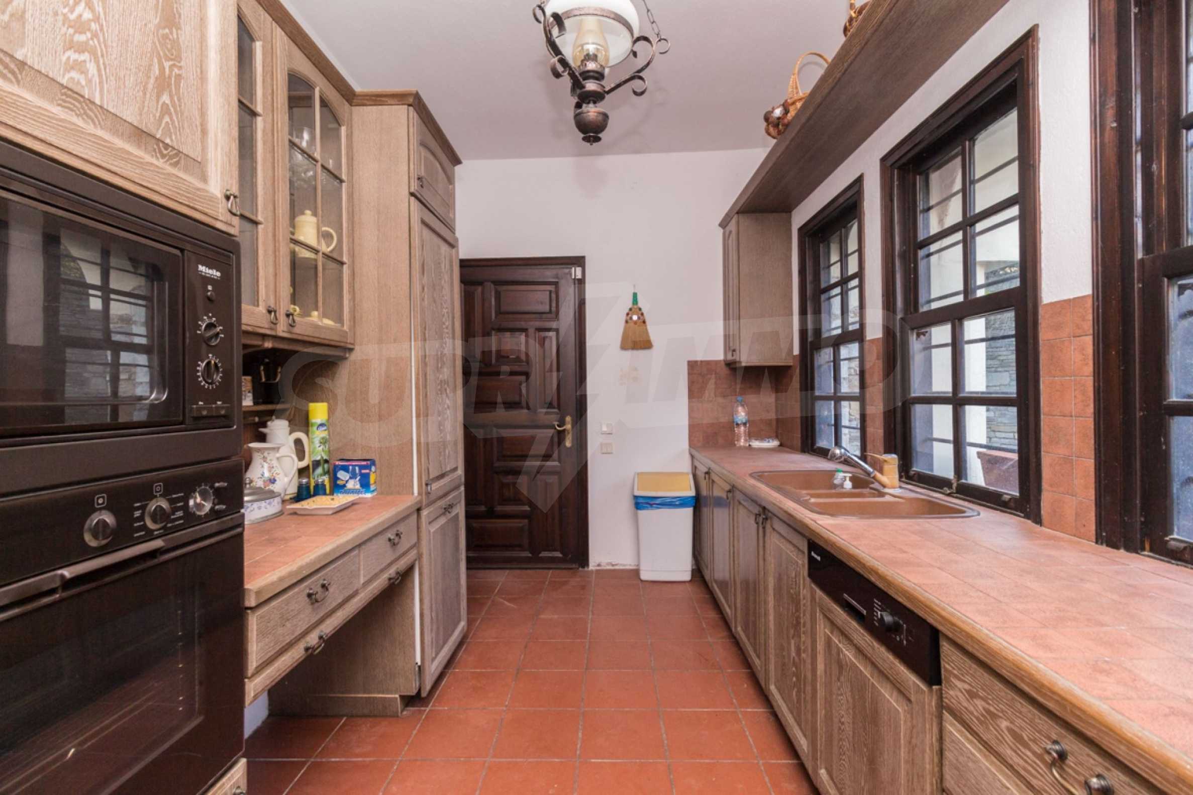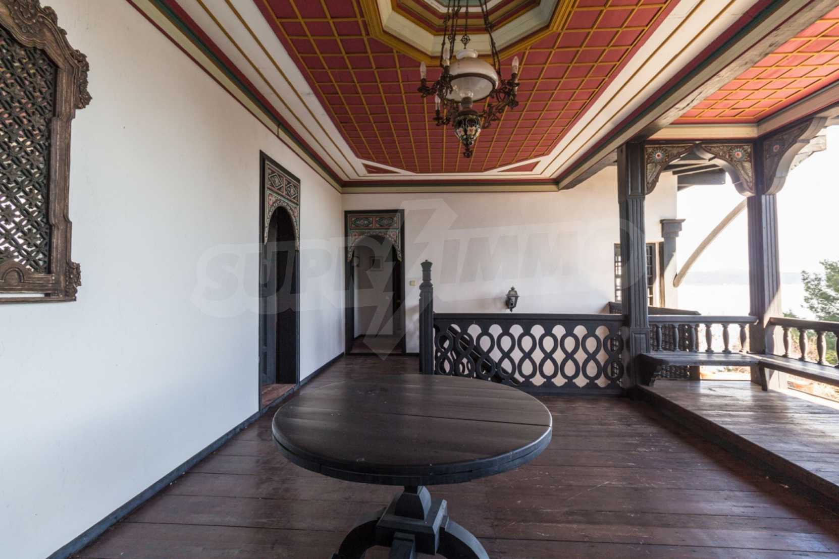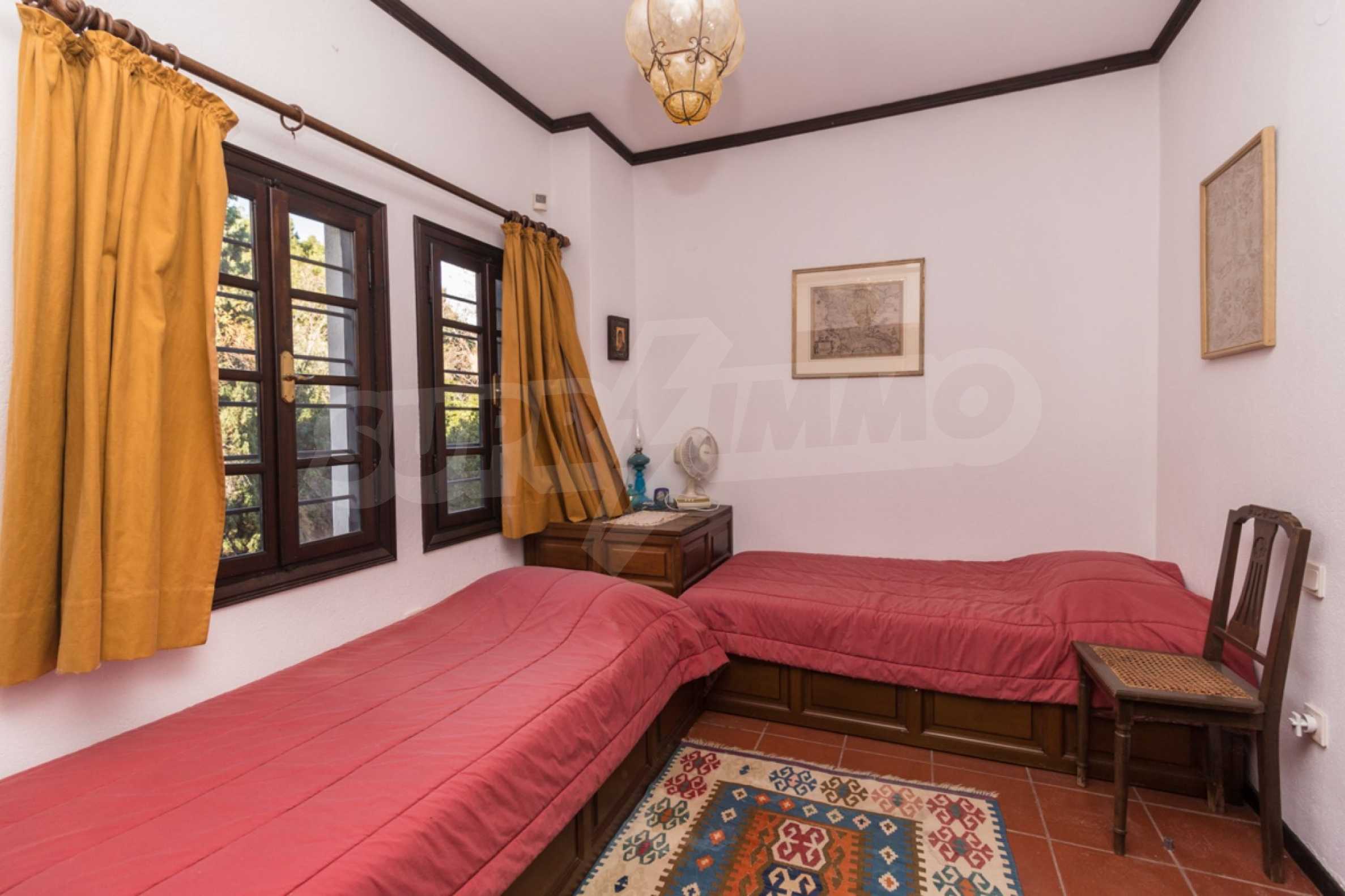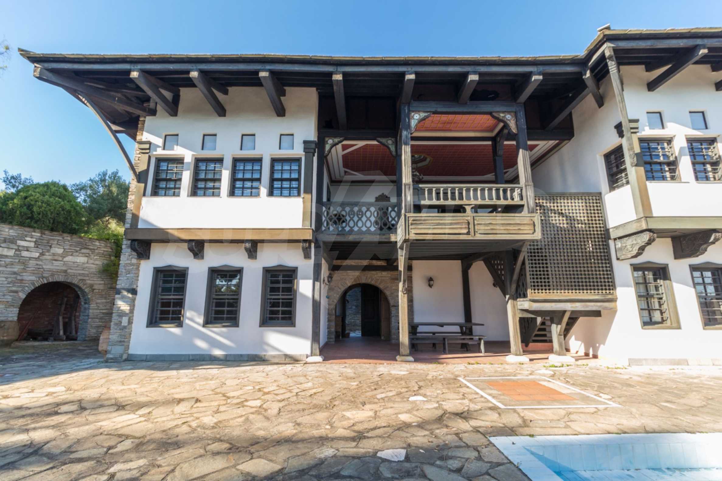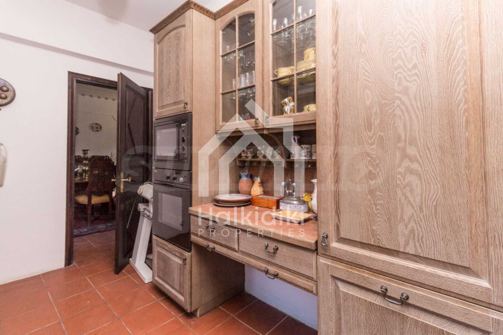 Unique,stone-built villa,400 m²,in Sithonia,Halkidiki with an eastern orientation and with unobstructed permanent view of Mount Athos bay .The property is built on a hill and it is surrounded by 4.350m² pine-covered area.The villa is split in three levels,consisted of three living rooms,a spacious kitchen,four bedrooms,four bathrooms,three wc and two storage rooms.The property,also,has big balconies,wooden joinery,drilling, olive grove,barbecue and a kiosk.