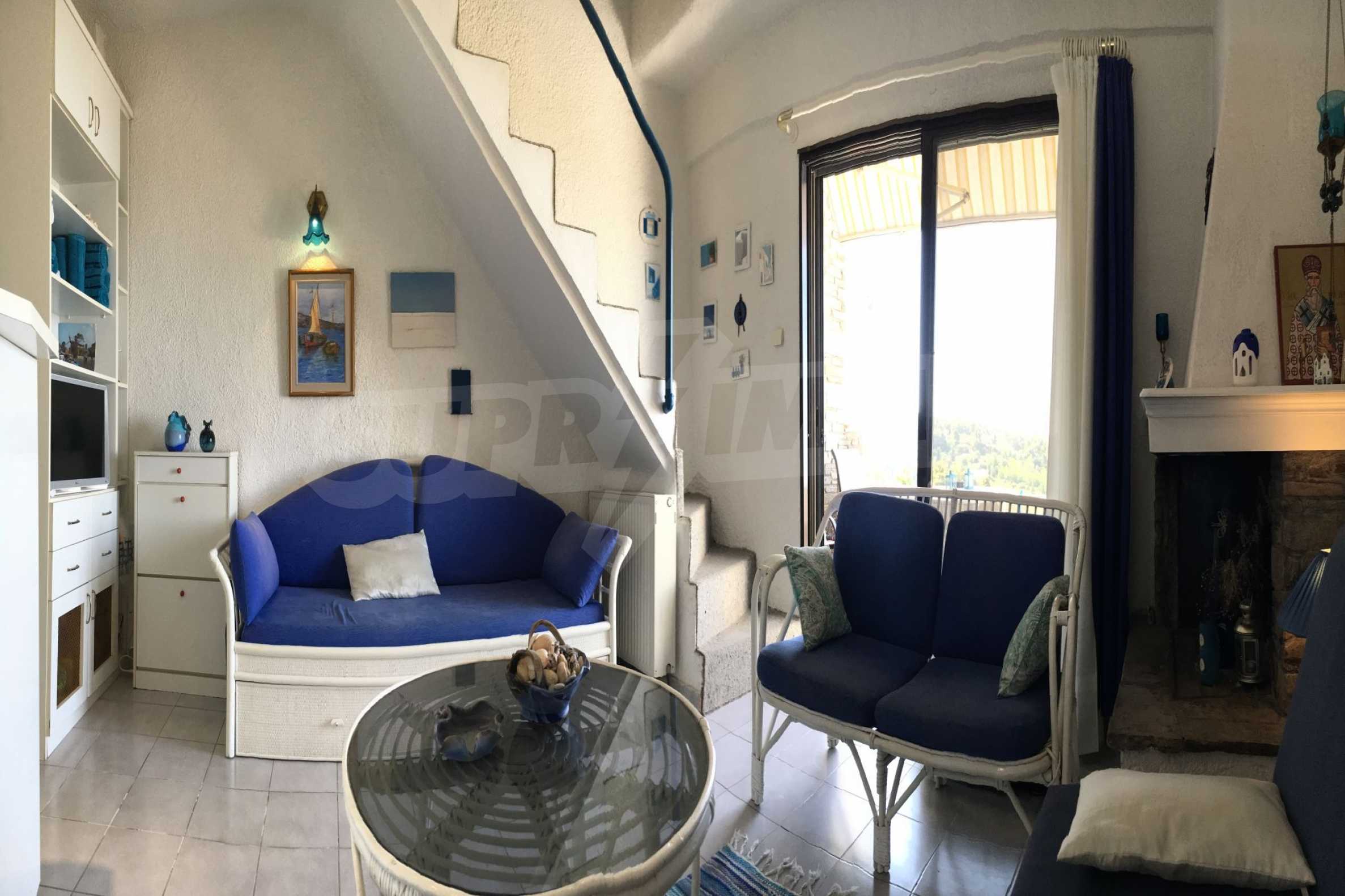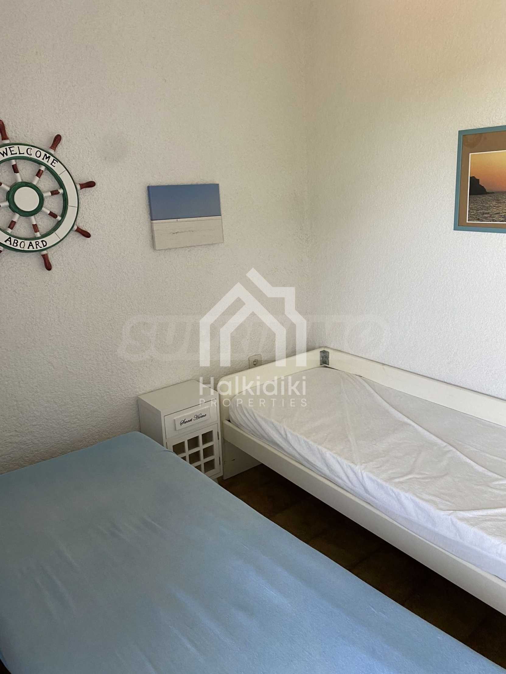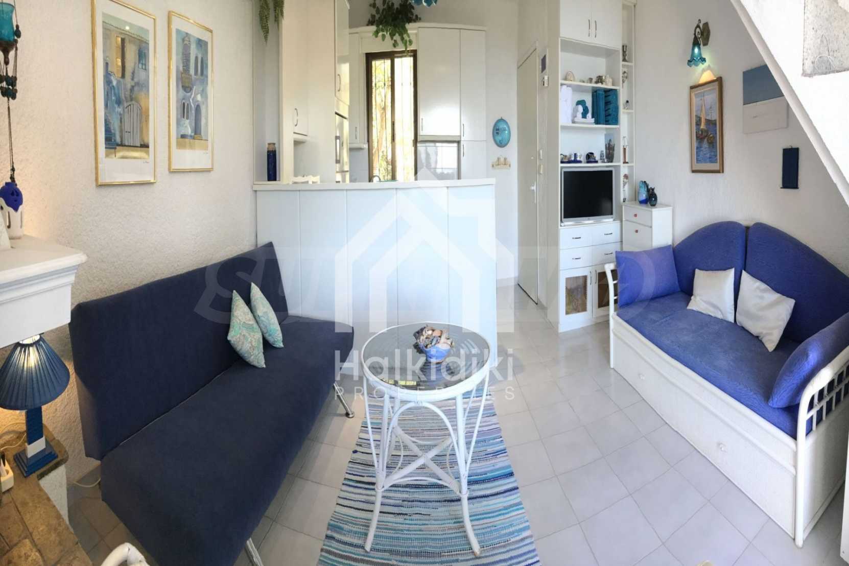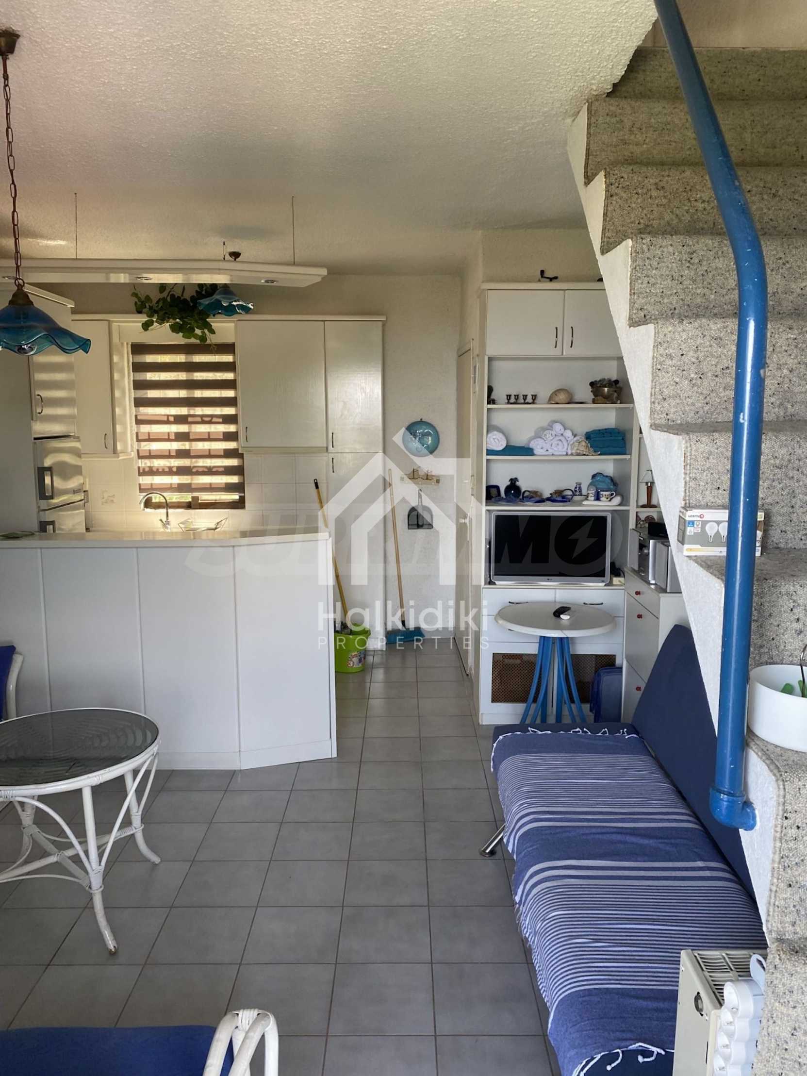 Beautiful maisonette in a complex,100 m²,in Kassandra,Halkidiki with unobstructed permanent sea view.The property is split in three levels,consisted of a living room connected with the kitchen,three bedrooms,two bathrooms and a storage room.The maisonette,also,has aluminum joinery,tile floors,drilling and tents.