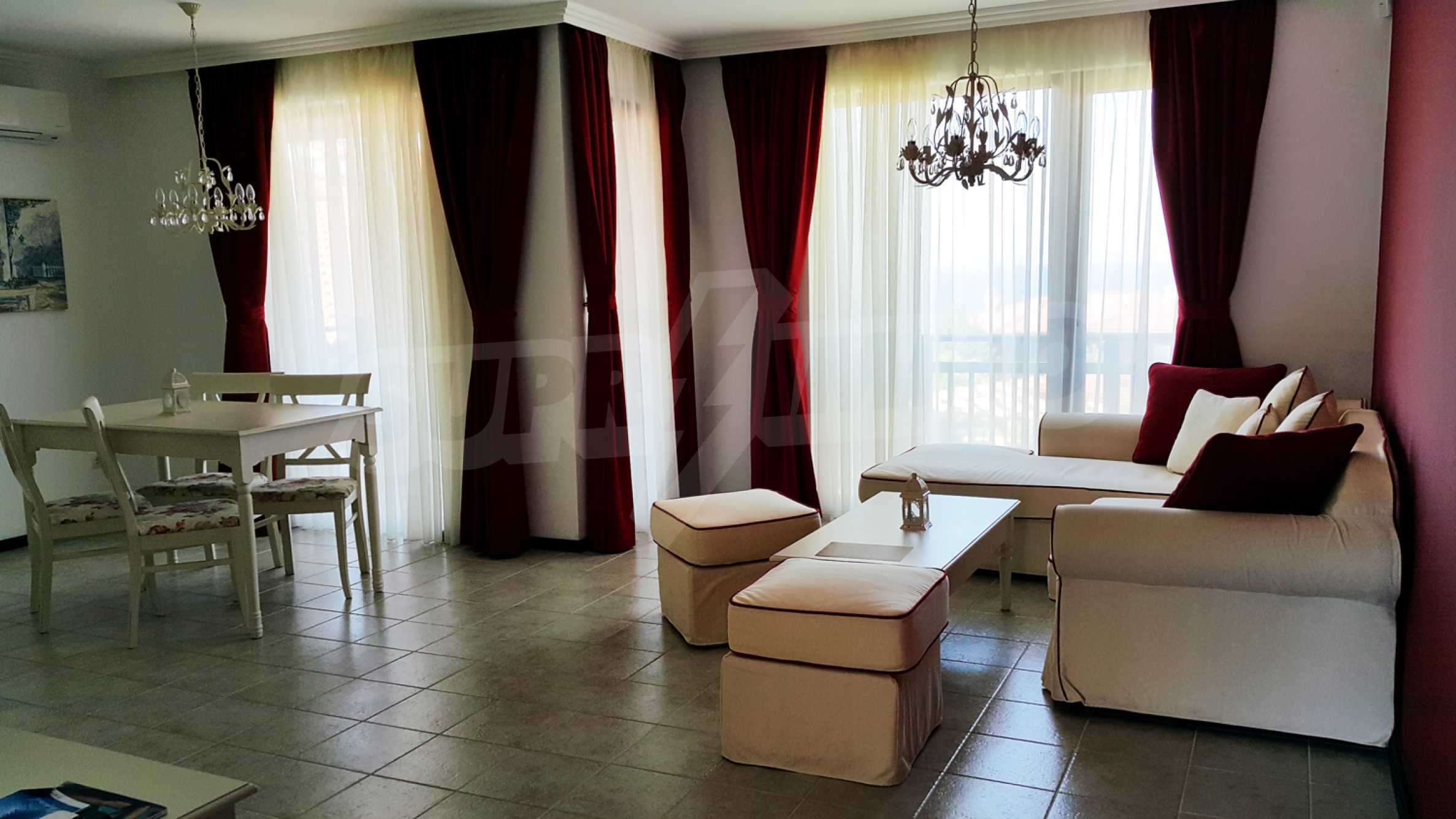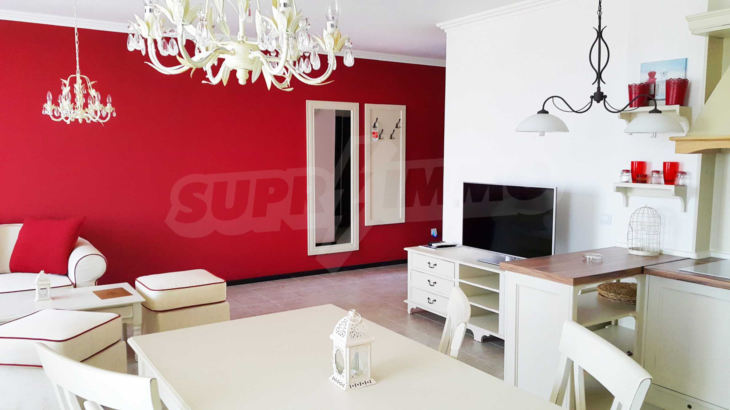 The one-bedroom apartment has a total area of 81.87 m2 and is located on the second floor of a house ¹ 11V, close to the restaurant, the mini market and the main building. The property is fully furnished and equipped. The comfortable apartment consists of a living room with kitchen and dining area, a bedroom, a bathroom and a terrace overlooking the complex, the city and the sea.