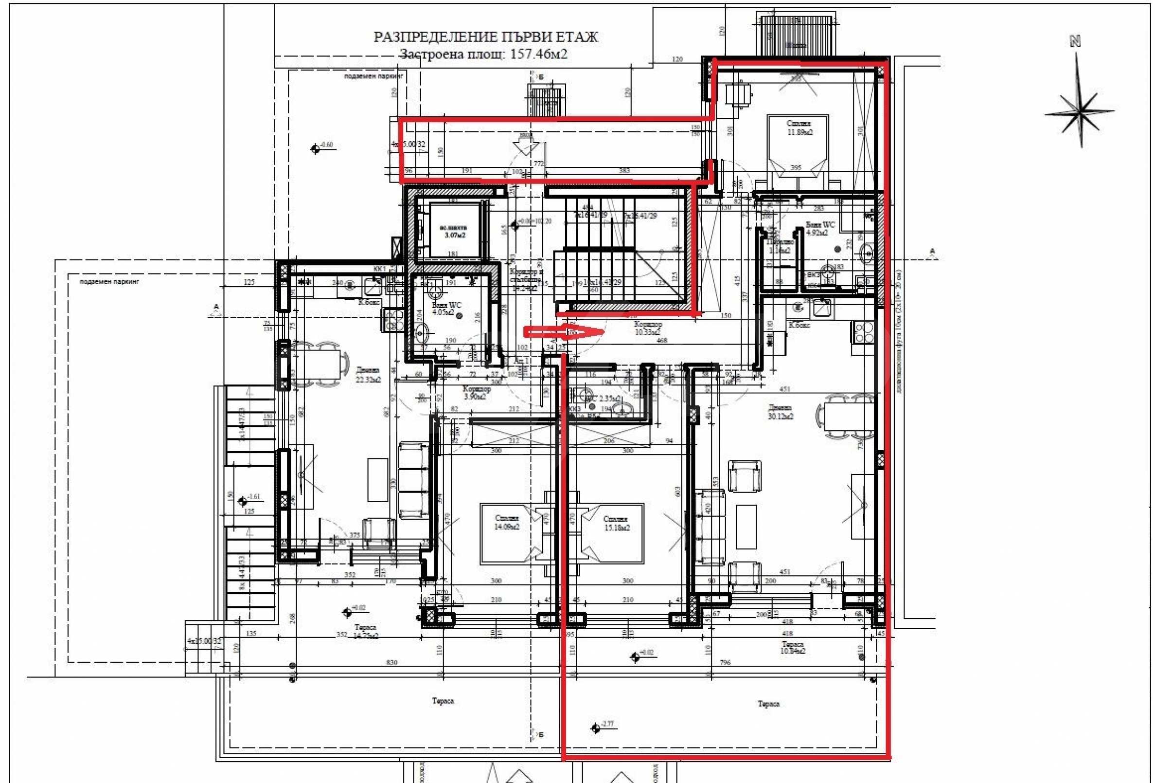 On a net area of 100 m2 are situated: living room 30 m2, two bedrooms respectively 15 m2 and 12 m2, combined bathroom, closet, L-shaped corridor. From the living room and one bedroom there is an access to a spacious terrace with unseen sea views.