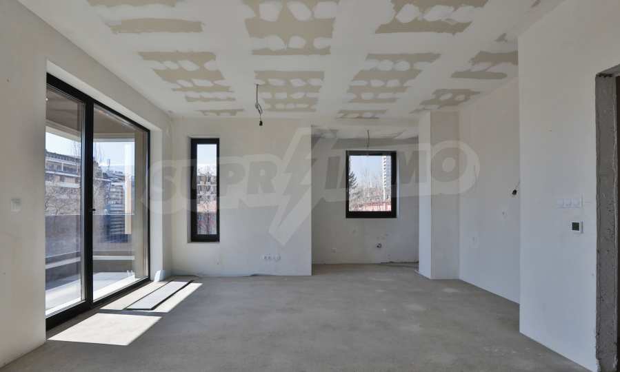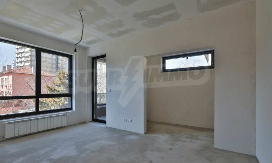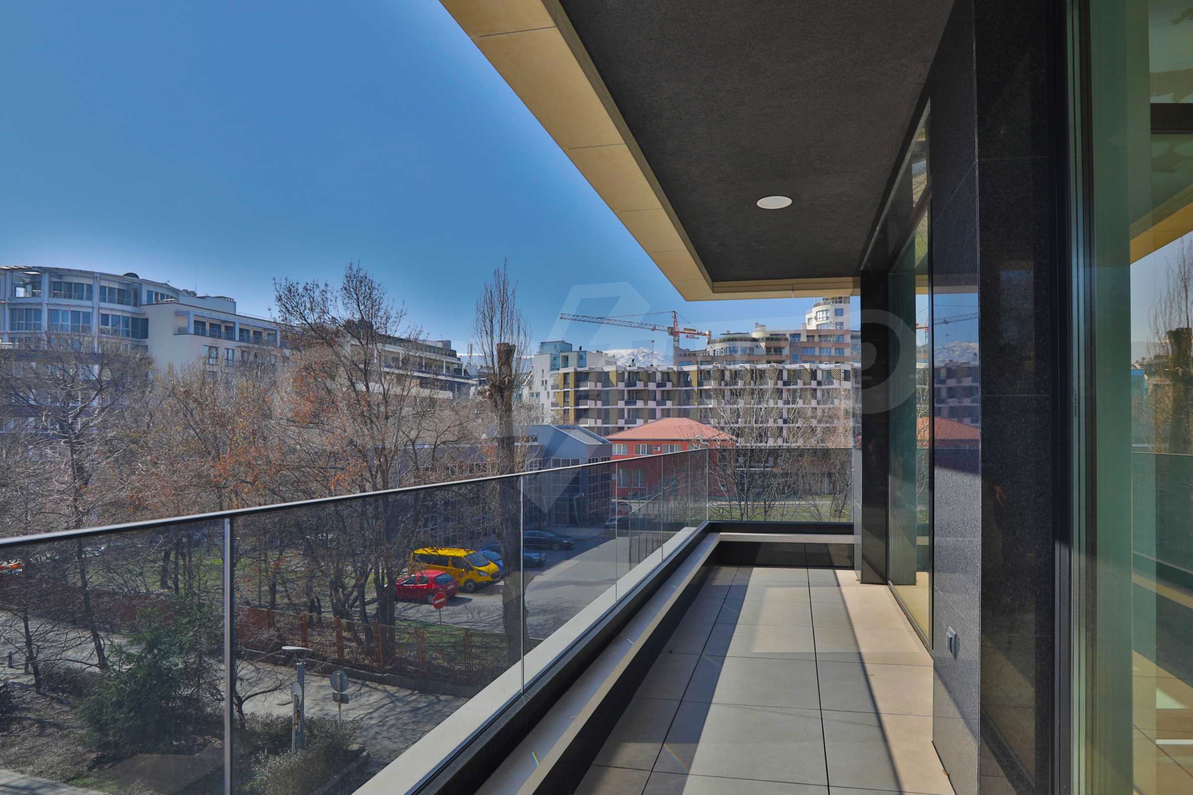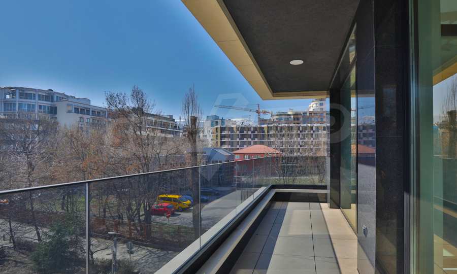 The apartment has an area of 157.67 m2., as the common parts are 22.43 m2. The layout is functional and consists of a living room with a kitchen area, a bedroom with a private bathroom, a bedroom with a closet and an exit to a balcony, a guest toilet and a storage room. It facilities beautiful panoramic views of Vitosha Mountain and the city. The building is made by a builder with many high-class buildings.