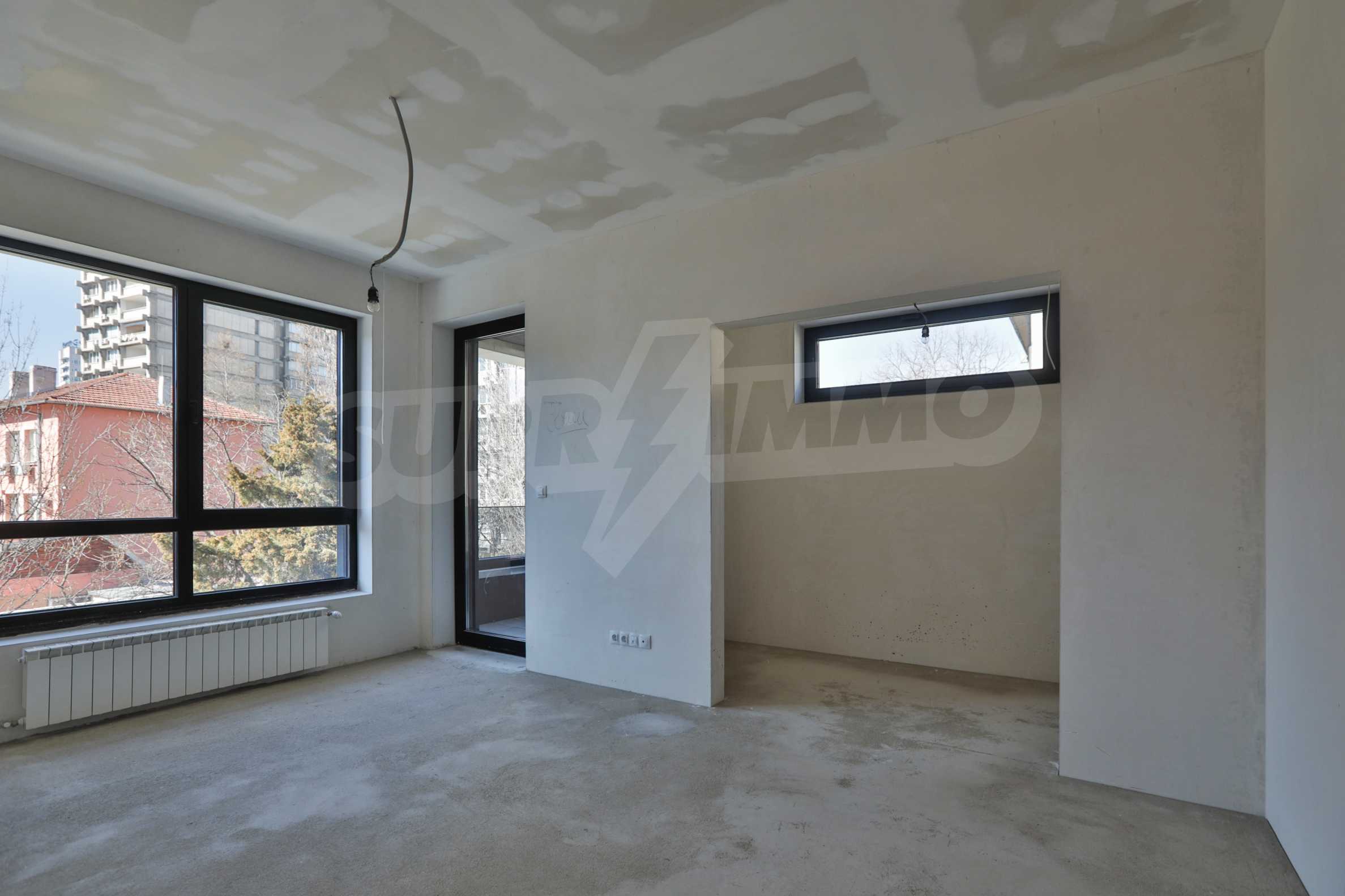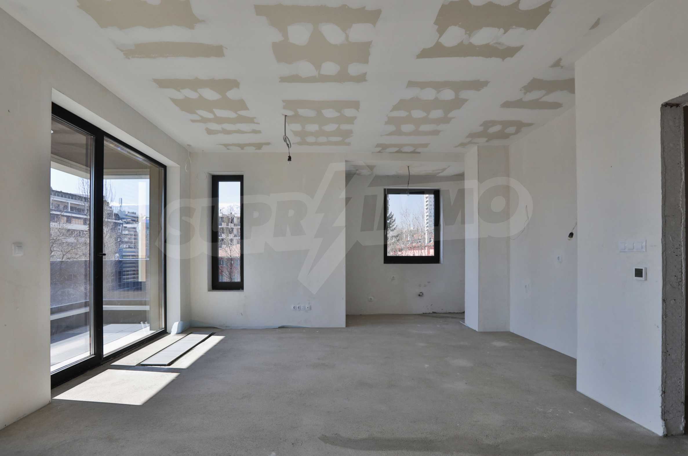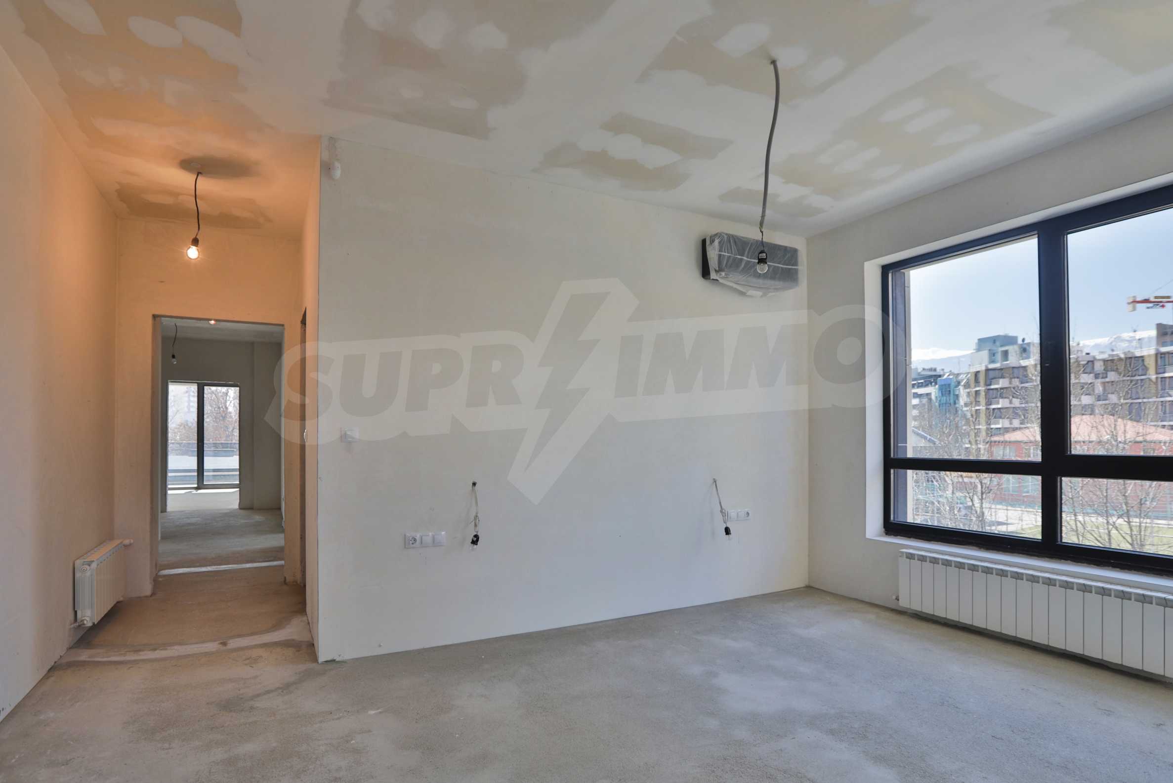 The apartment has an area of 157.67 m2., as the common parts are 22.43 m2. The layout is functional and consists of a living room with a kitchen area, a bedroom with a private bathroom, a bedroom with a closet and an exit to a balcony, a guest toilet and a storage room. It facilities beautiful panoramic views of Vitosha Mountain and the city. The building is made by a builder with many high-class buildings.