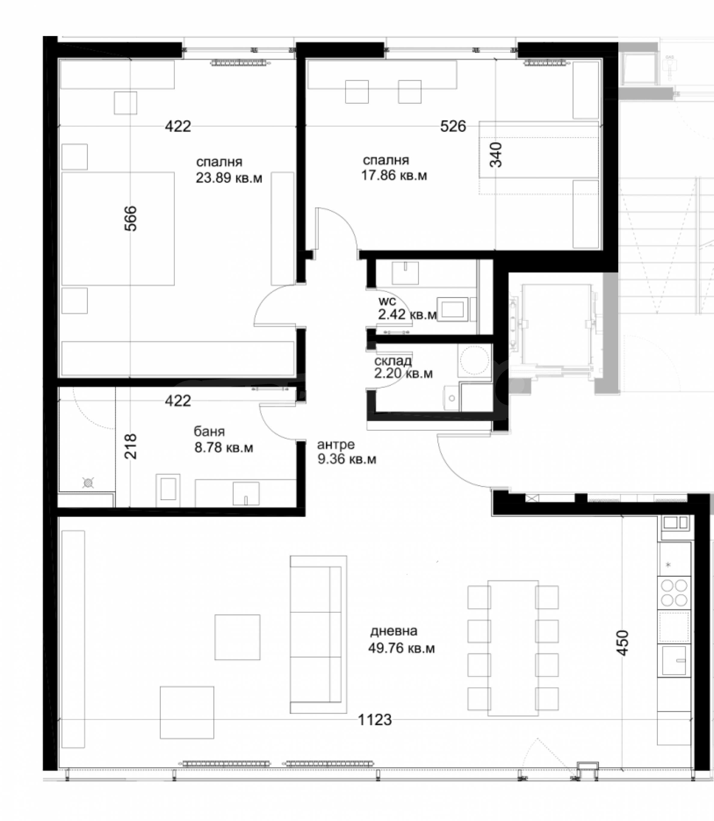 The apartment has a total area of 131 m2, the premises are bright and spacious and the distribution is as follows: