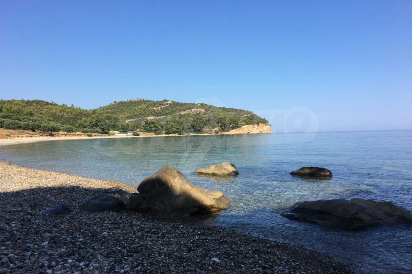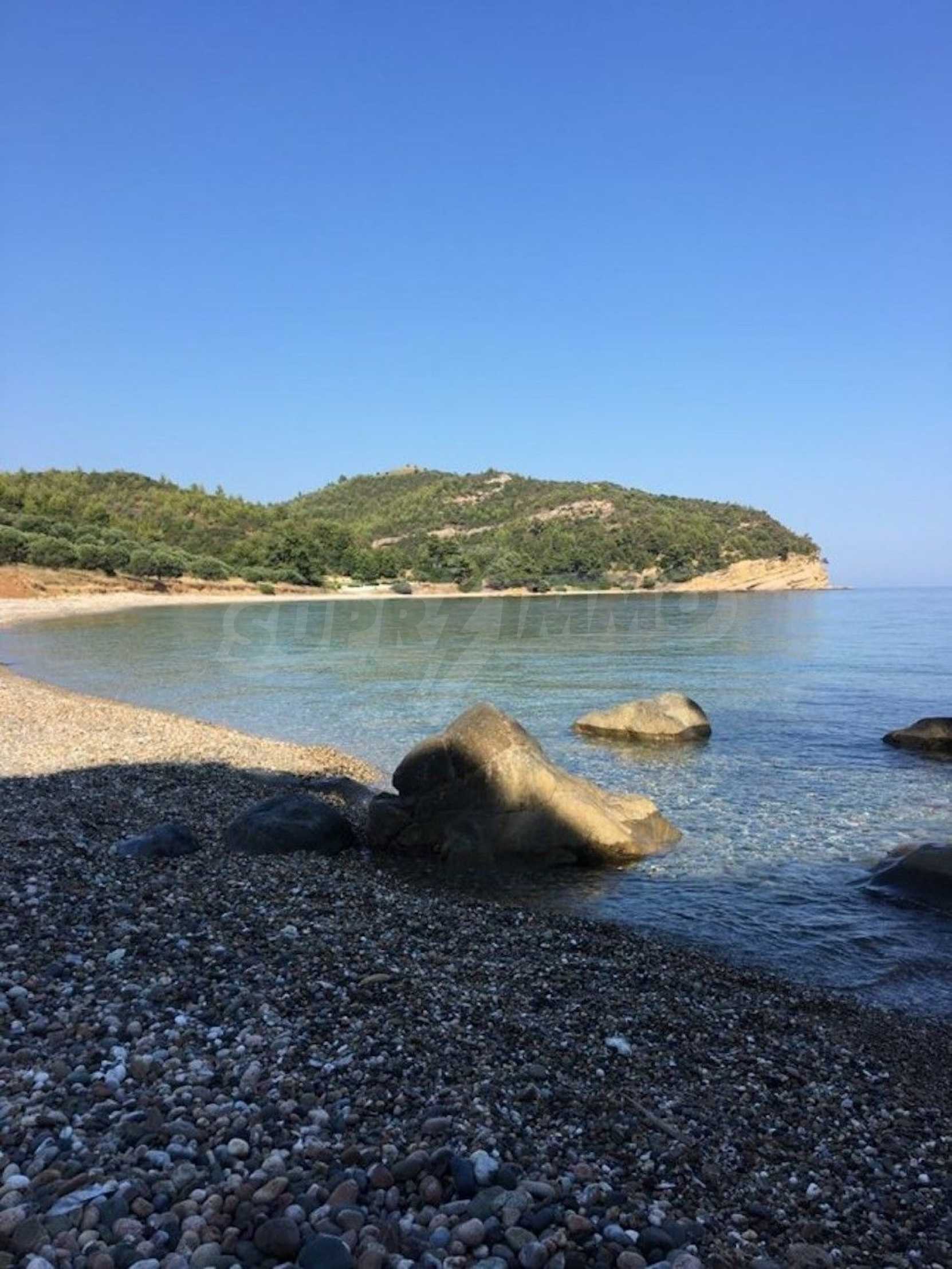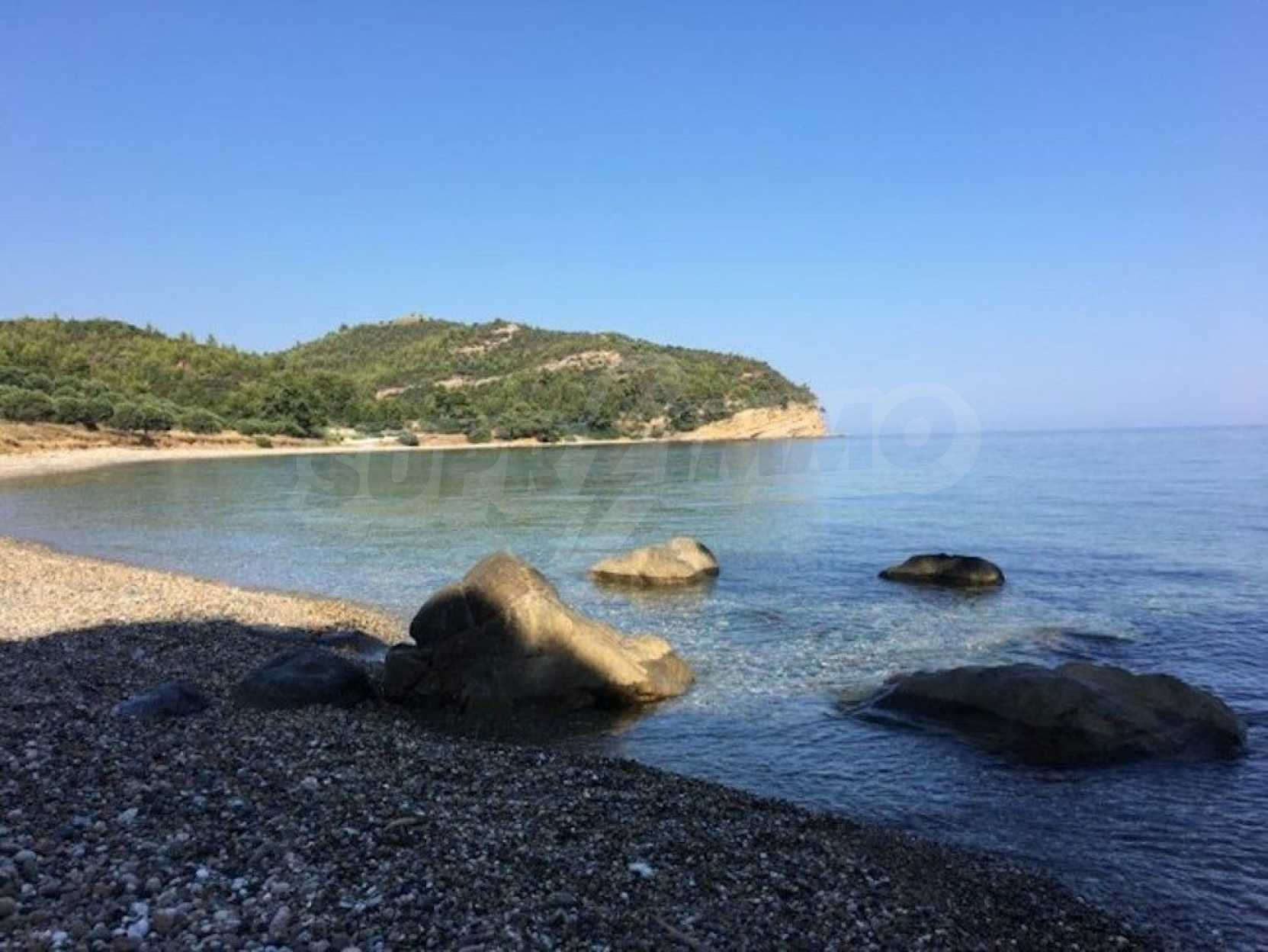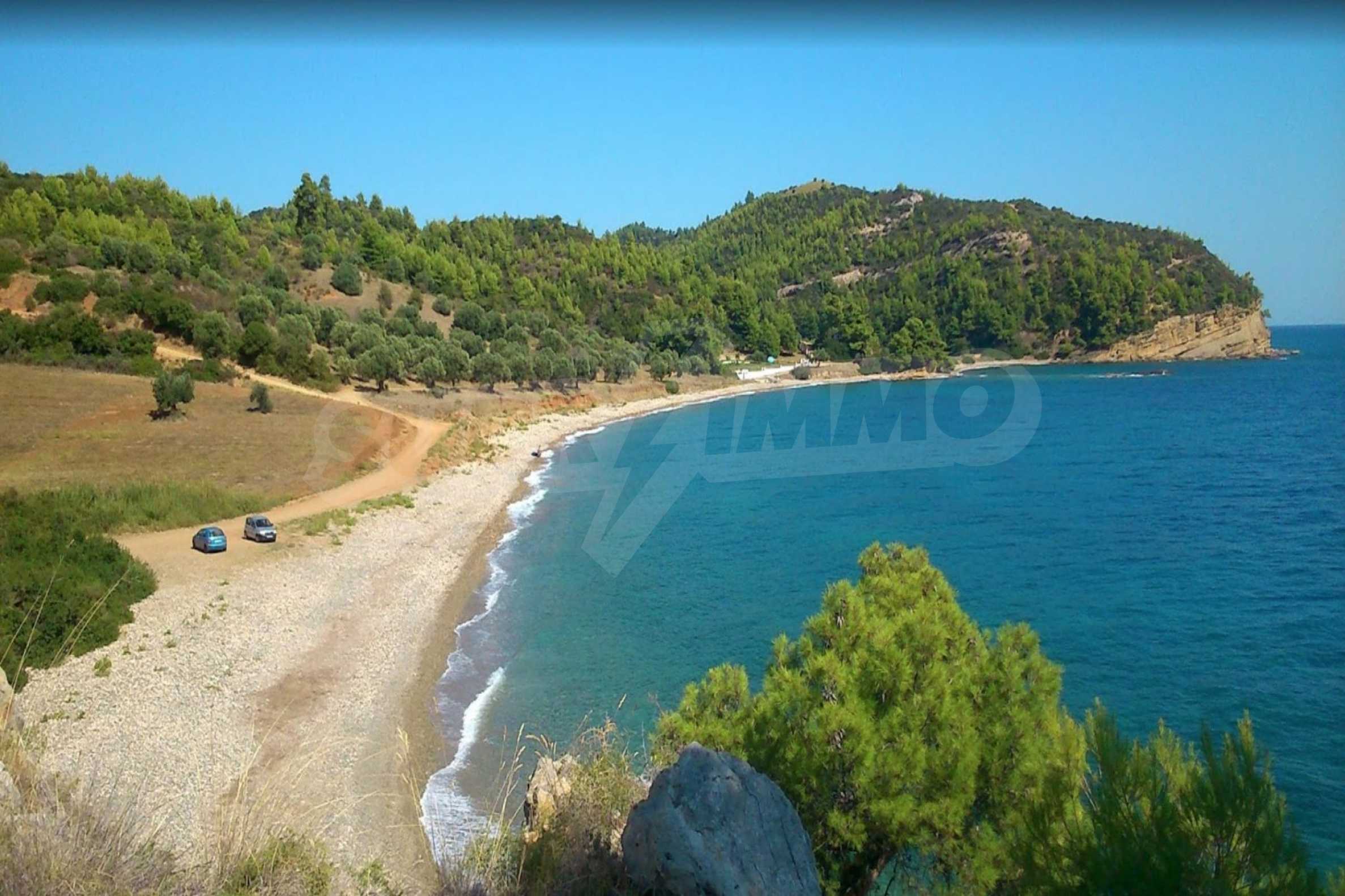 Field, Kassandra, 8163 m², sea view, open view, Sandy beach, Amphitheatrical, Unobstructed permanent view, Western orientation, Outside the village, Flat, Close to the sea, Southern orientation, Panoramic, Beachfront property, Natural beauty, Forested, Olive field inside, Complete - Buildable, Perfect for house building, Perfect for commercial usage, Perfect for villa building
