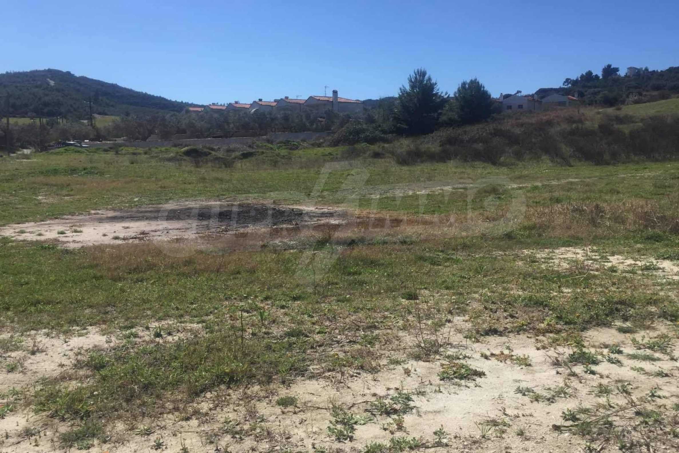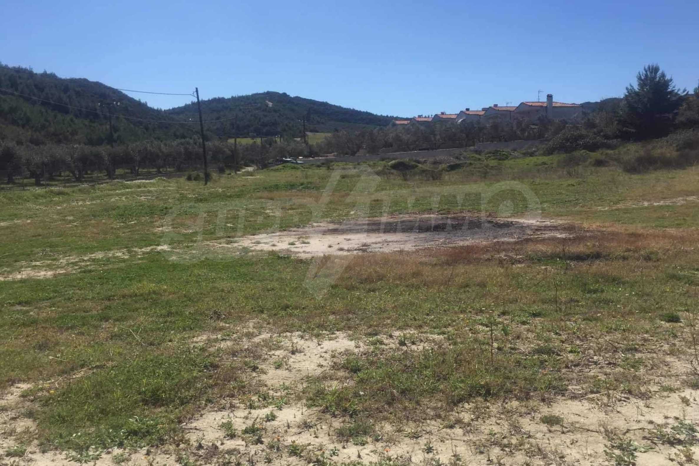 Corner,flat field,4.000 m² ,in Kassandra, Halkidiki with a southern orientation and with exceptional natural beauty. The property is located outside the village, faces the road and it is complete and buildable. The field is 3200 meters away from a sandy beach and 2300 meters away from the center of the village. It is perfect for the construction of a villa or detached houses and it is perfect for professional usage.