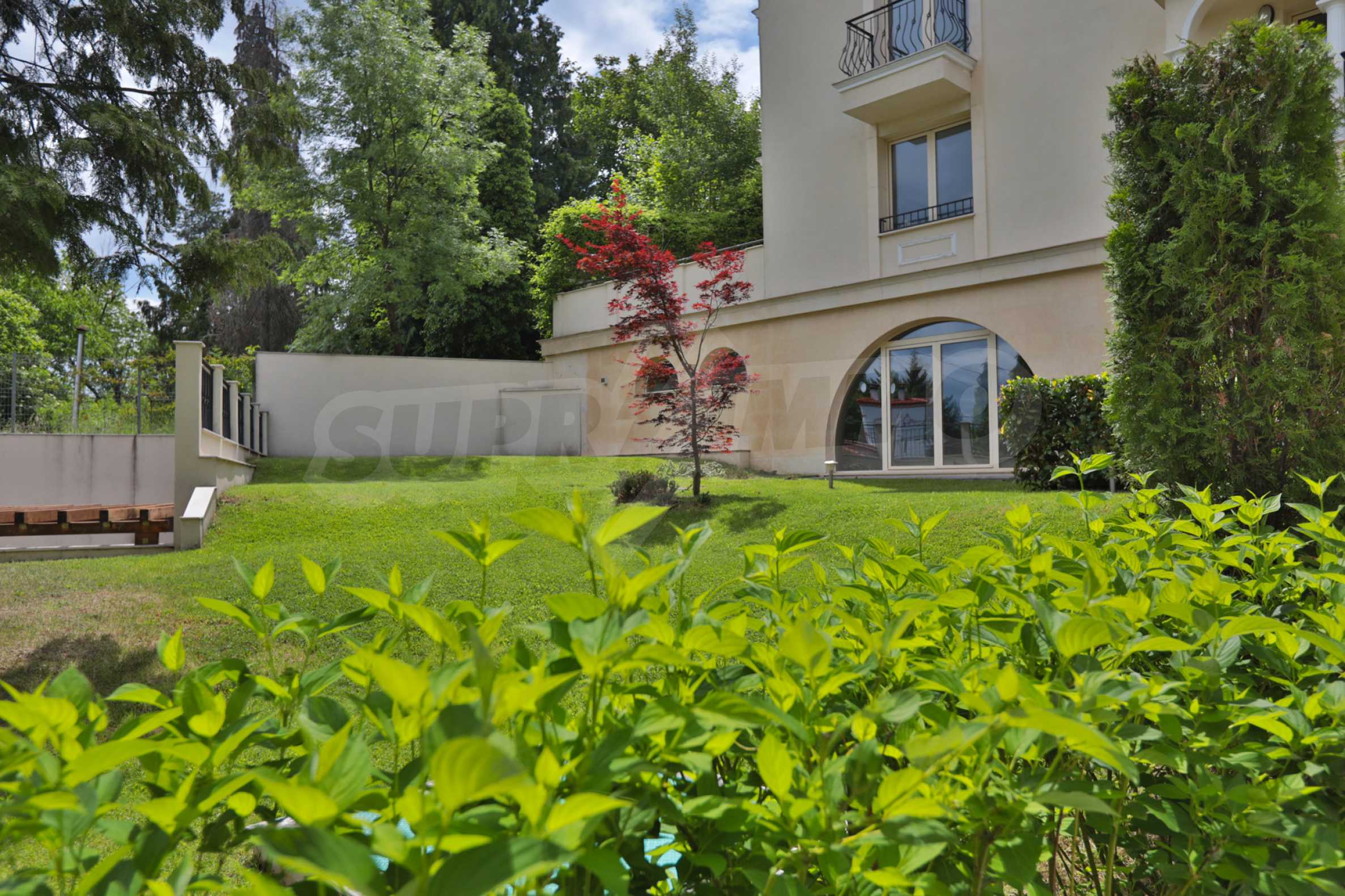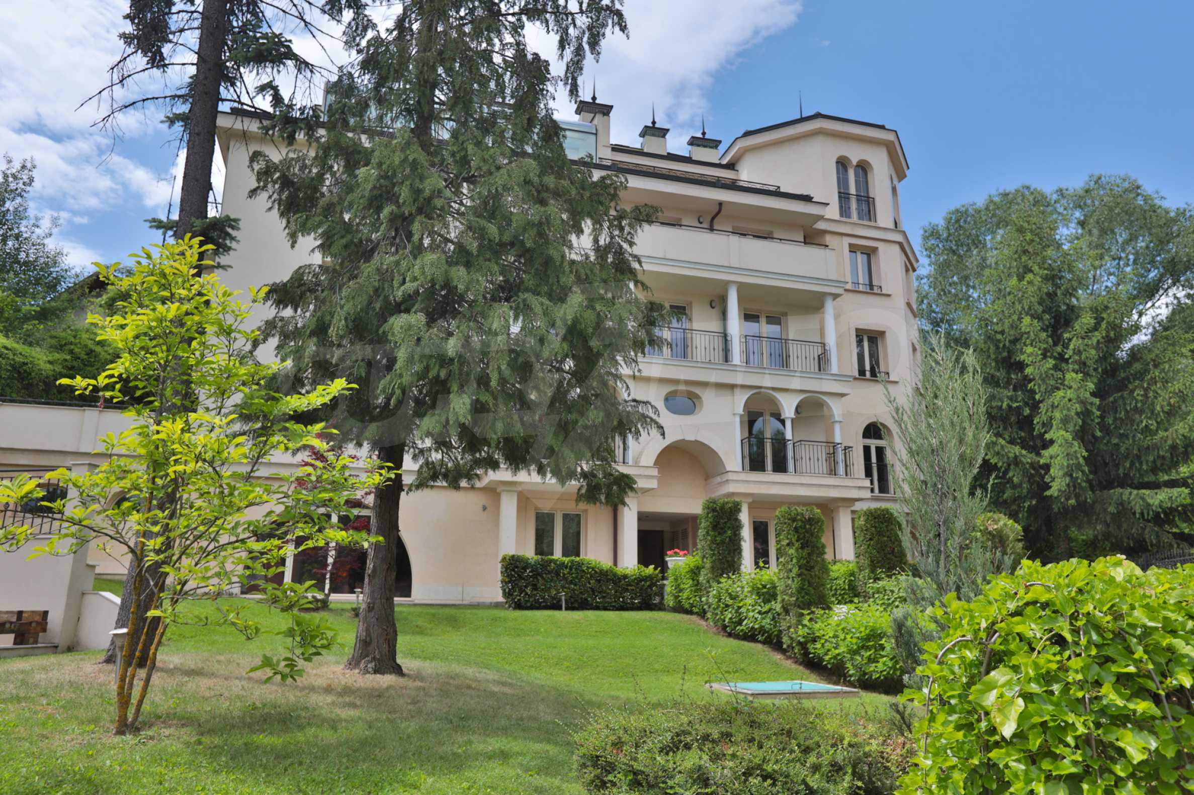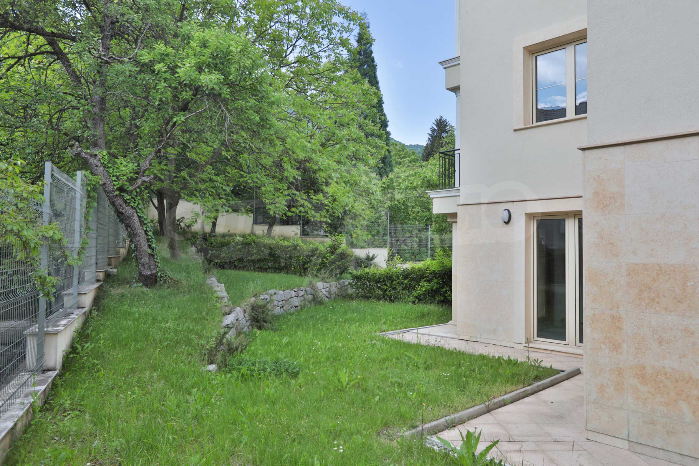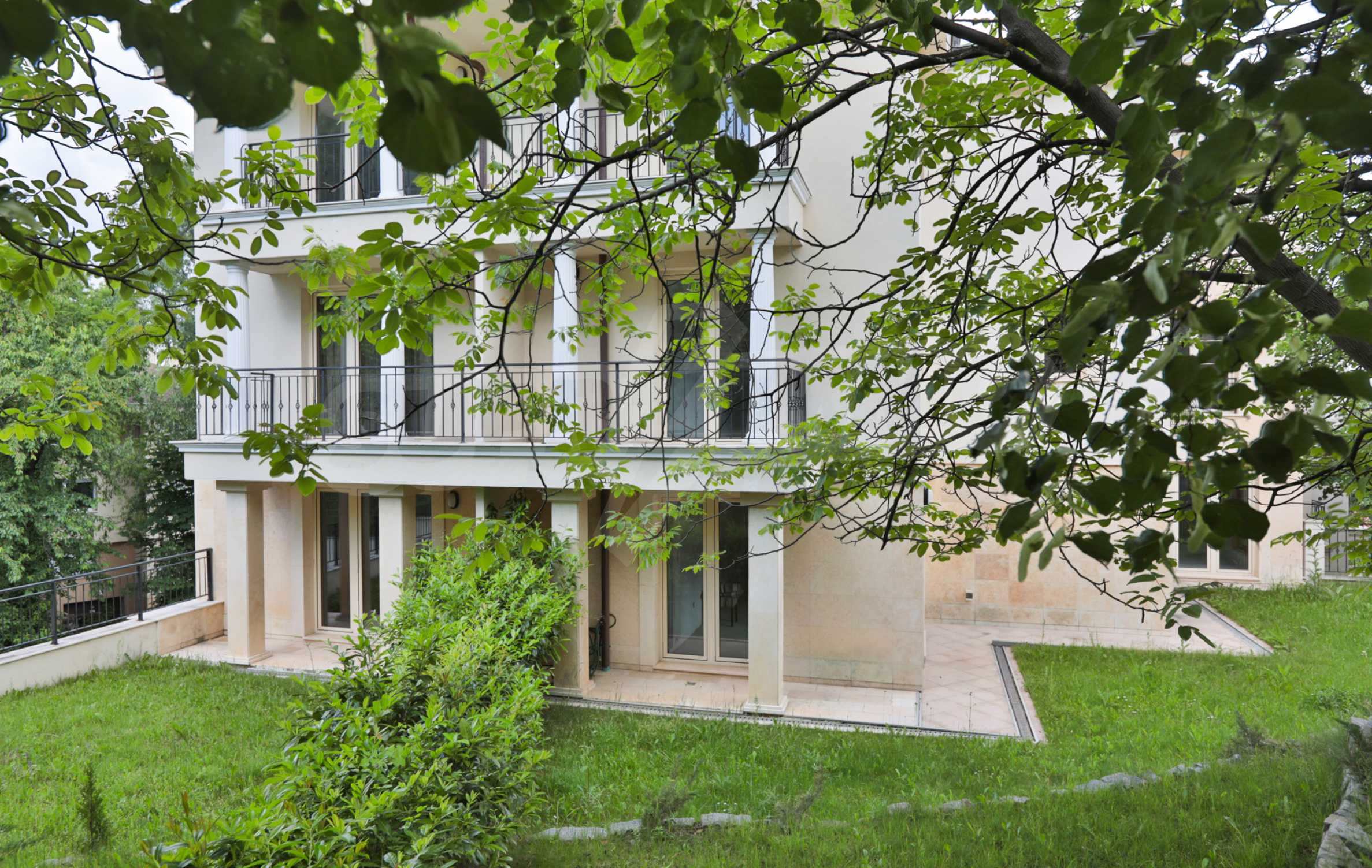 The building is nestled at the foot of Vitosha Mountain, in an area with single-family houses and small residential buildings, and is distinguished by its elegant vision, which is a combination of luxury and classics. And its lush garden seems to have come out of fairy tales - green spaces, evergreen vegetation and trees, providing tempting shade during the warm summer days.
