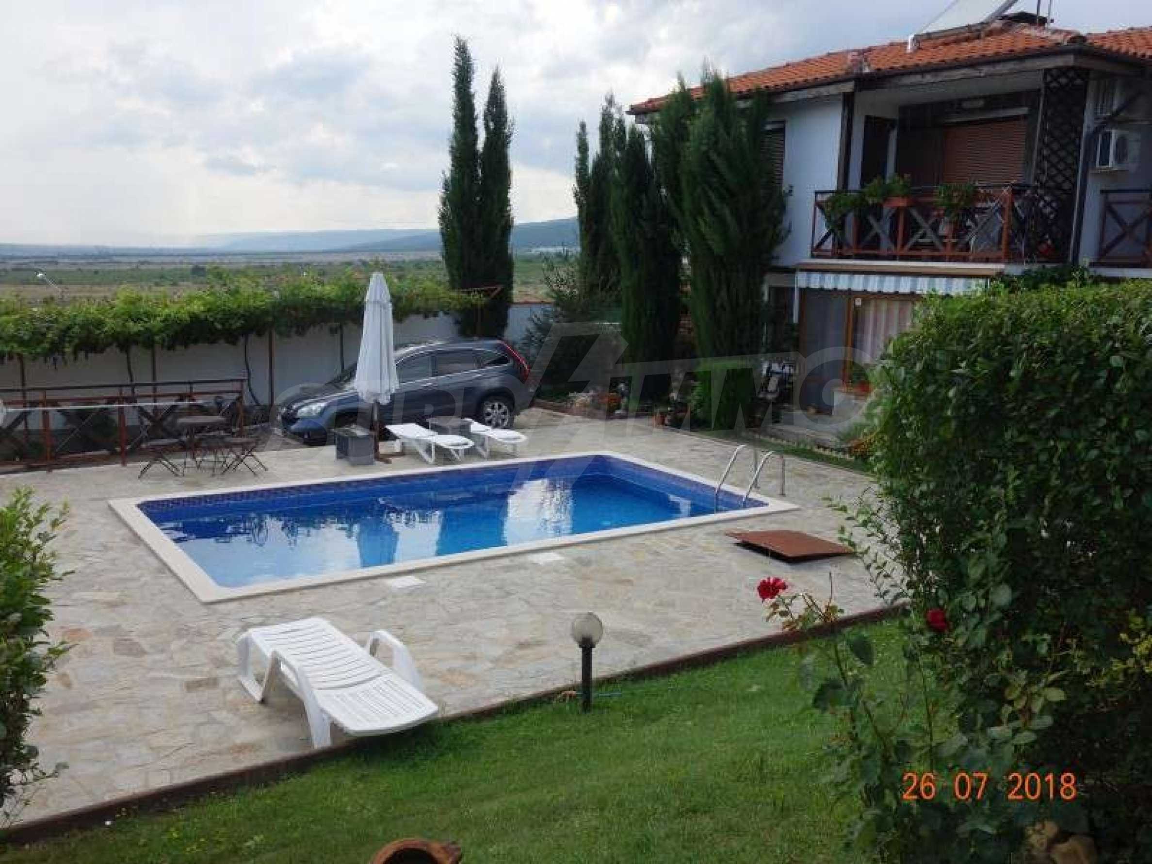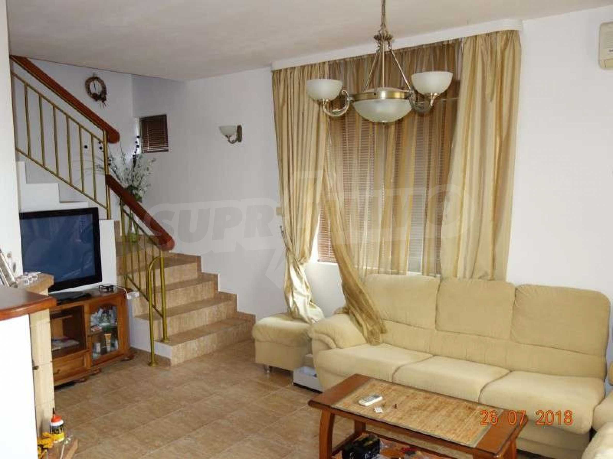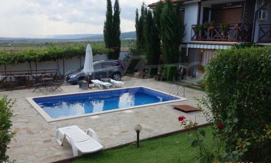 We are selling a fully furnished and equipped house in the villa zone of Kosharitsa village, Cholakova cheshma area. The two-storey house consists of: a living-room, a kitchenette, a toilet and a wet room on the first floor, two bedrooms, a toilet with a shower and a terrace on the second floor. The house is heated by a fireplace with air ducts. There are also air-conditioners. Suitable for year-round living. The territory of the 4 twin houses is fenced, there is a swimming pool and a parking place.