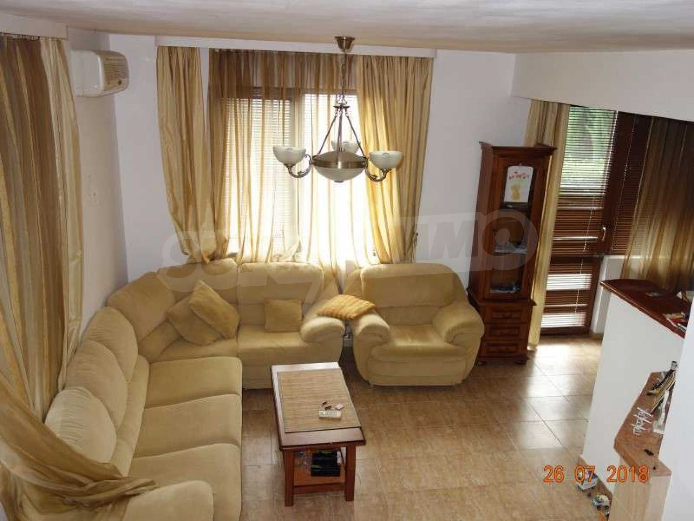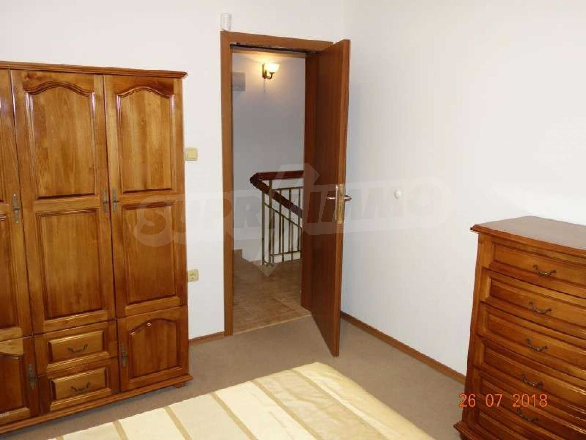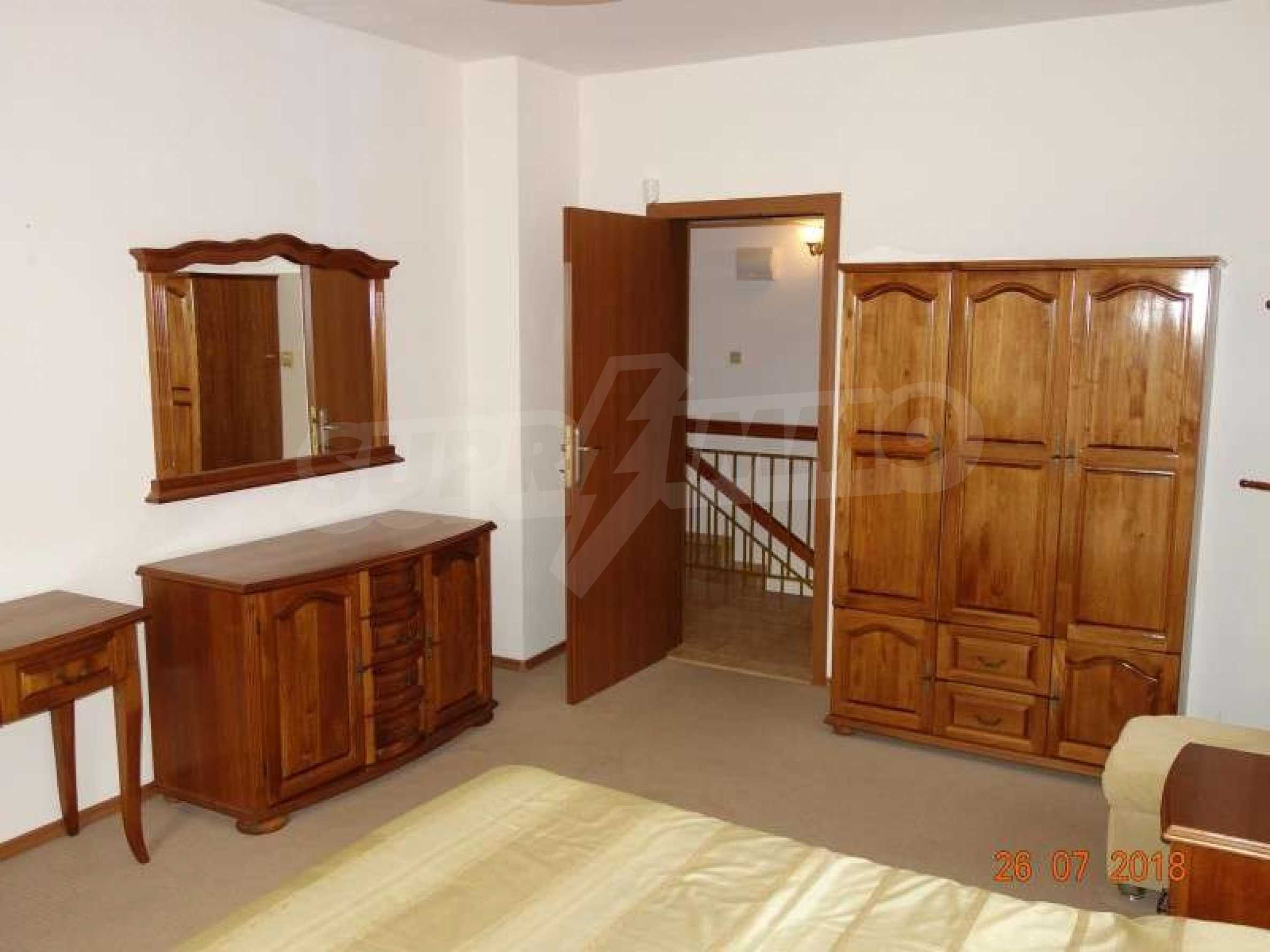 We are selling a fully furnished and equipped house in the villa zone of Kosharitsa village, Cholakova cheshma area. The two-storey house consists of: a living-room, a kitchenette, a toilet and a wet room on the first floor, two bedrooms, a toilet with a shower and a terrace on the second floor. The house is heated by a fireplace with air ducts. There are also air-conditioners. Suitable for year-round living. The territory of the 4 twin houses is fenced, there is a swimming pool and a parking place.