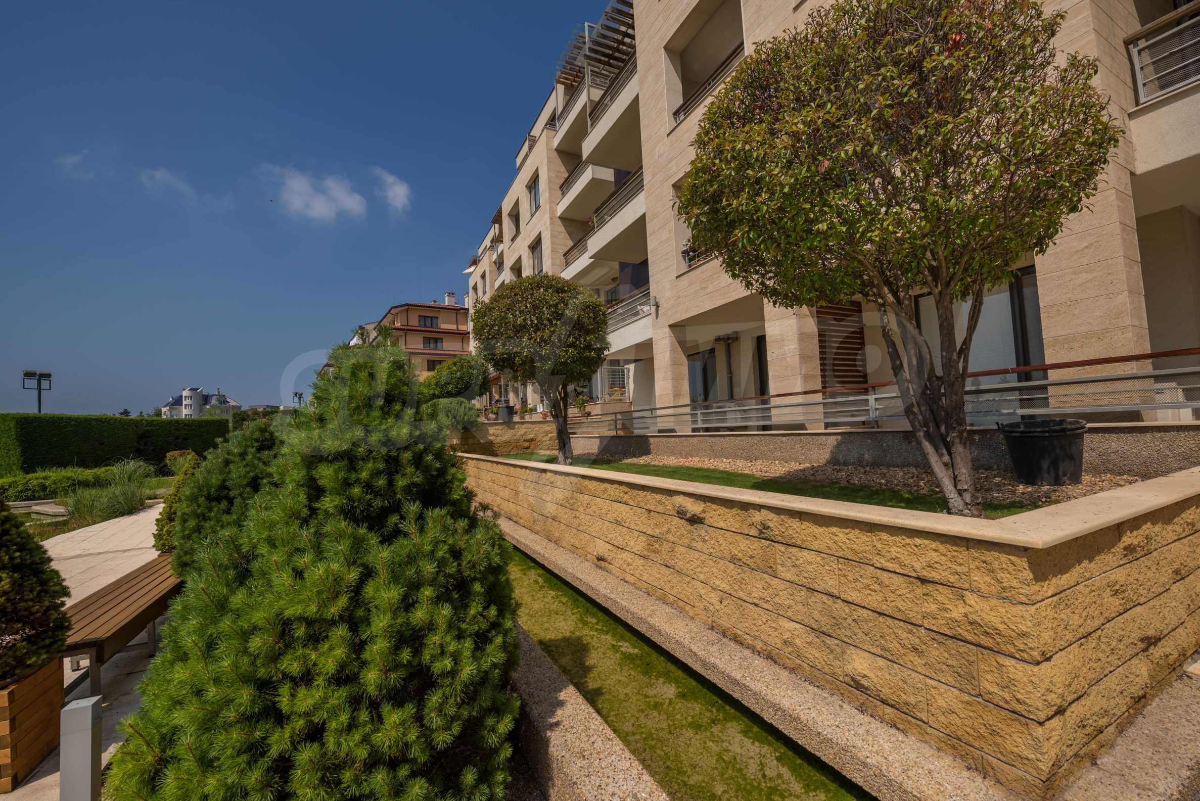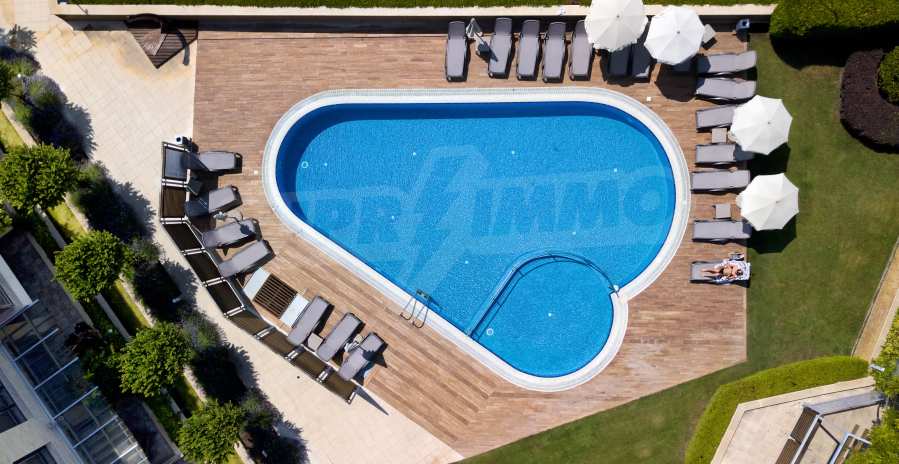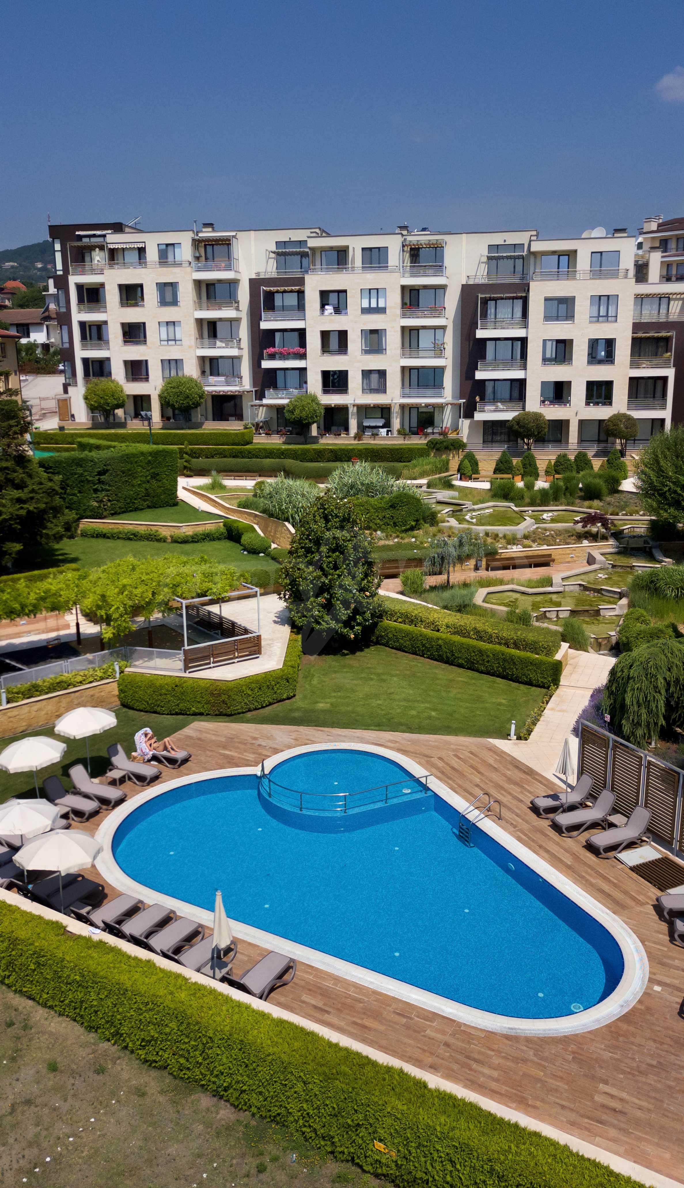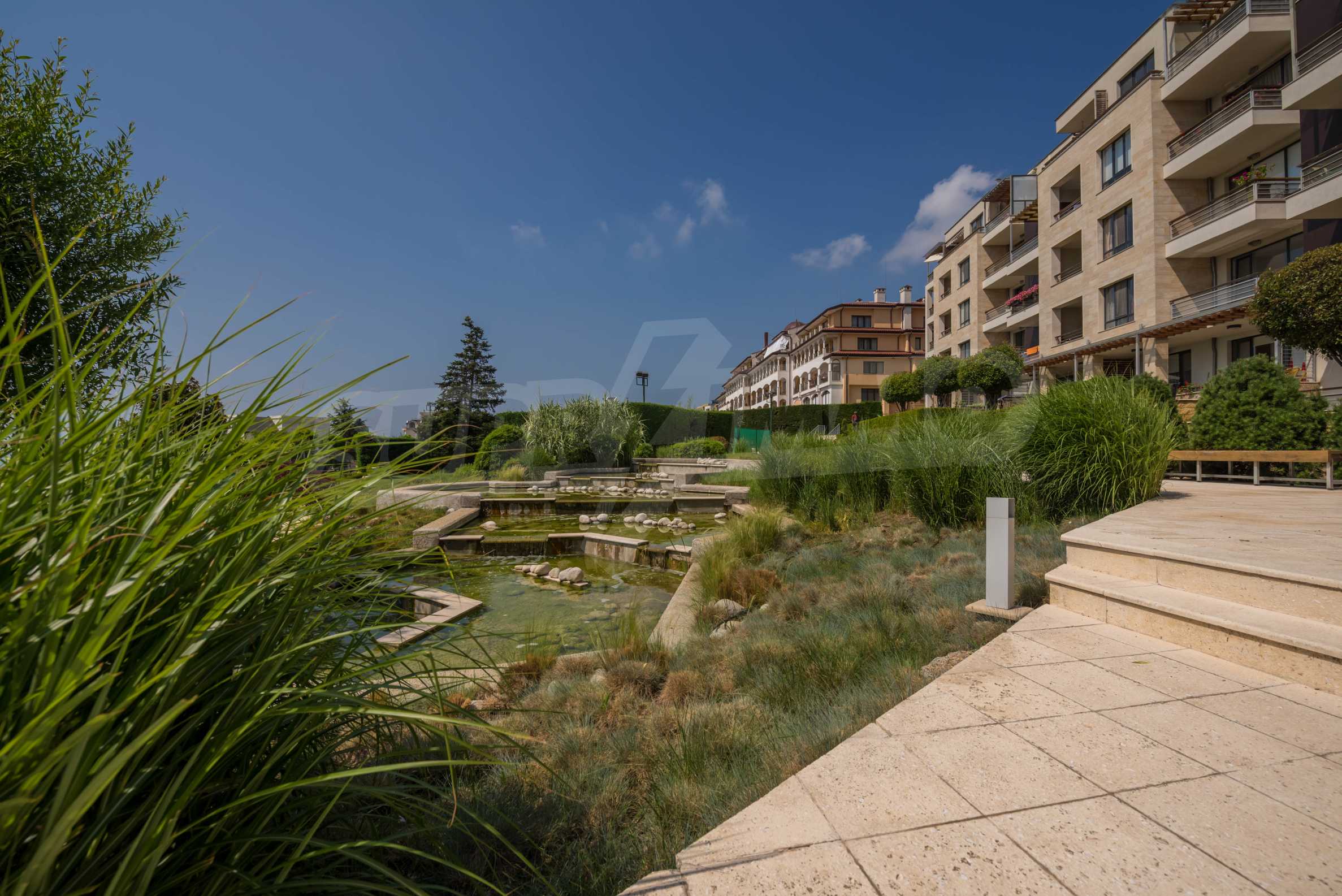 The area has convenient communications and excellent natural resources. The complex offers a frontal sea view. The area of the land is 9 500 m2., of which only 1600 m2. The rest of the territory is richly landscaped, there is an artificial lake, alleys, sports and recreation areas, a playground and a swimming pool. Three separate blocks have been designed with a total of 7 entrances and 73 apartments from 75 to 145 m2.
