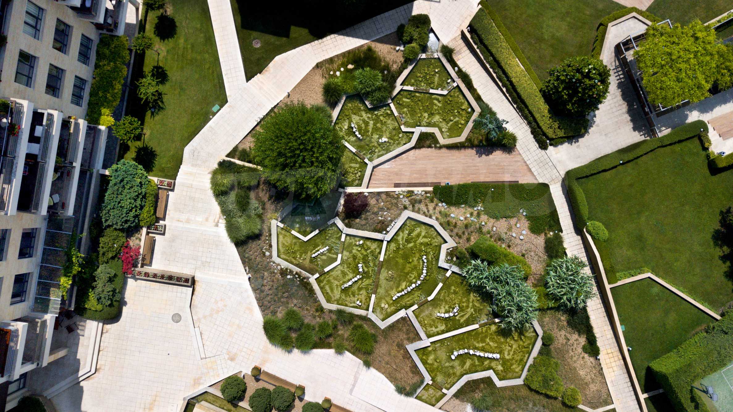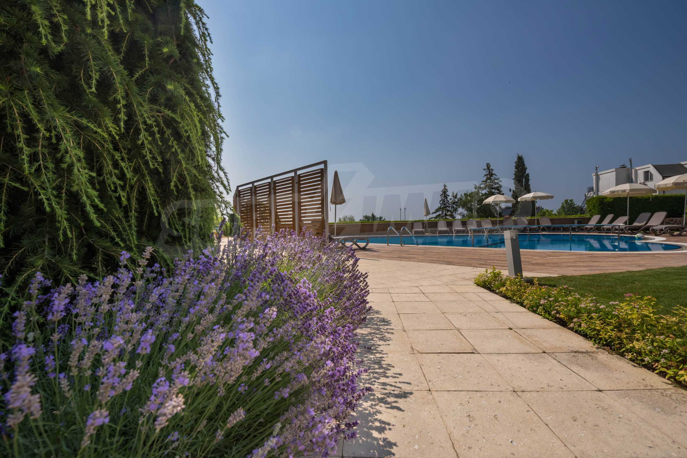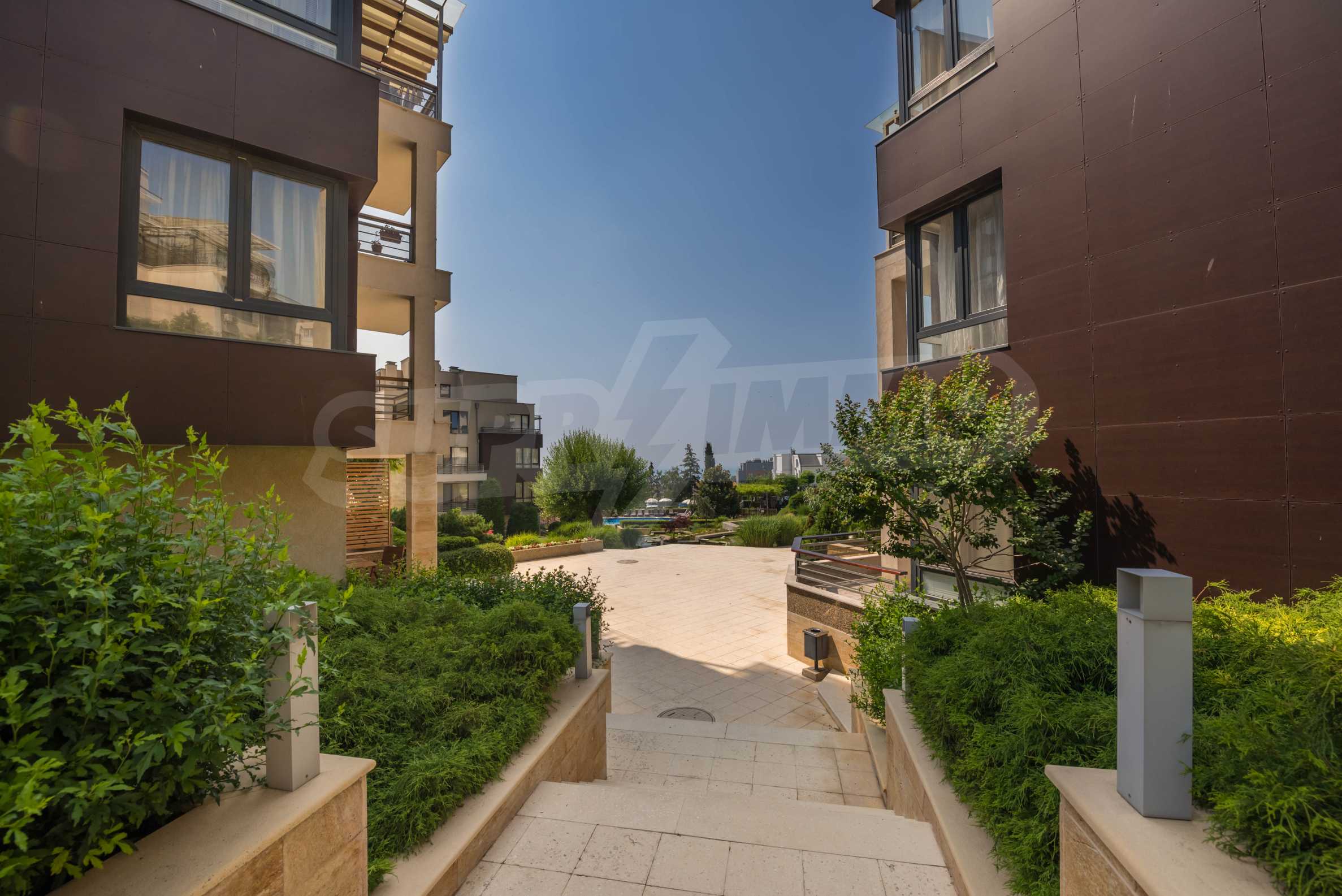 The area has convenient communications and excellent natural resources. The complex offers a frontal sea view. The area of the land is 9 500 m2., of which only 1600 m2. The rest of the territory is richly landscaped, there is an artificial lake, alleys, sports and recreation areas, a playground and a swimming pool. Three separate blocks have been designed with a total of 7 entrances and 73 apartments from 75 to 145 m2.