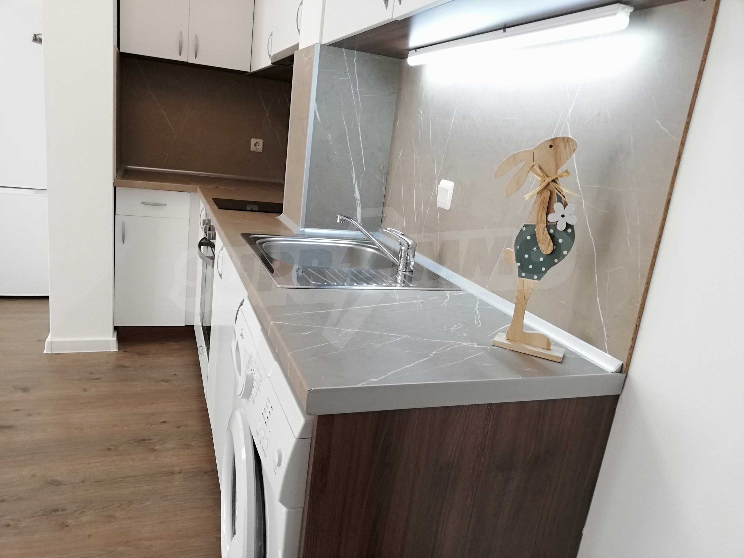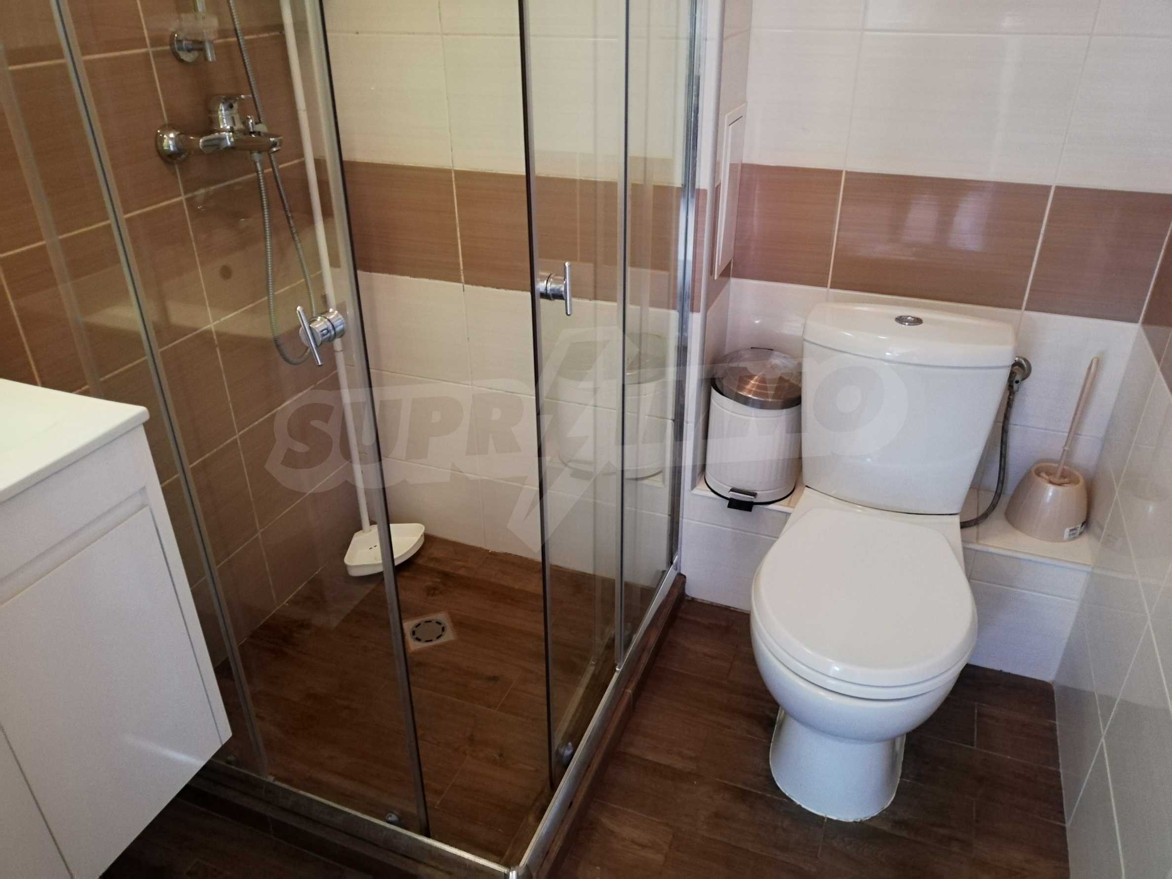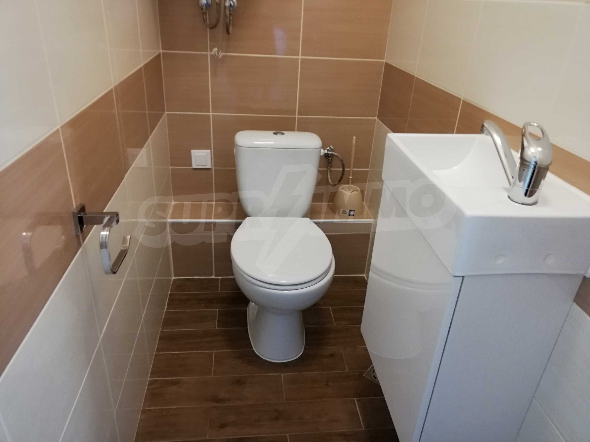 - Fully equipped bathroom: faucets, Bergsee shower system (Hungary), faience and terracotta tiles, Cersanit sanitary ware (Poland), Triano waterproof cabinets (Bulgaria).