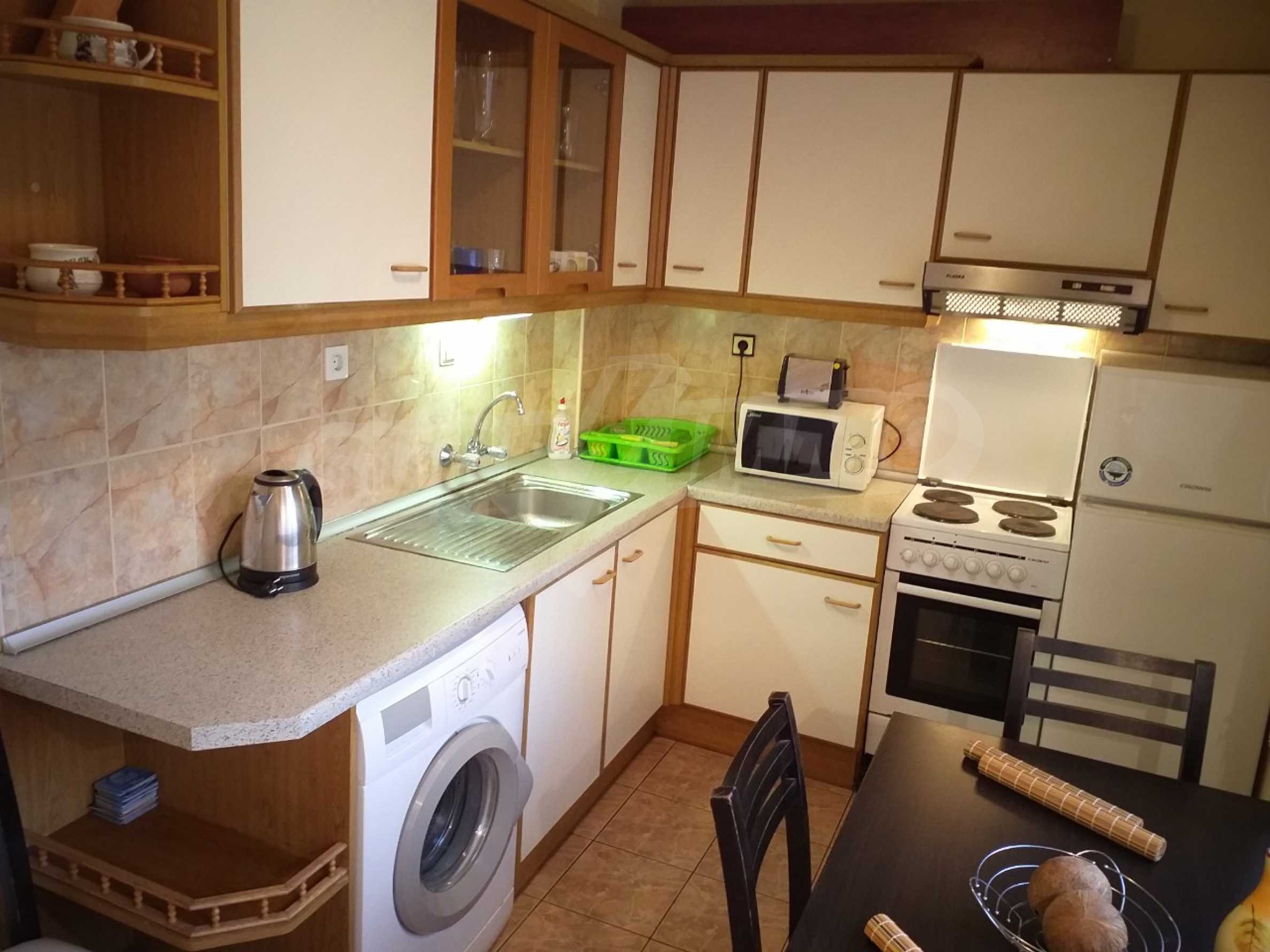 The apartment is fully furnished and equipped, with new furniture, fully equipped kitchen with refrigerator, stove, aspirator, microwave, washing machine and more.