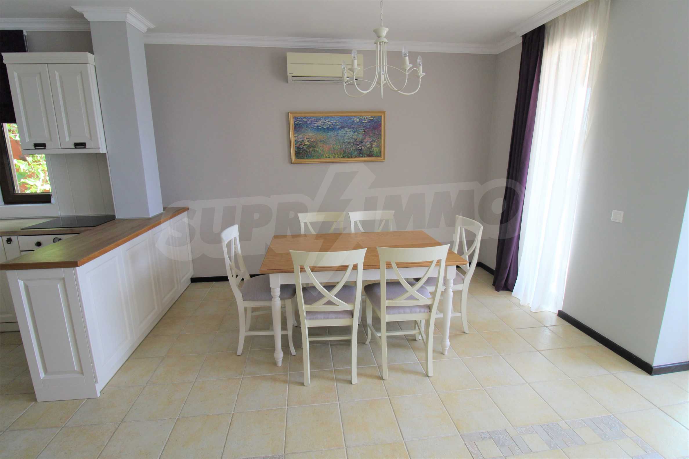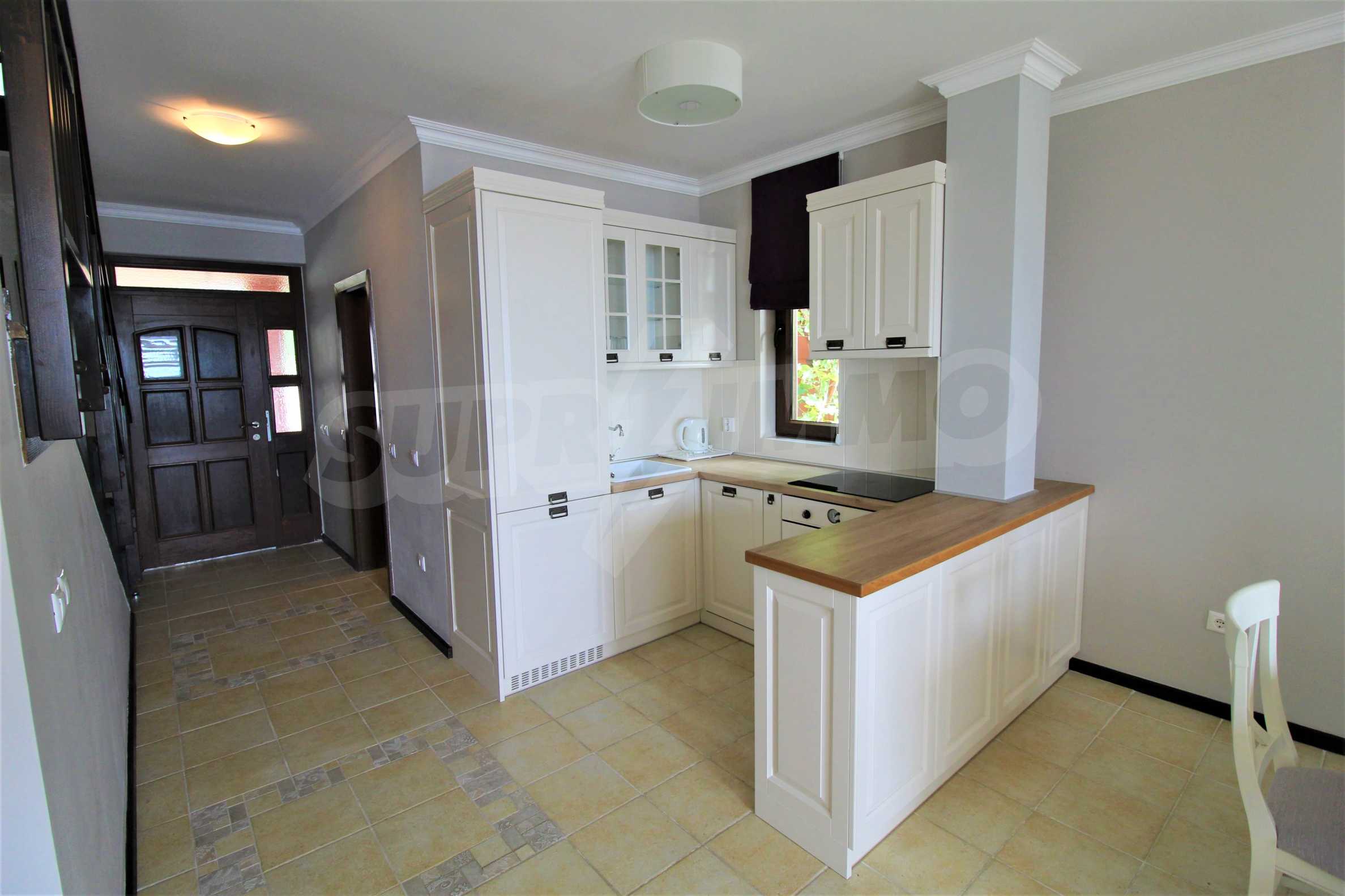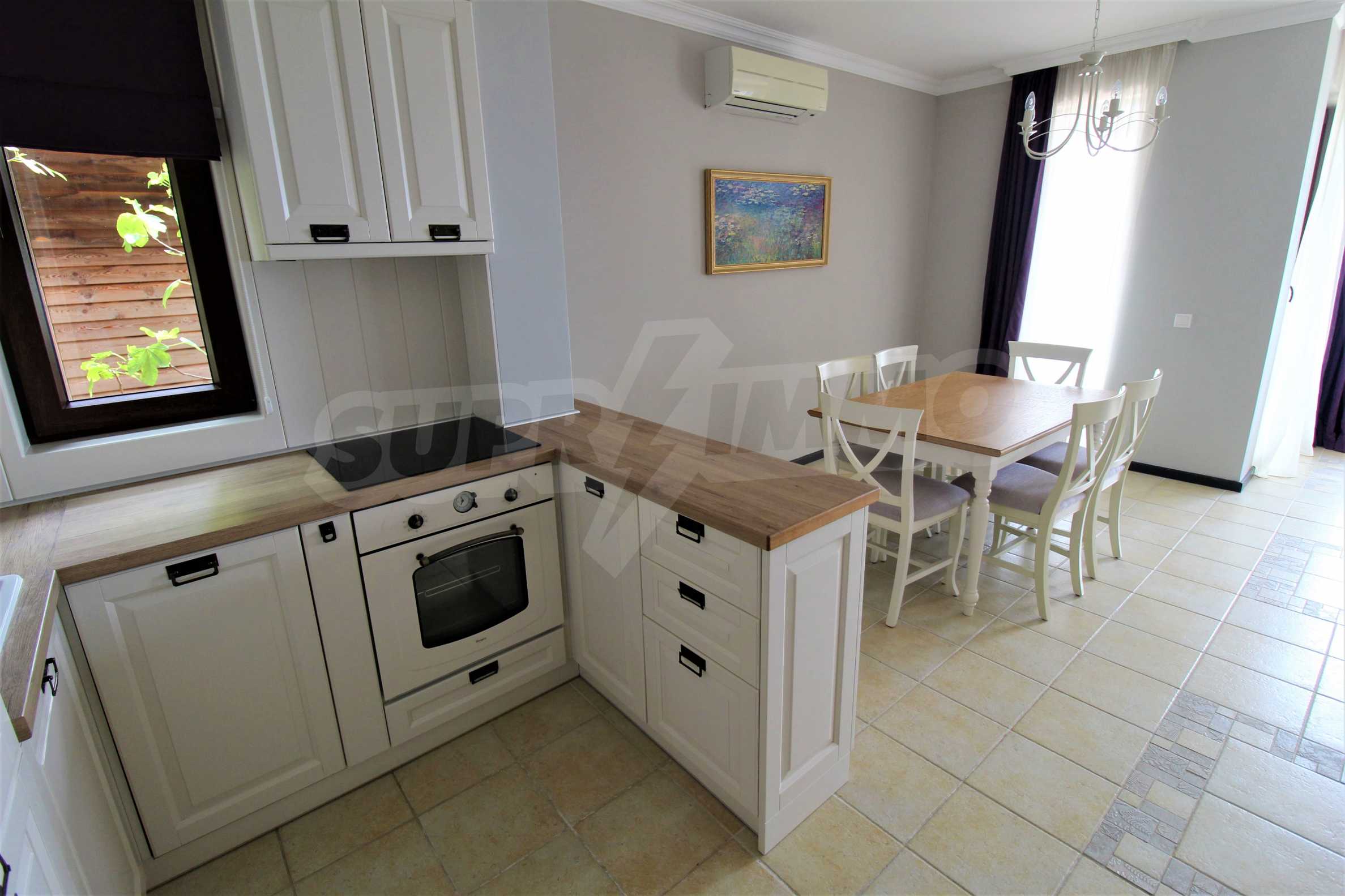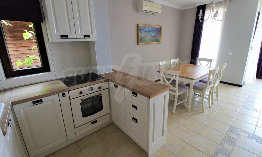 The spacious property of 144.02 m2 is located on ¹ 80A Street. The house is functionally distributed, offers 2 spacious and bright bedrooms, 2 bathrooms, kitchen with living room and dining area, nice veranda with access to the street leading to the pool, terrace overlooking the sea. The premises are finished "turnkey", with quality and stylish furniture.