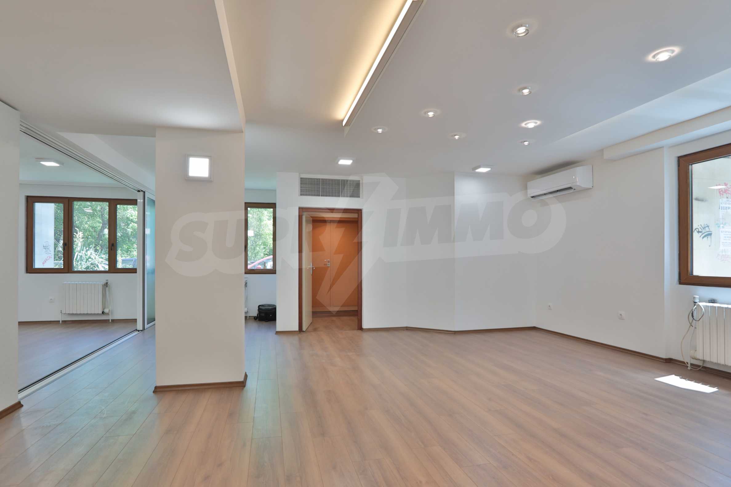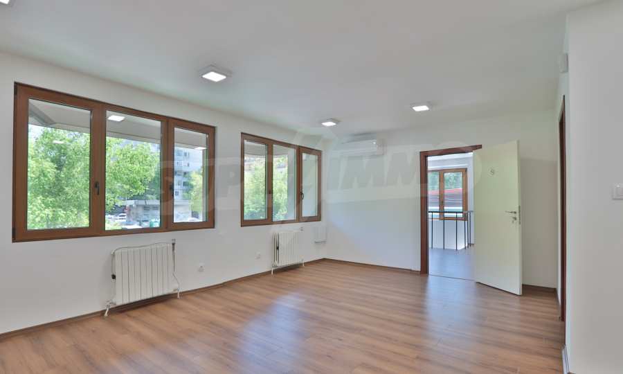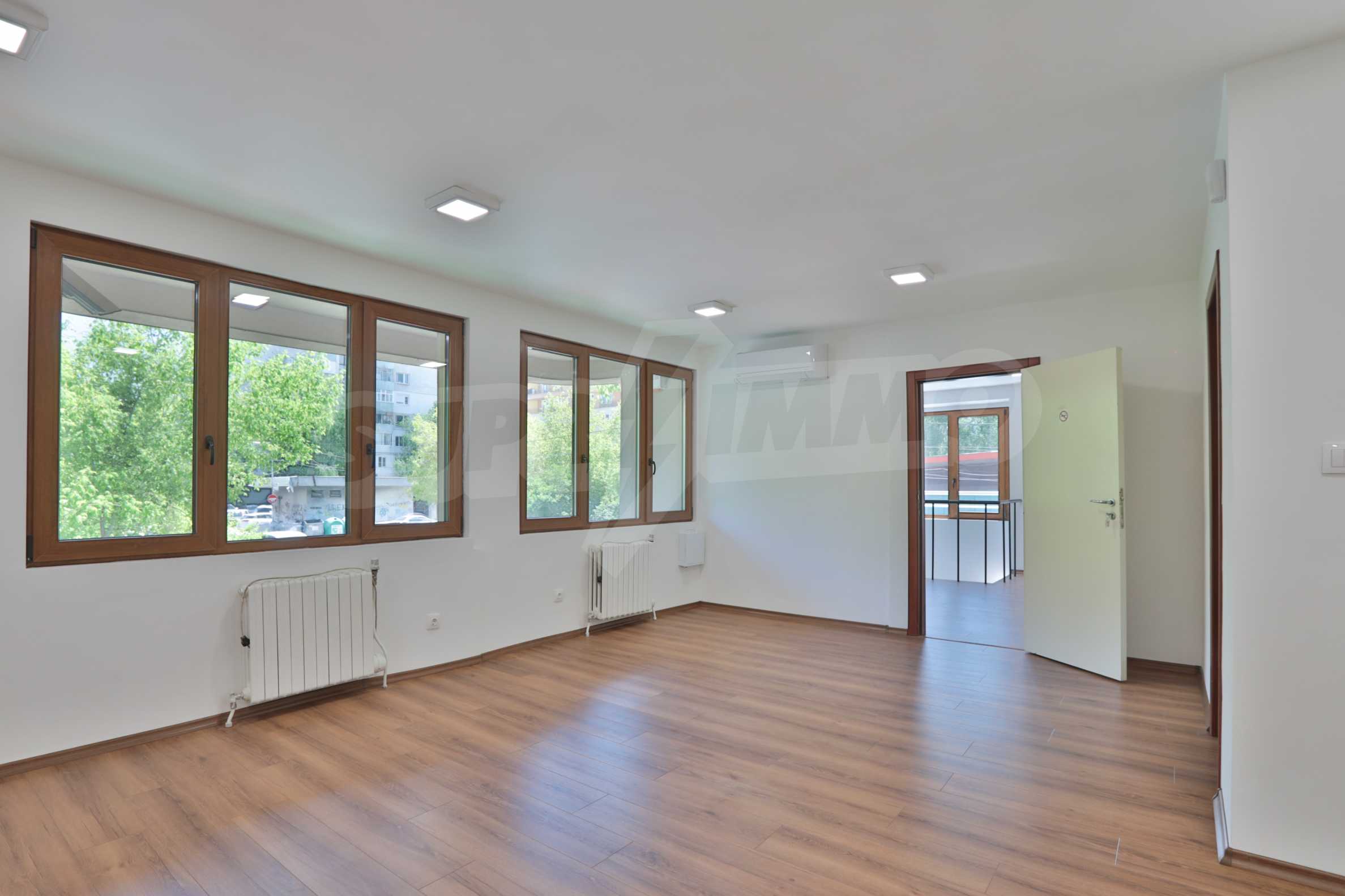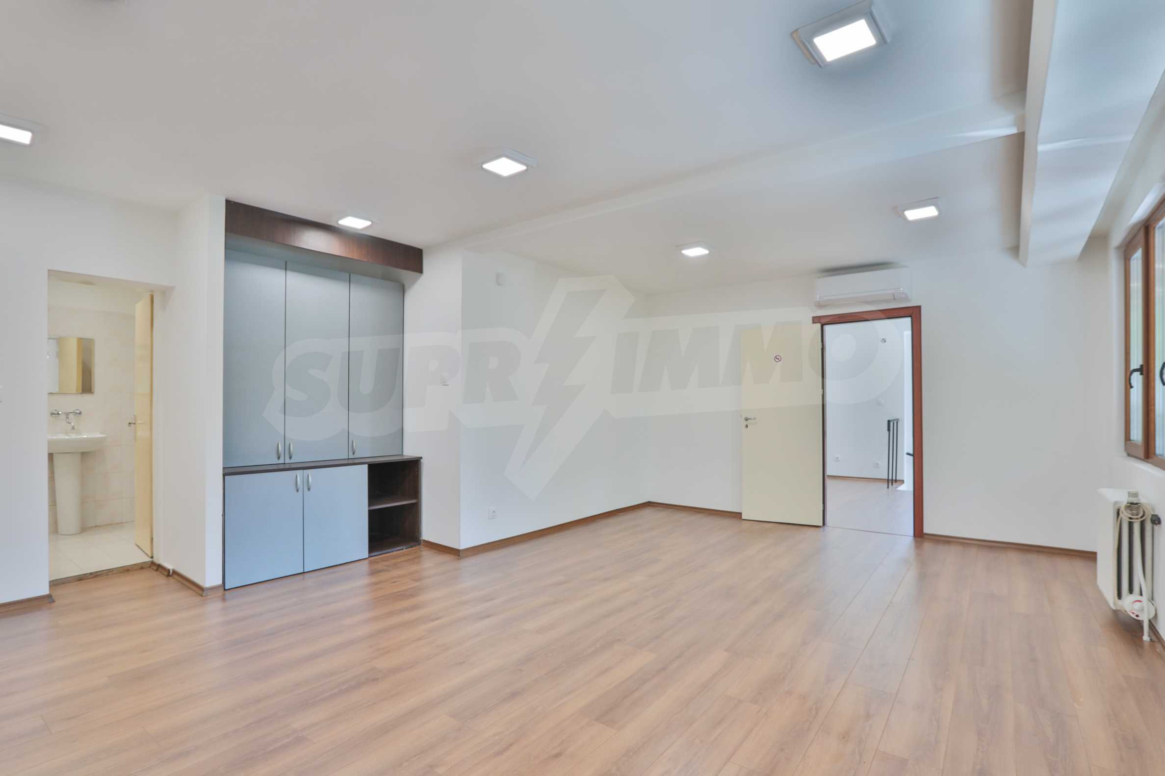 It has air conditioning, ventilation, central heating, security wiring, external insulation and a high standard of windows. The office is after major repairs - with laminate flooring and granite, elegant built-in ice lighting; walls painted with latex, separate air conditioning for each room; equipped bathroom and toilets; furnished archive room; has a kitchen that could be equipped according to the wishes of the tenants.