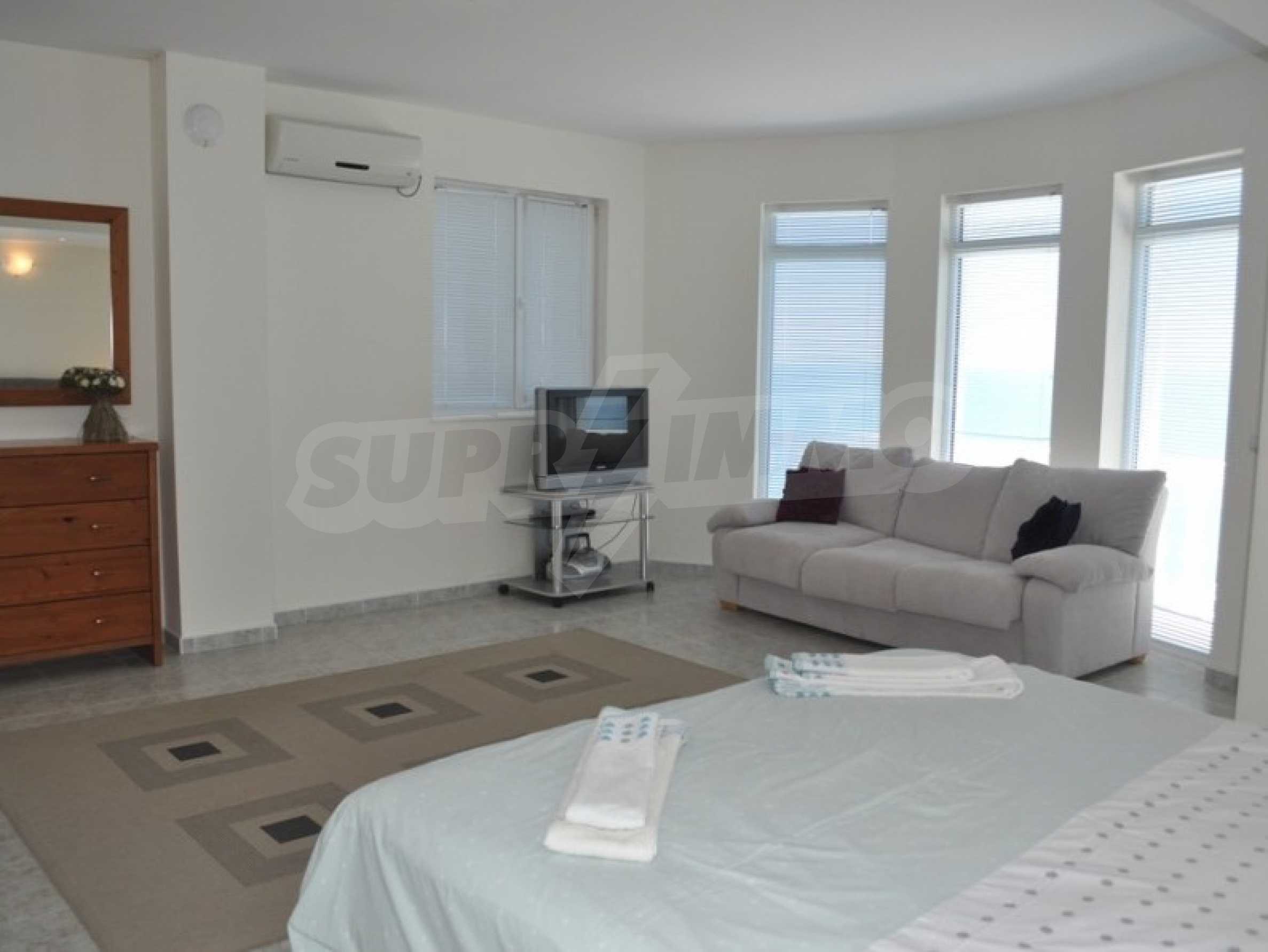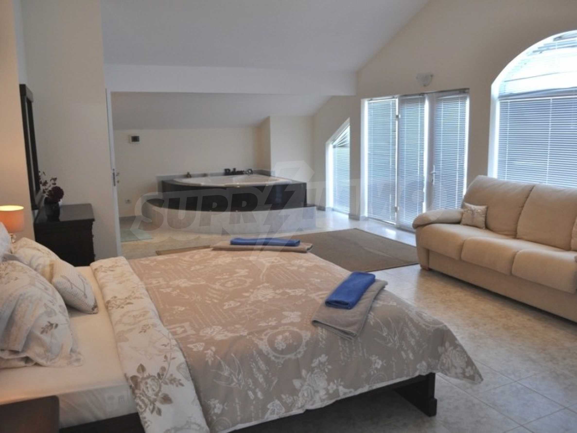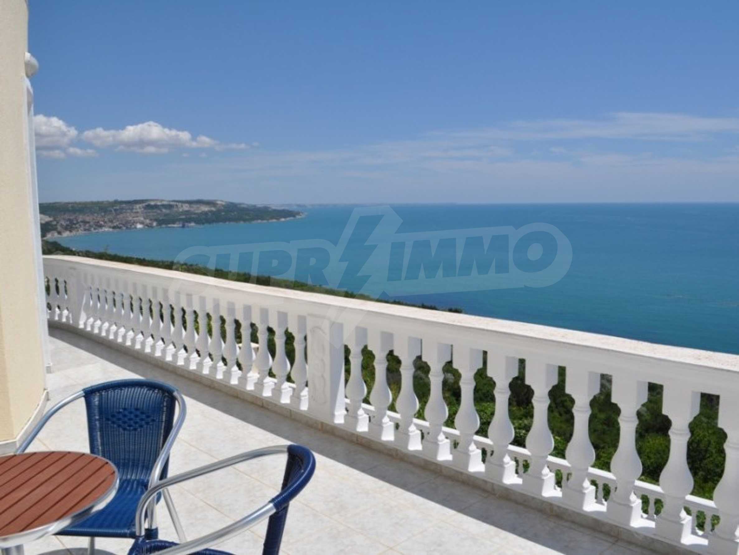 With its exceptional view of the resort of Albena and the town of Balchik, the villa is located in one of the most beautiful places on the entire North Black Sea coast: on the left you will enjoy the view of Balchik Bay and the green hills descending to the sea. resort on the North Coast - Albena. Visitors often observe dolphins swimming in the sparkling waters of the Black Sea.