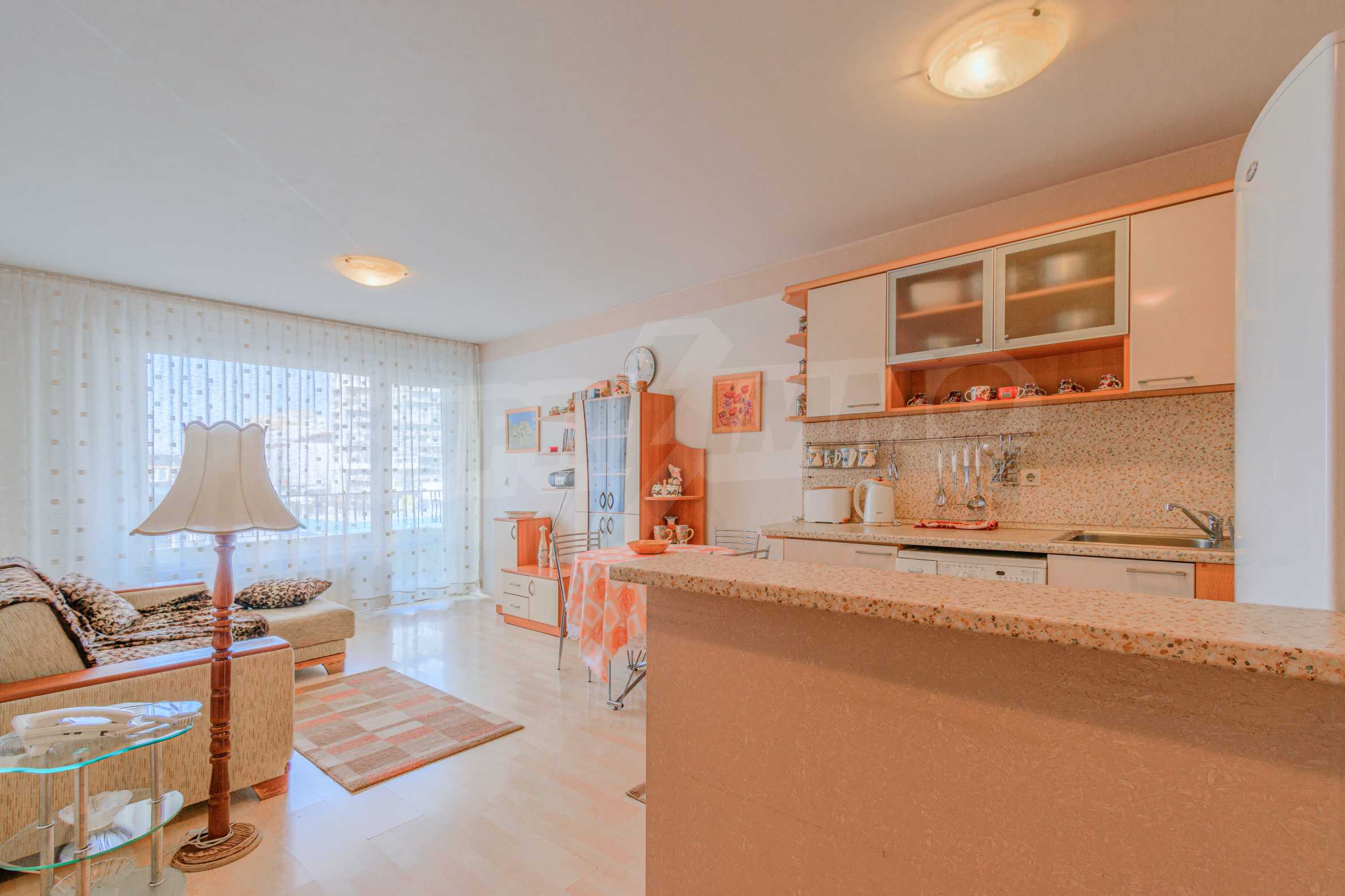The apartment is located on the second floor, has a southwestern exposure and the following layout: entrance hall, living room with kitchenette, bedroom, bathroom and balcony. The heating is on electricity, with the possibility of placing an electric boiler, has everything you need and is ready for application.