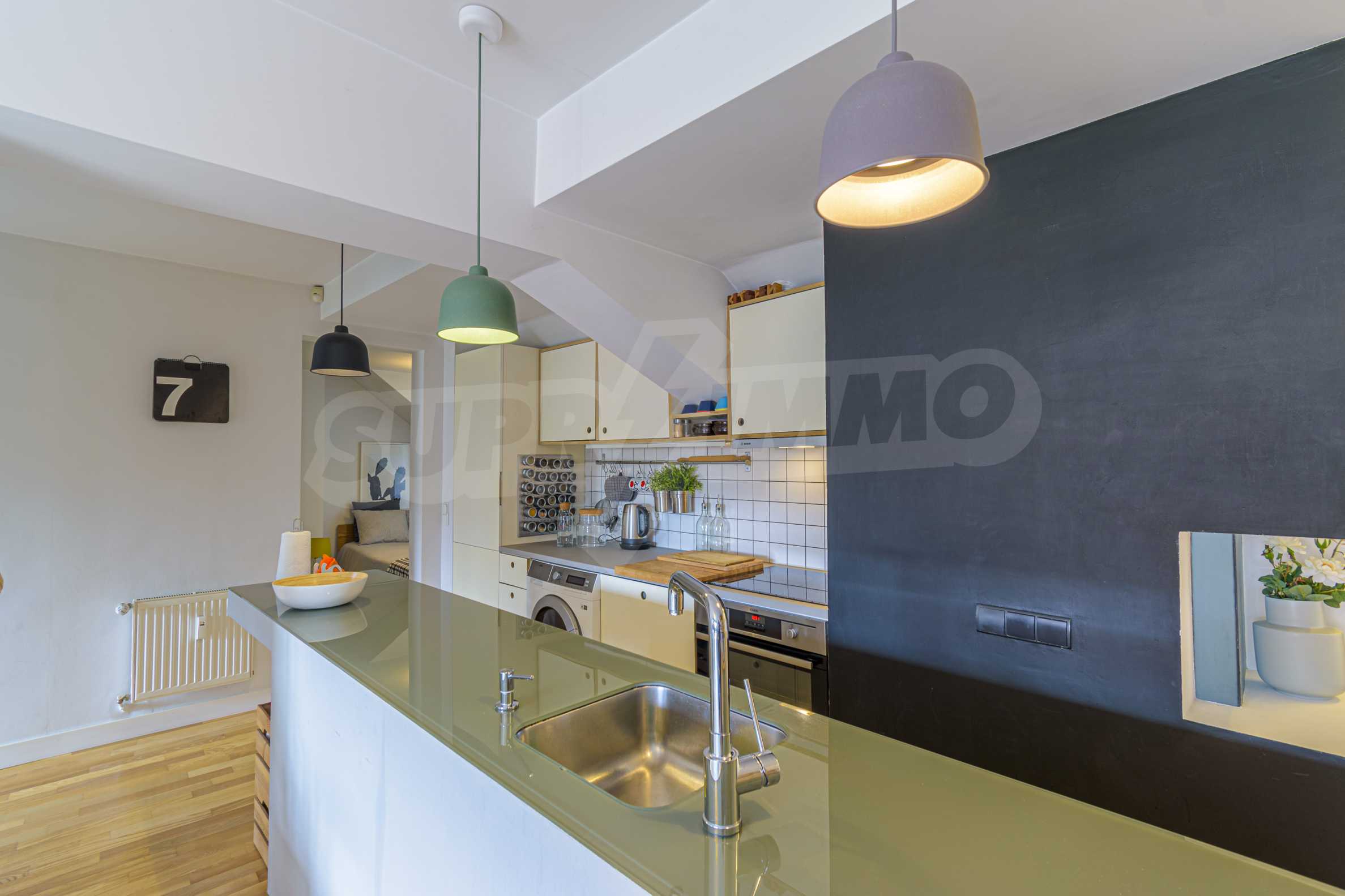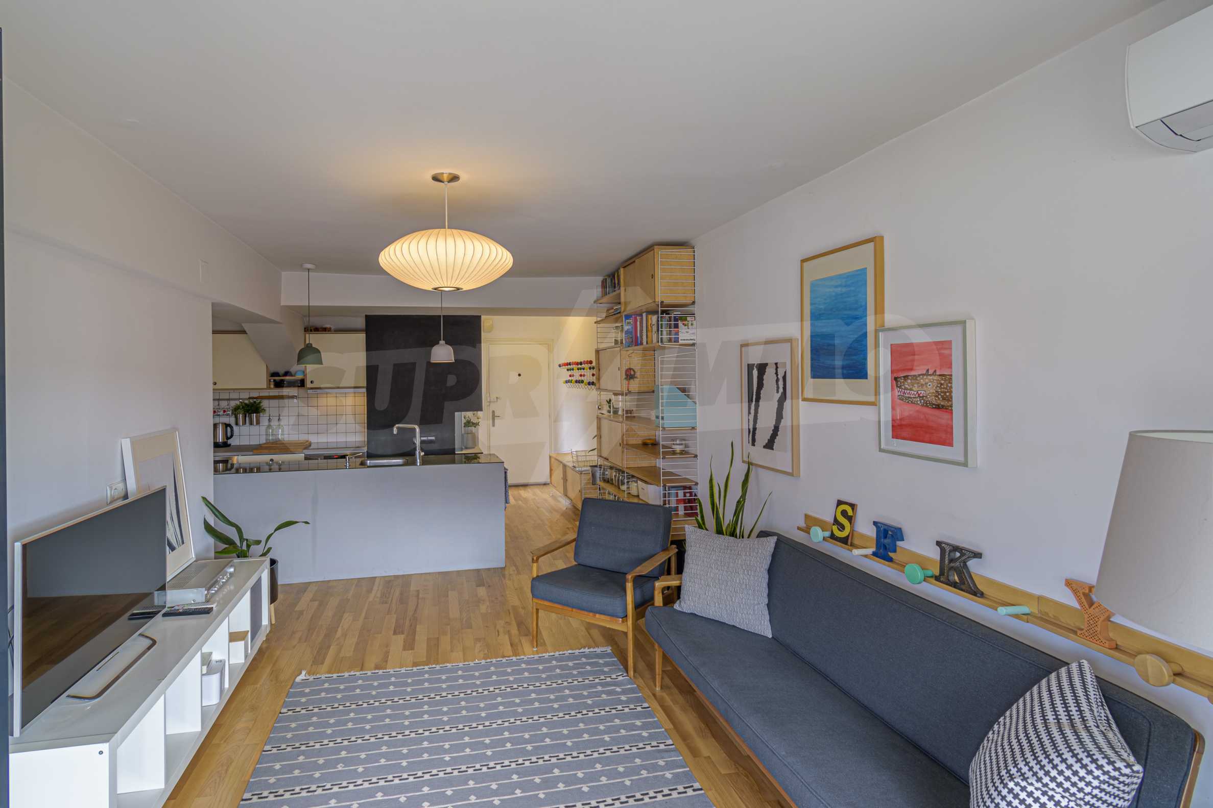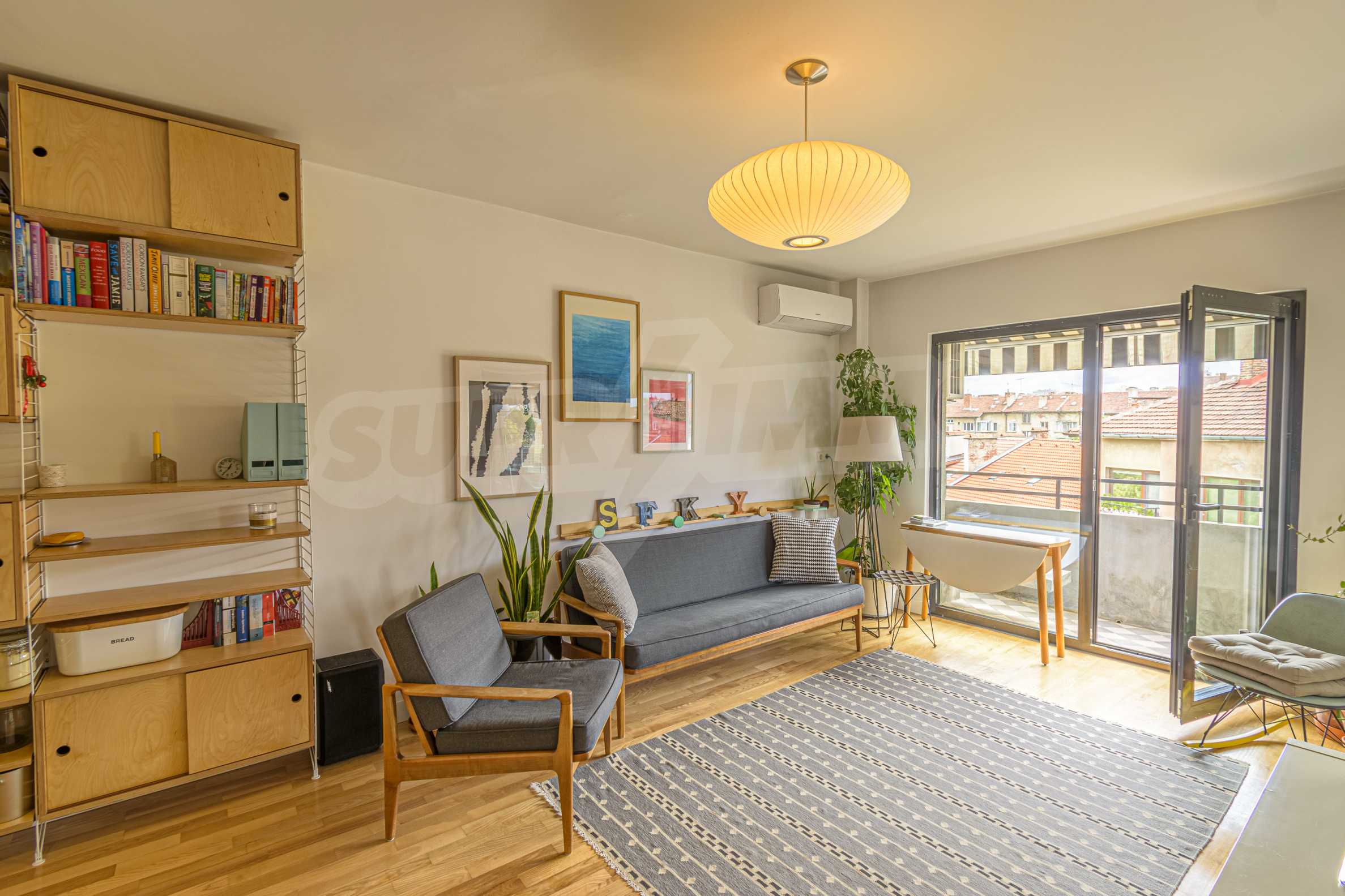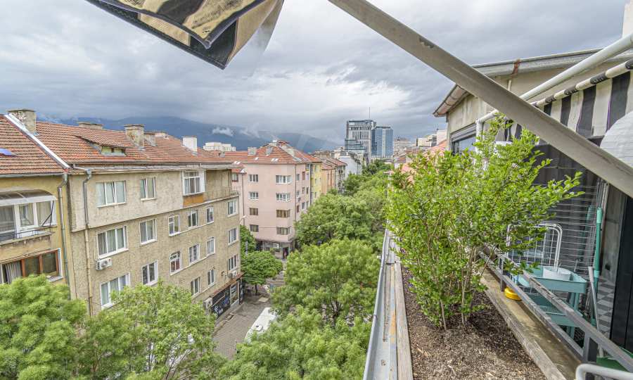 Fully renovated, cozy apartment in the center of Sofia with fantastic city views. The apartment is sunny and bright and is located on the fifth floor of a well maintained brick building.