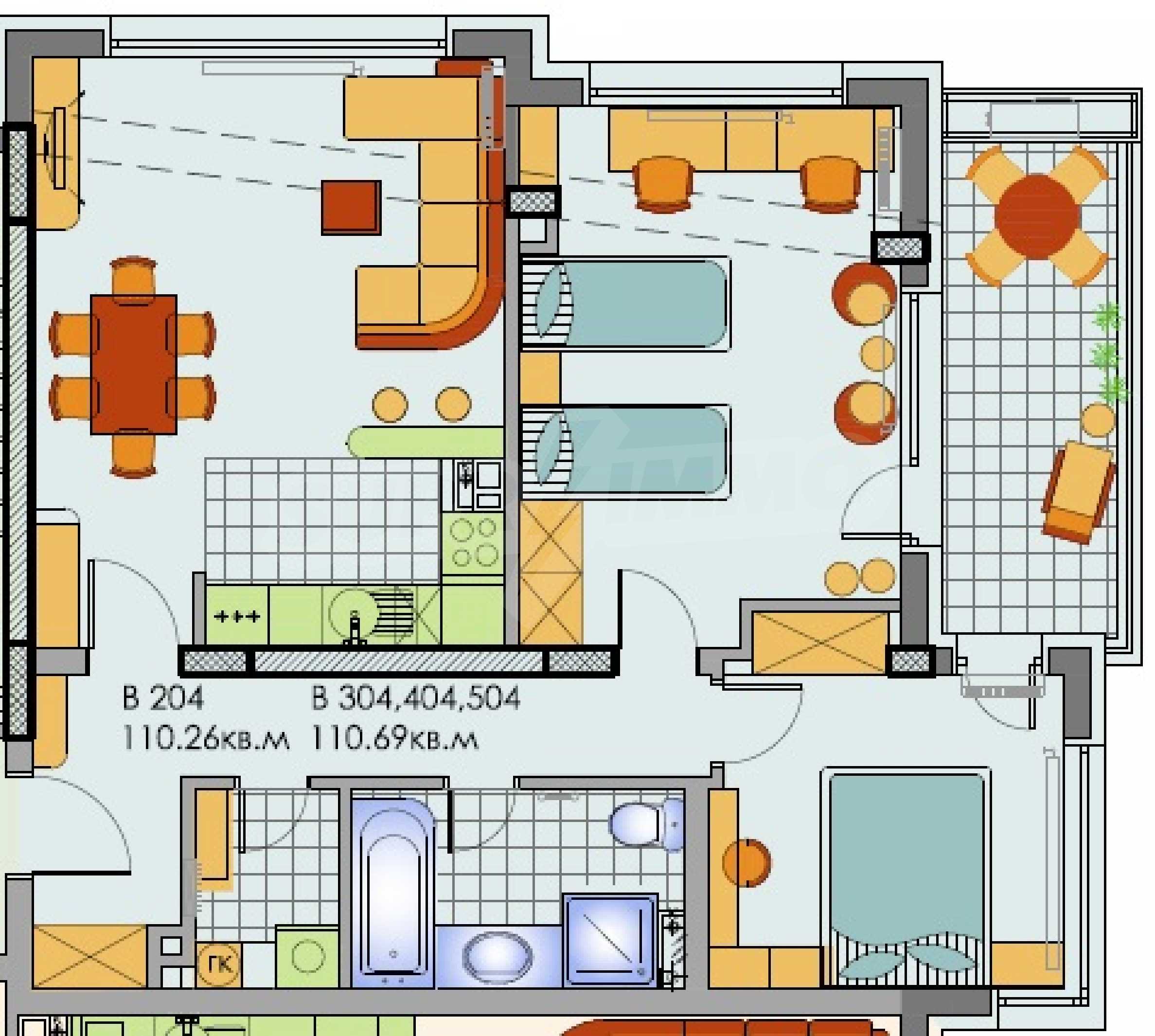 The complex has its own patio - a quiet and green place to relax, selected plants and water elements, children's playground, outdoor fitness area.