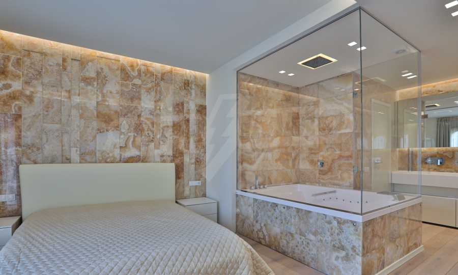 The apartment consists of a spacious living and dining room, kitchenette, two comfortable bedrooms with two bathrooms and two terraces.