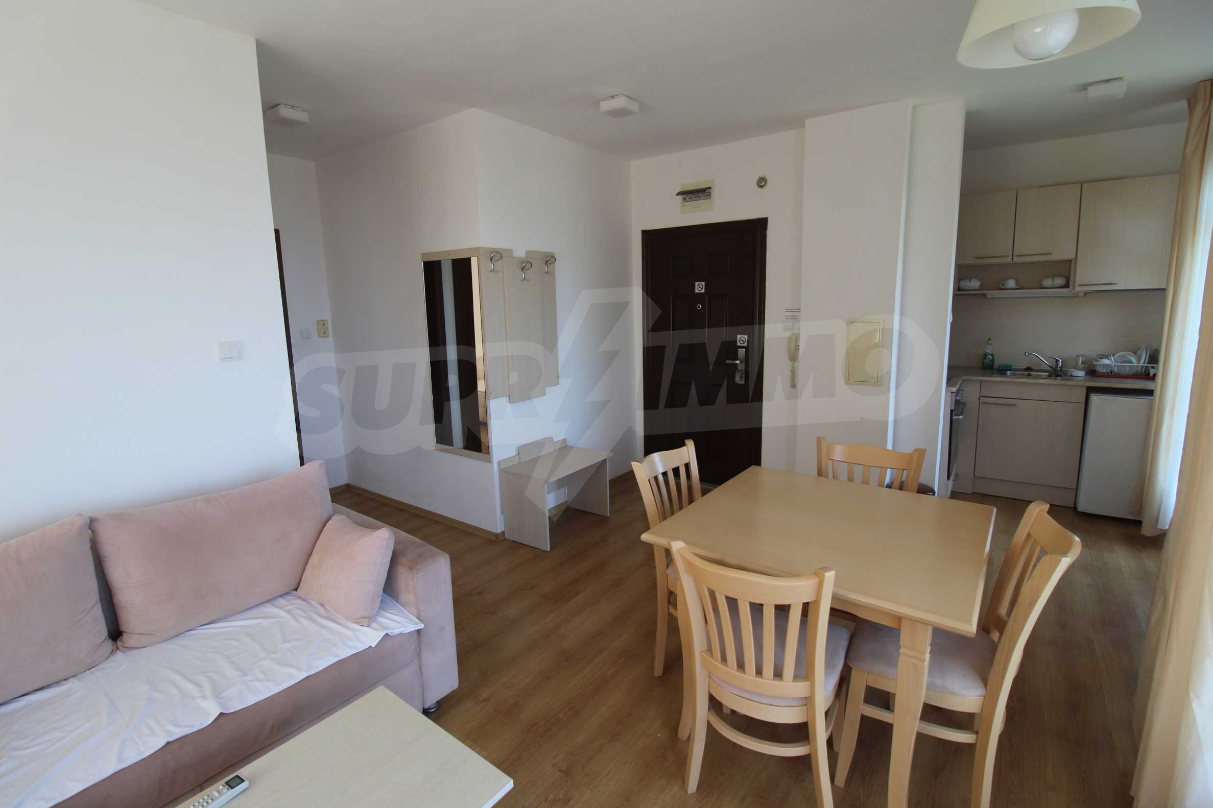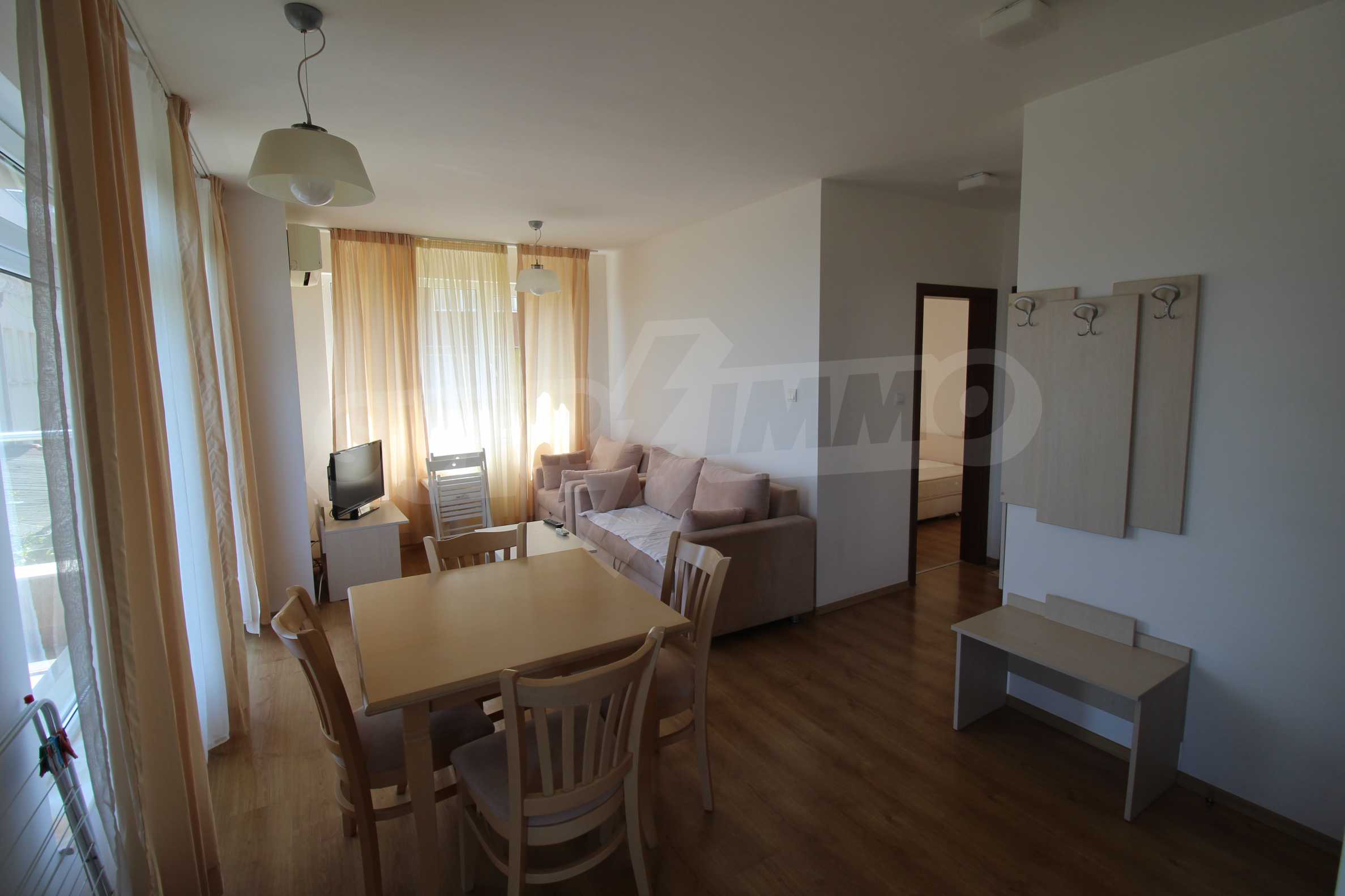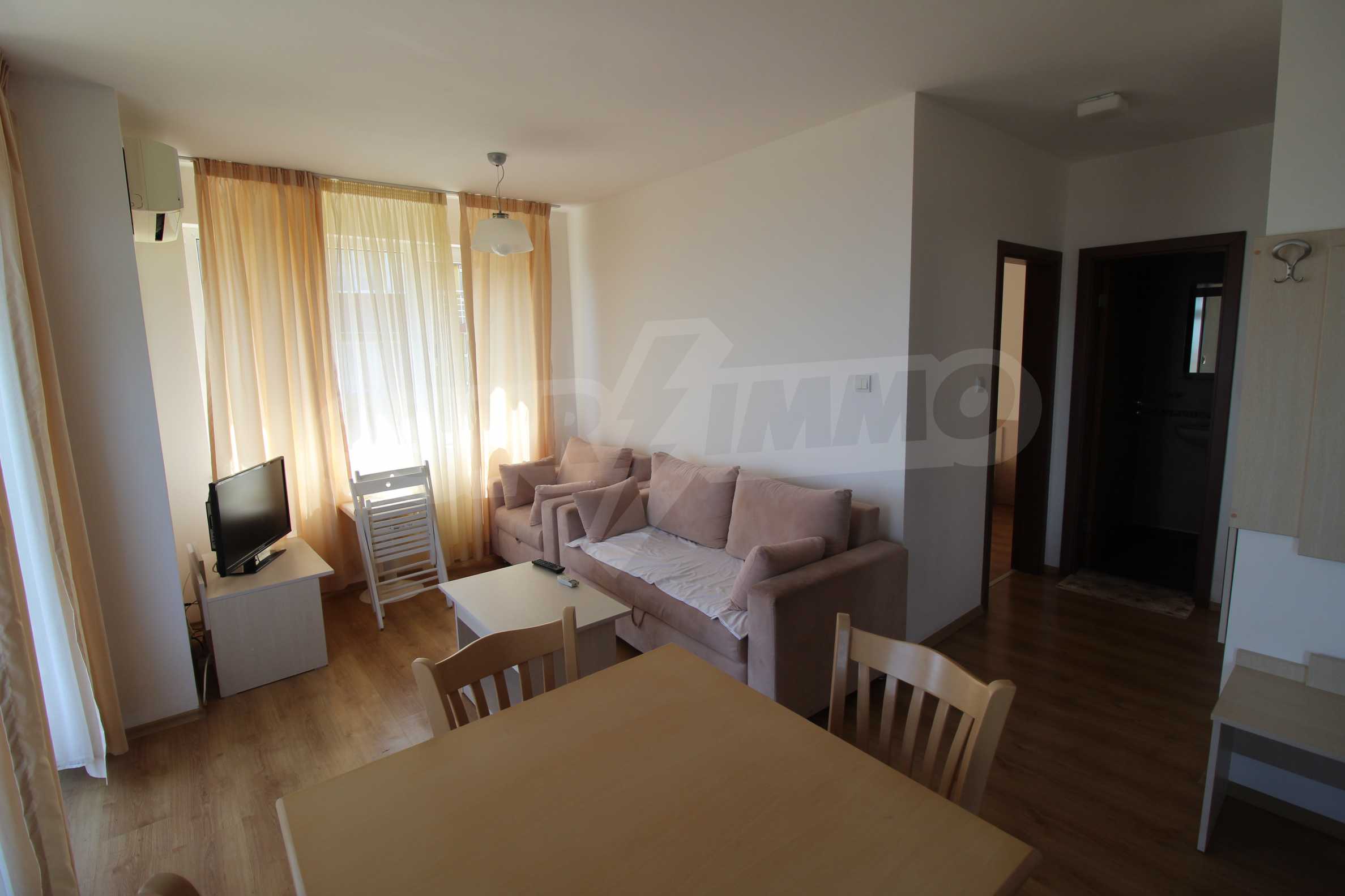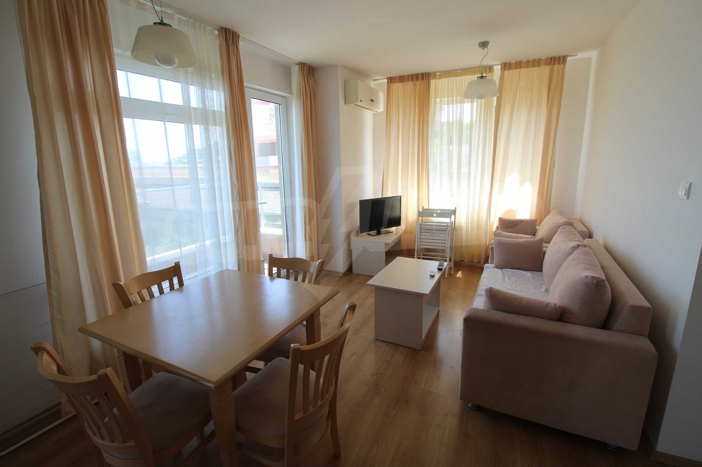 One bedroom furnished apartment with sea view, with a total area of 58 m2, for sale in an attractive complex with a swimming pool, next to the beach in Lozenets resort.