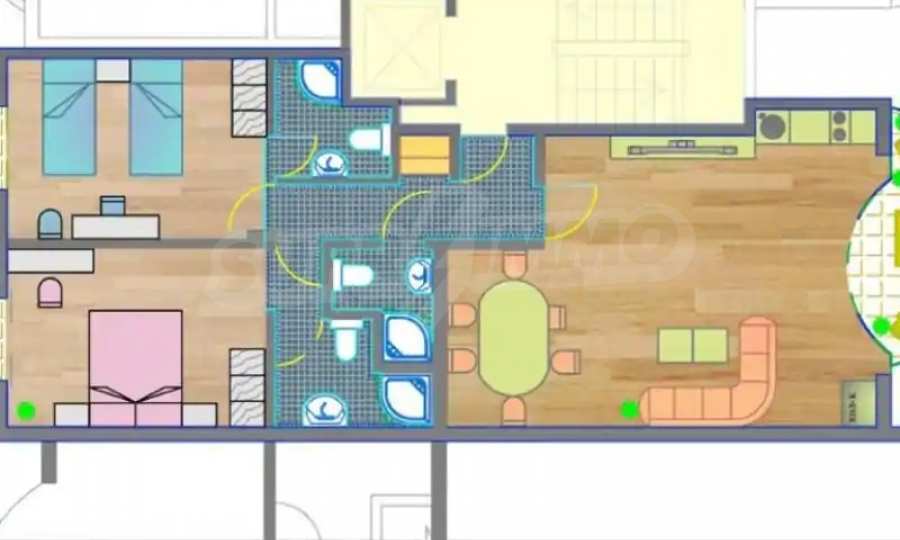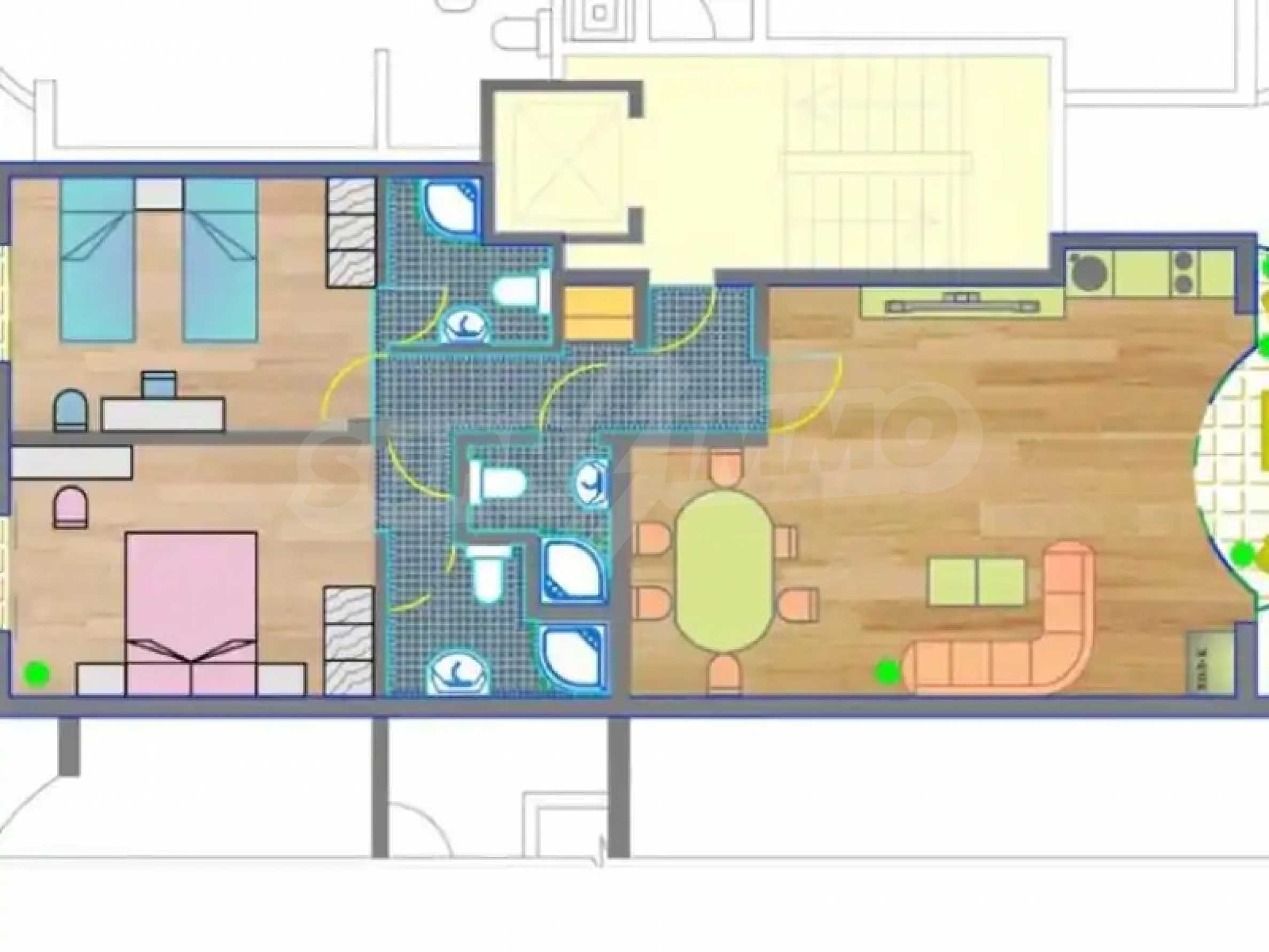 Cozy 2-bedroom apartment, with a total area of 130 m2, for sale in the popular complex, next to Olympic Hopes beach, on the first line of the sea in Ravda resort.
