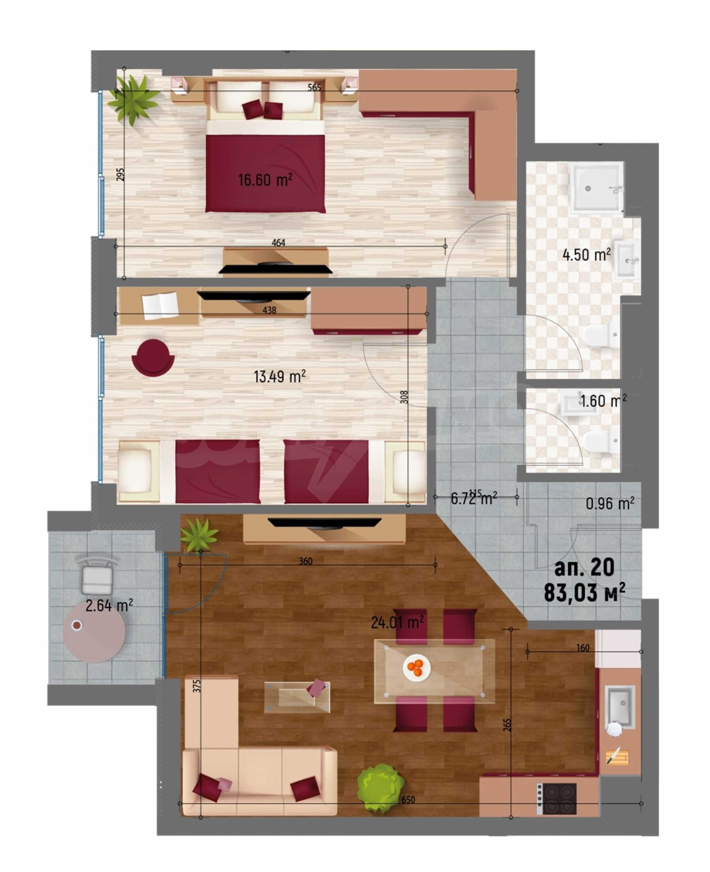 The apartment has the following layout: